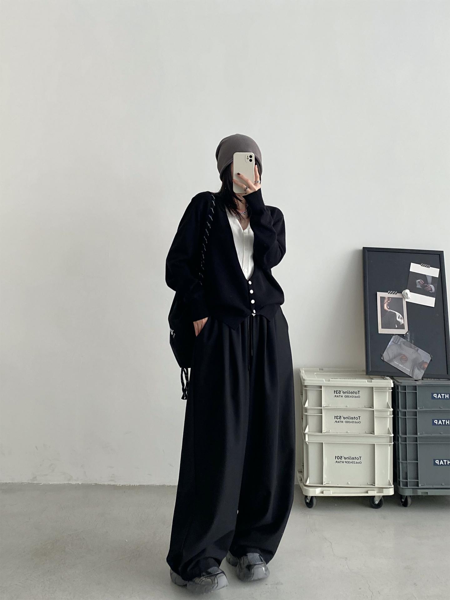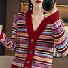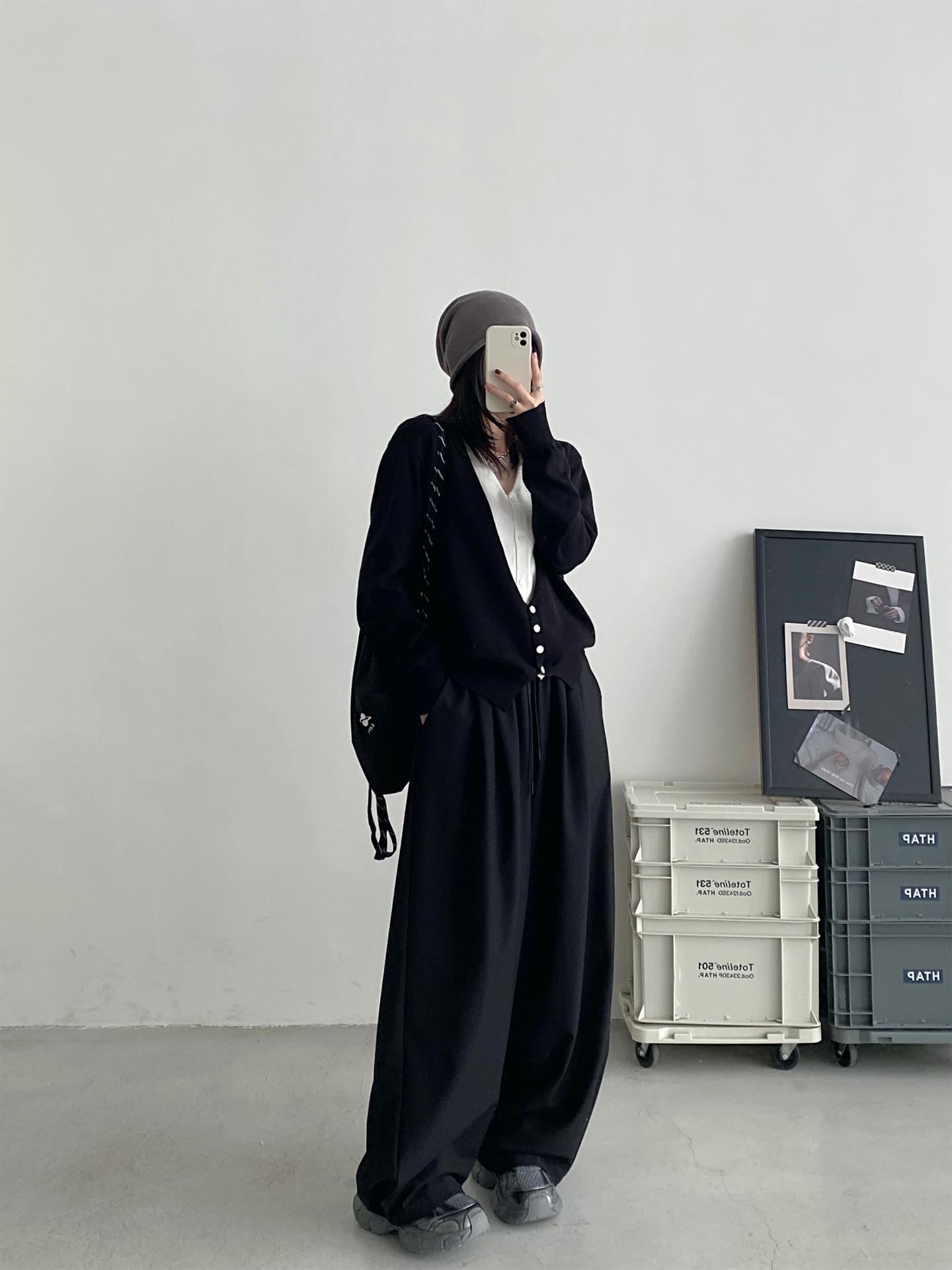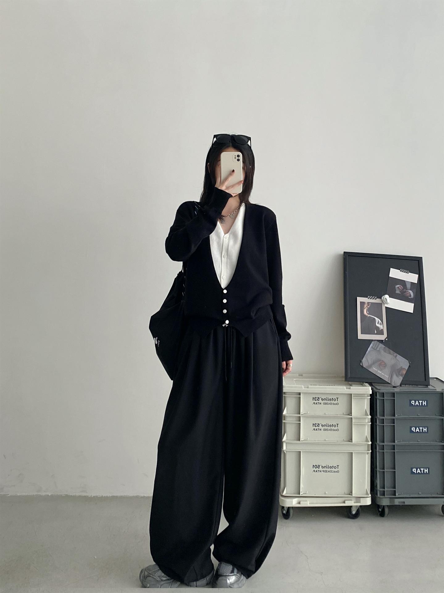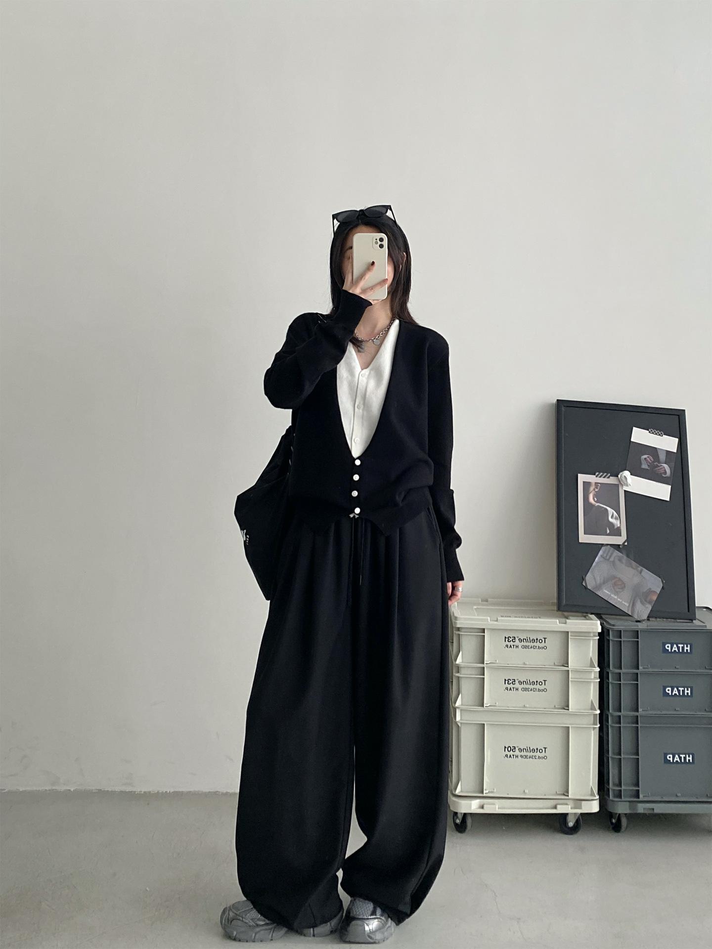 Cárdigan de punto gris falso de dos piezas con cuello en V Otoño e Invierno Diseño nicho francés suelto corto de manga larga para mujer