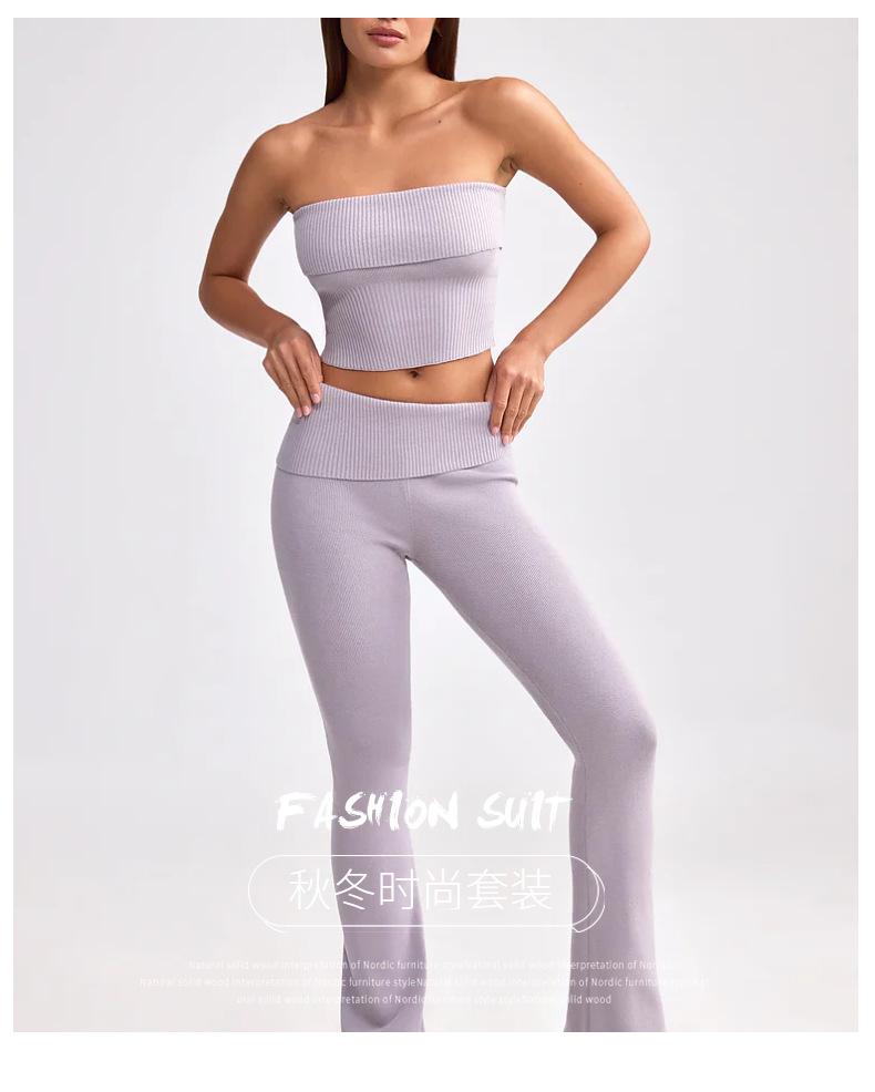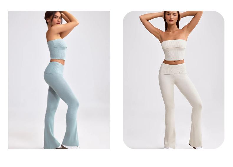 2025 Nuevo Traje de Verano Europeo y Americano para Mujeres Hottie Transfronterizas Top de Tubo Top Pantalones Acampanados Ropa de Yoga Conjunto de Dos Piezas para Mujeres
