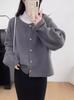 Comercio Exterior Nuevo Estilo Coreano Cuello Redondo Monoprenda Color Sólido Chaqueta Suéter Otoño e Invierno Transfronterizo Amazon Cárdigan de Punto para Mujer