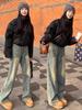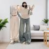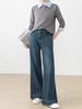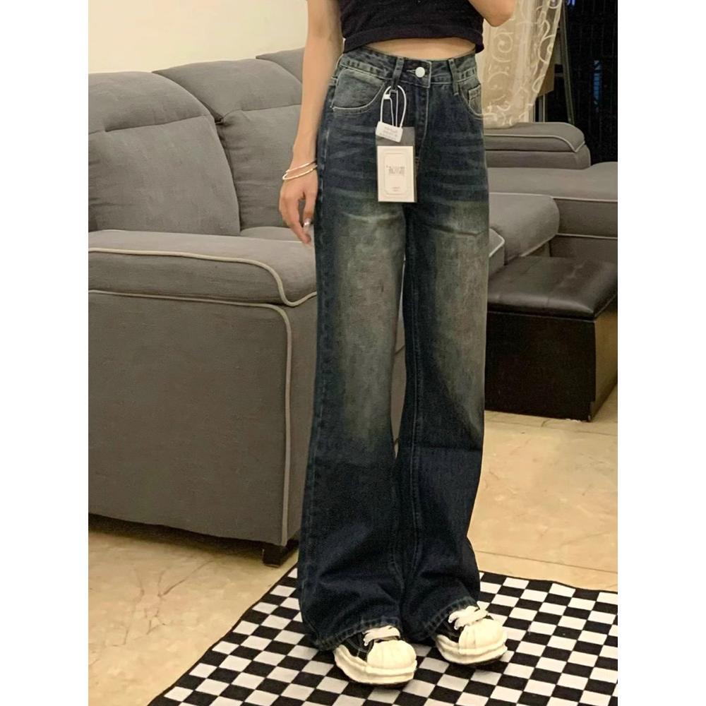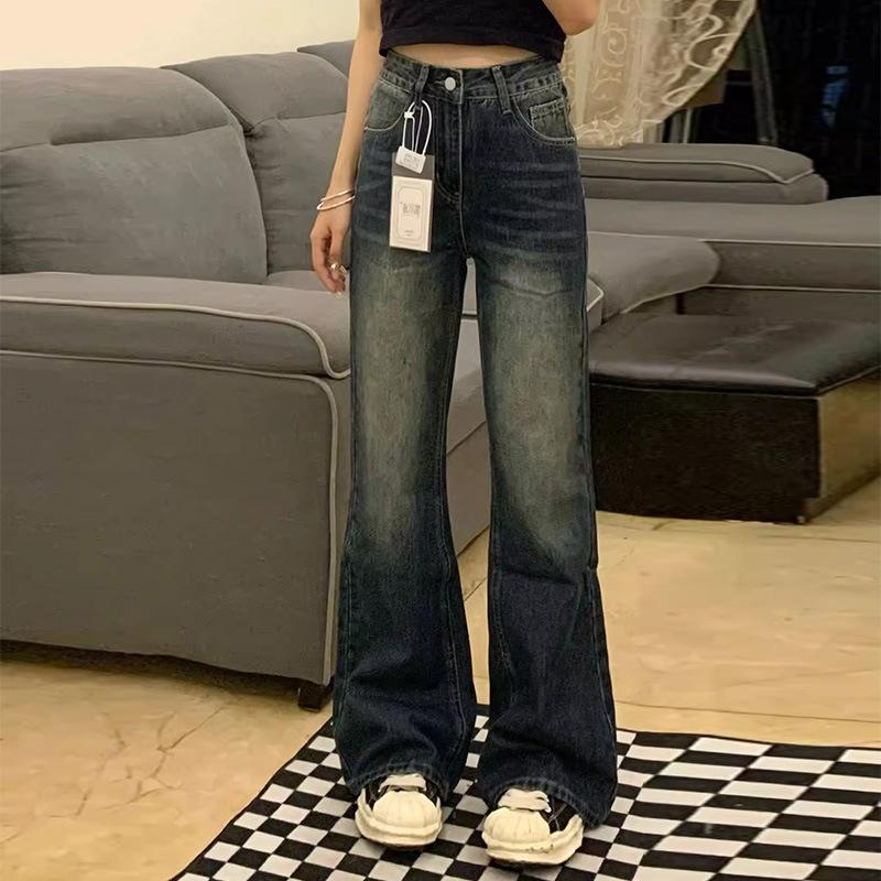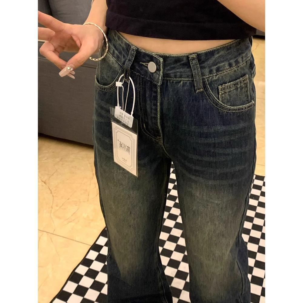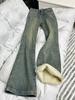 Jeans Retro Bootcut para Mujer, Nuevo Estilo de Otoño para mm Gorditas con Cuerpo en Forma de Pera, Forrado con Felpa, Cintura Alta, Suelto, Look Adelgazante, Pantalones de Pierna Ancha