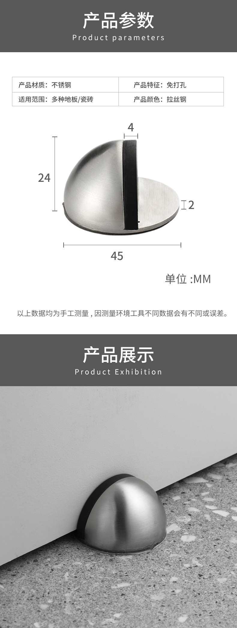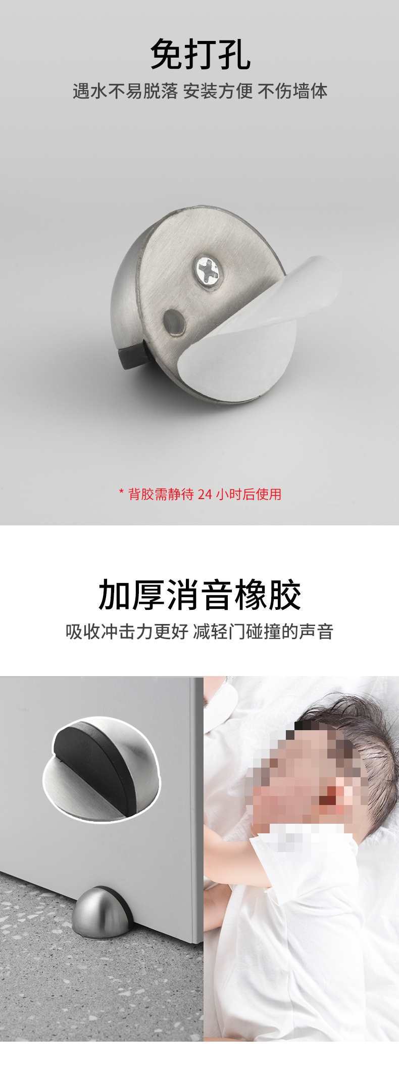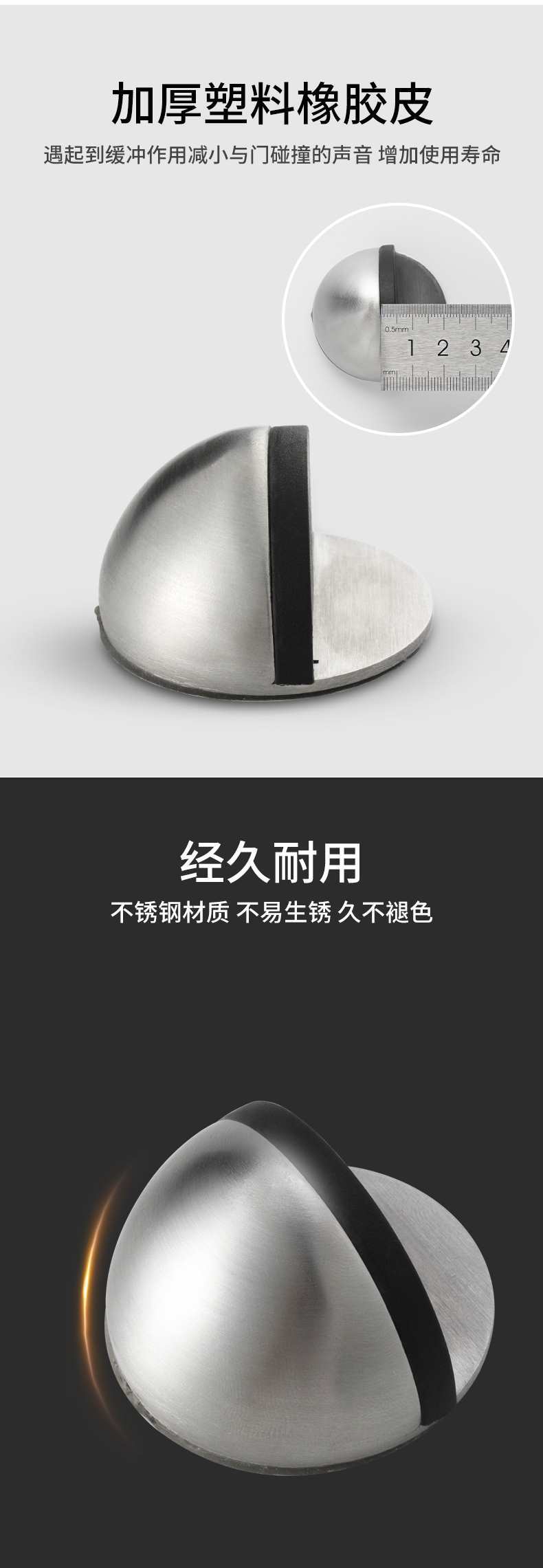 Tope de puerta anticolisión al por mayor, tope de puerta táctil, sin perforaciones, con succión al suelo, para el hogar, sala de estar, tope de puerta de goma de acero inoxidable