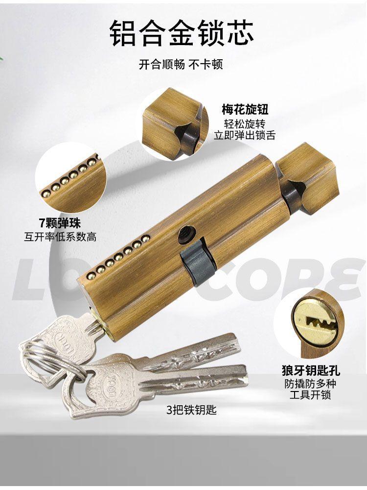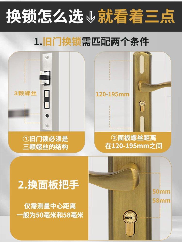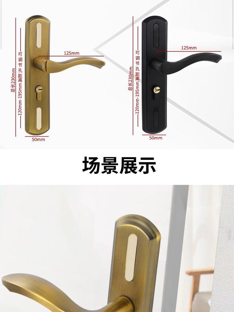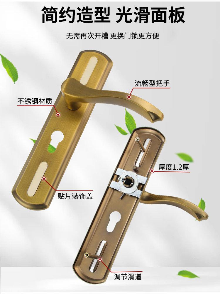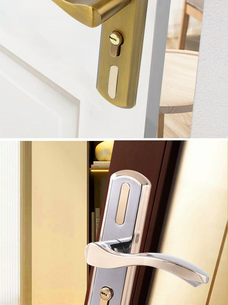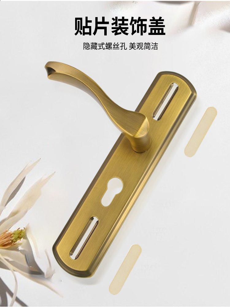 Cerradura de puerta de habitación universal europea, manija de puerta interior, sin orificios, paquete rápido, cerradura antigua amarilla, cerradura de inodoro de lengüeta simple y doble