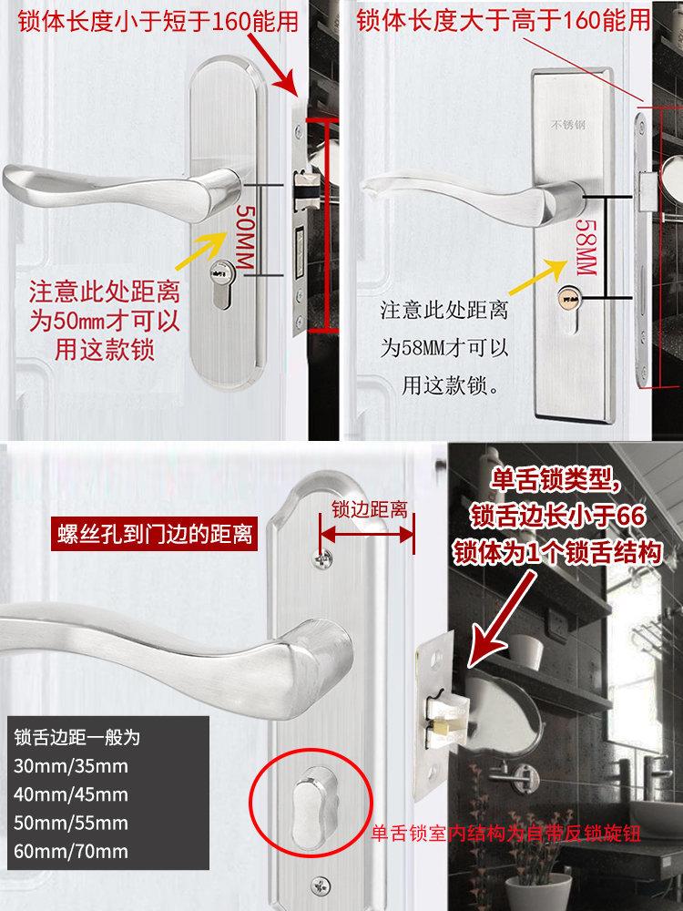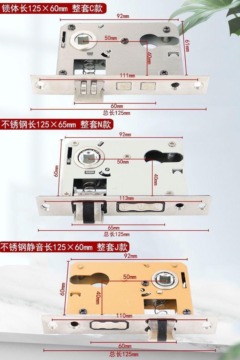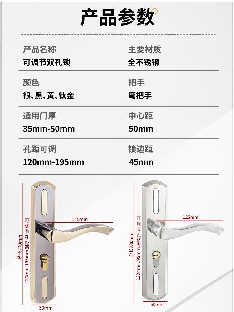 Adjustable Hole Distance 120-195 [European 50 Lock] Stainless Steel Mute Single Head Lock Body 125 Long