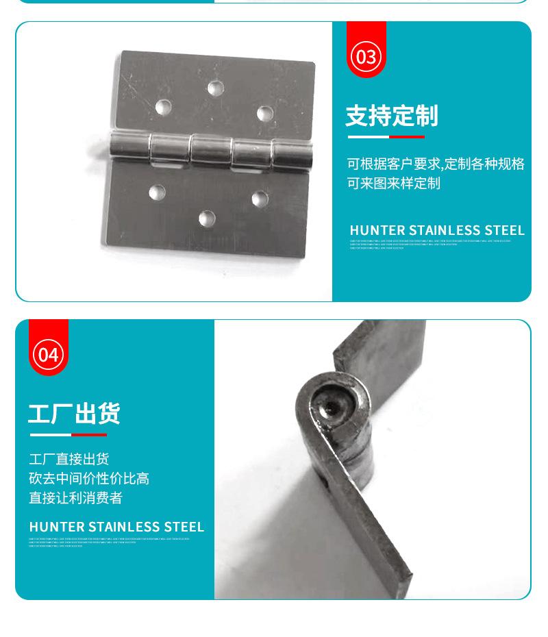 Bisagra no estándar de acero inoxidable 304, bisagra industrial engrosada para gabinete de distribución, caja de estampación, bisagra larga doblada.
