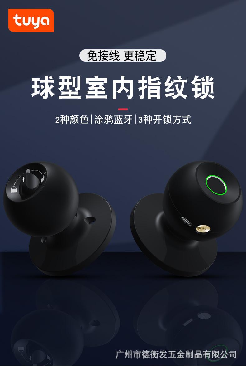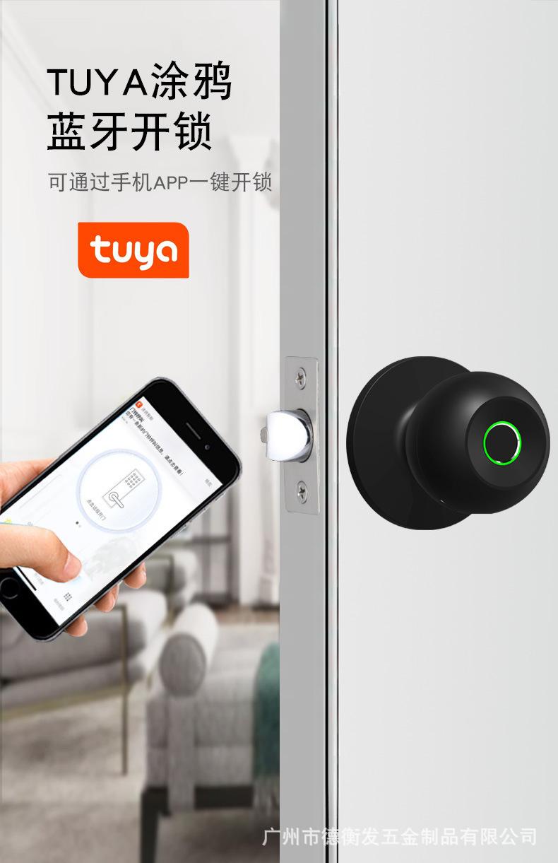 Cerradura inteligente esférica con huella dactilar, cerradura mecánica con llave de madera, Bluetooth, grafiti, para puerta de habitación, comercio exterior transfronterizo