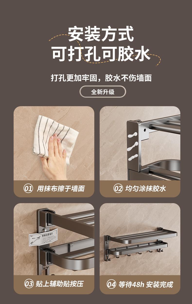 (2) Para una instalación sin perforaciones, tenga en cuenta que la superficie de la pared debe ser plana y sólida, como baldosas de vidrio.No disponible enEn paredes irregulares e inestables como paredes pintadas, papel tapiz, paredes de cal, etc. Después de aplicar el pegamento en la pared, debe esperar de 3 a 5 días para que el pegamento sin clavos se seque completamente antes de usarlo.