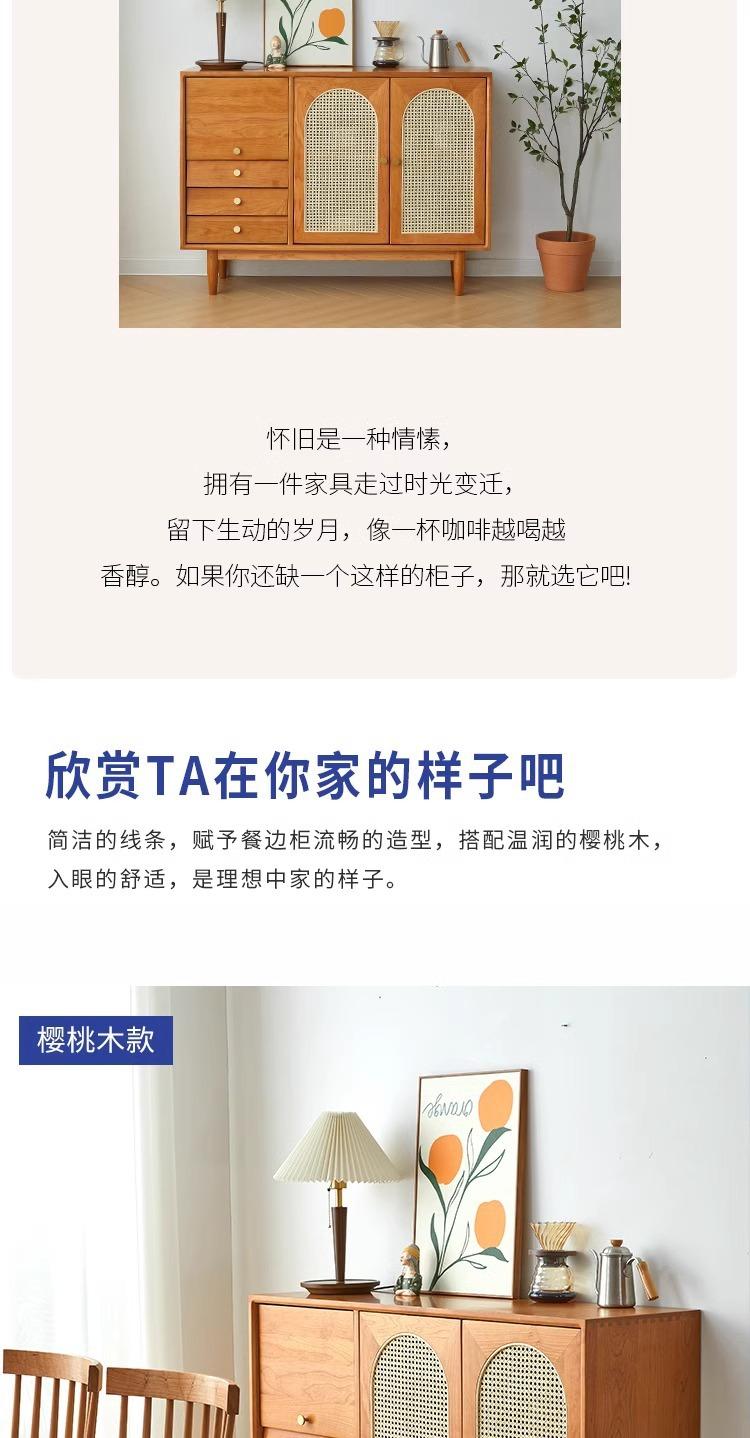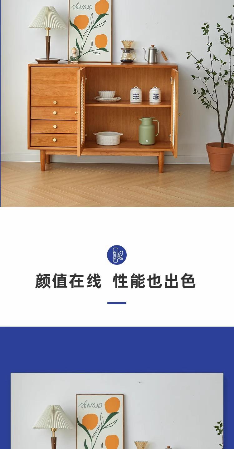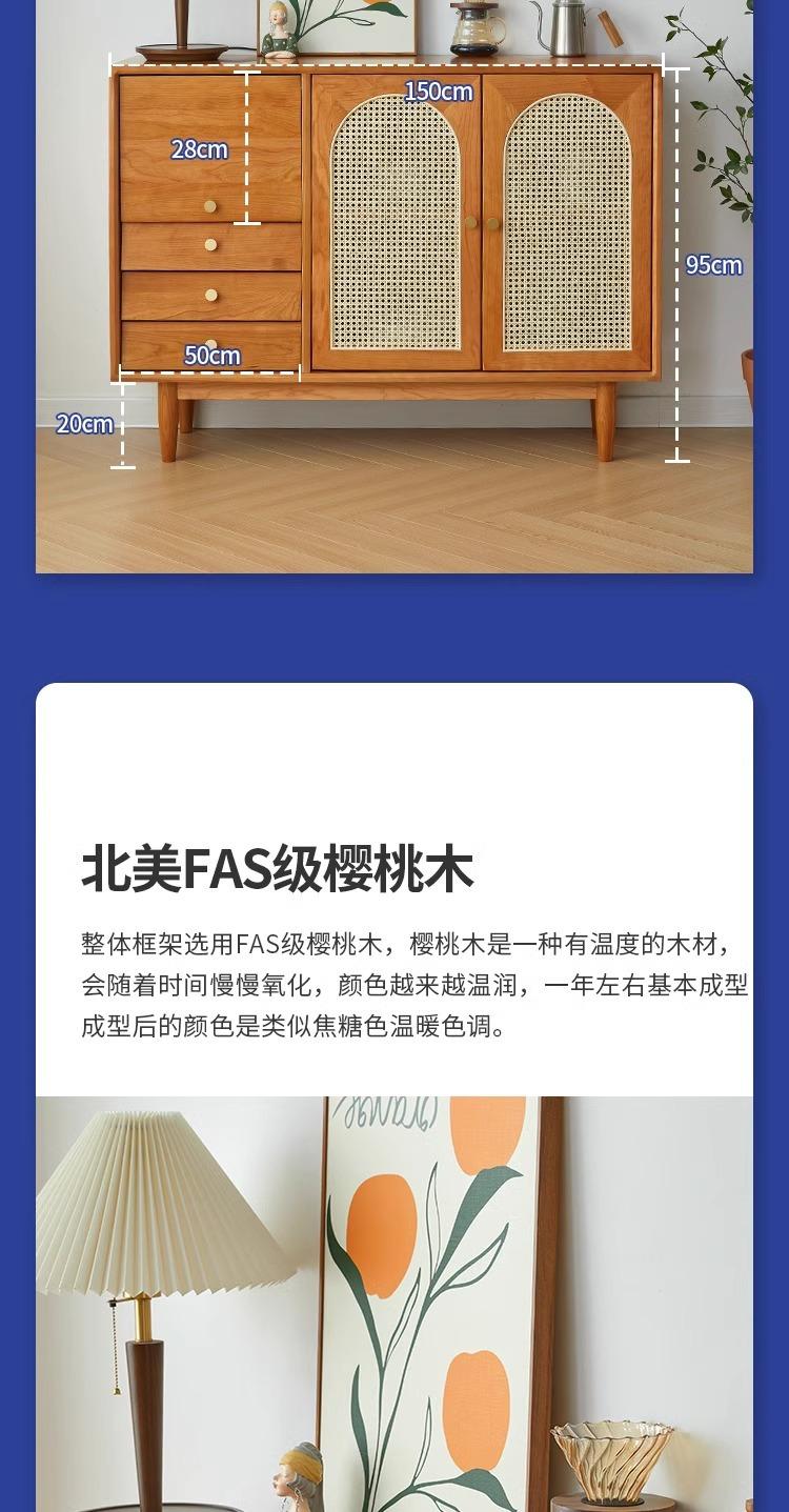 Compra Aparador de madera maciza de estilo japonés, armario de almacenamiento de ratán integrado en la pared, armario de almacenamiento nórdico moderno, sencillo, ligero y de lujo de madera de cerezo. al por mayor en Joom.pro