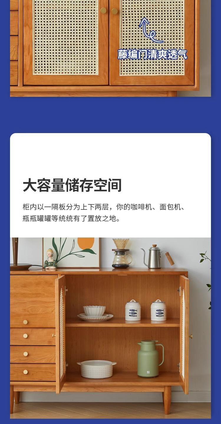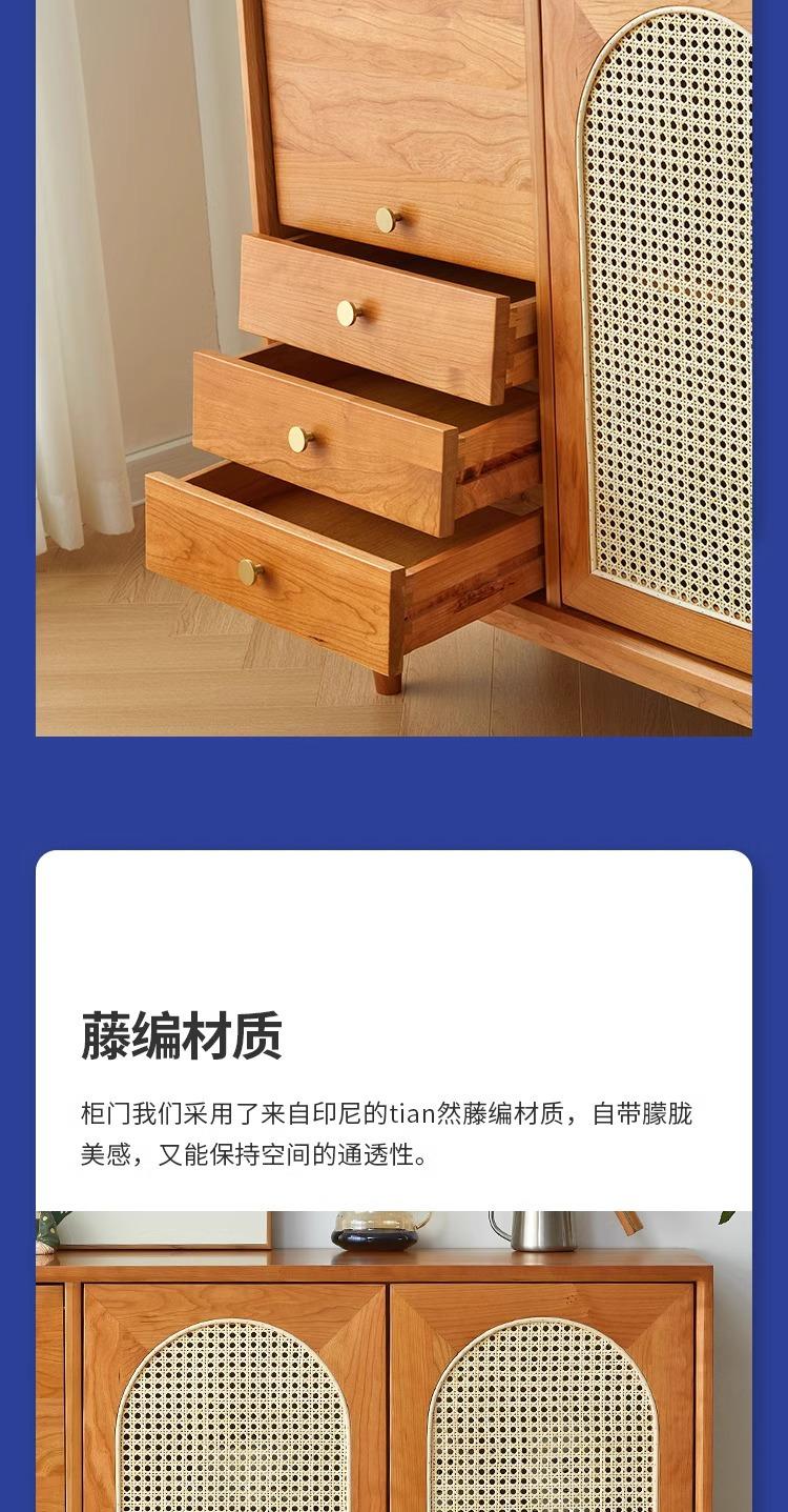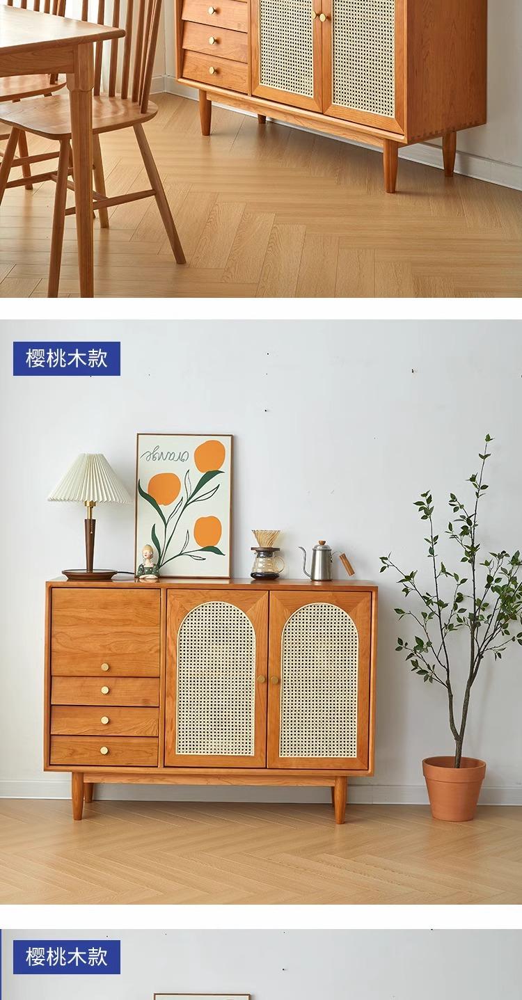 Aparador de madera maciza de estilo japonés, armario de almacenamiento de ratán integrado en la pared, armario de almacenamiento nórdico moderno, sencillo, ligero y de lujo de madera de cerezo.