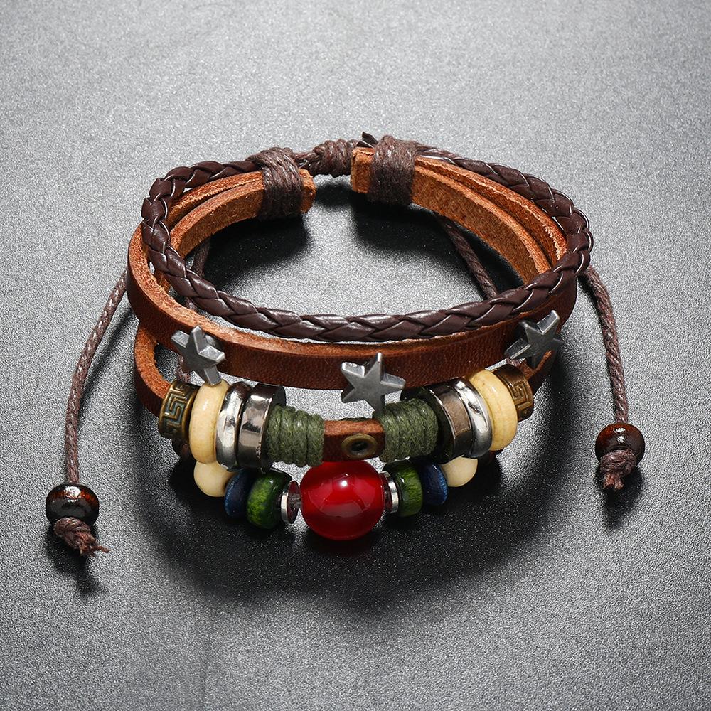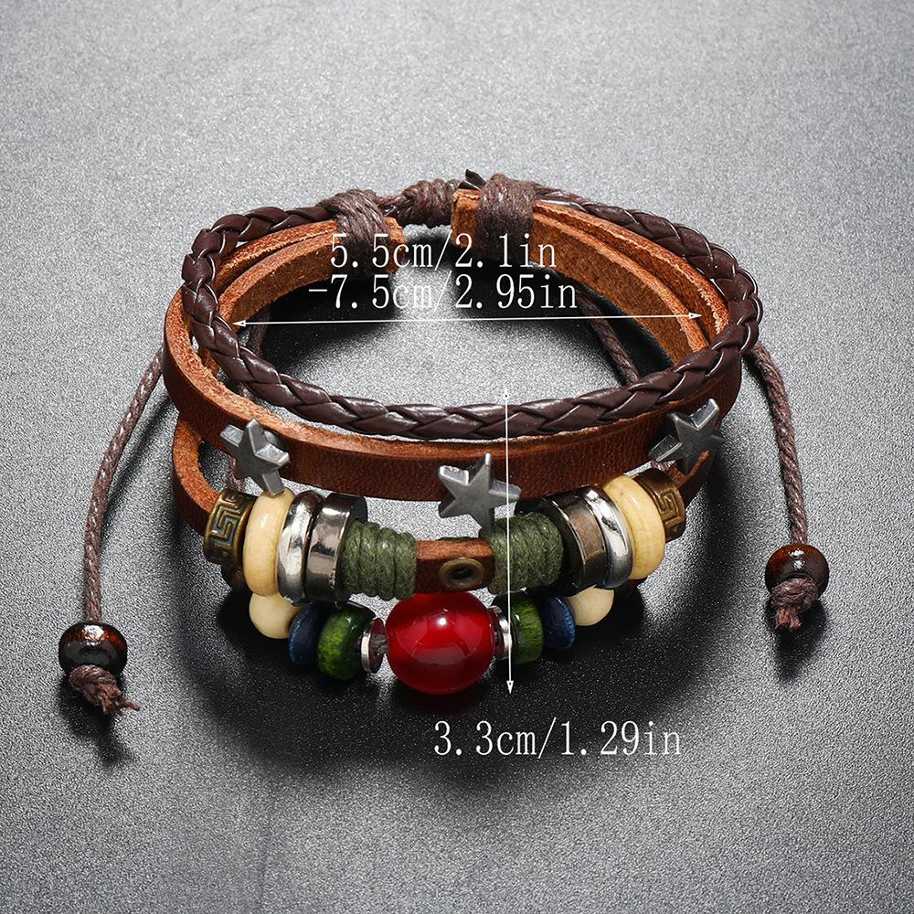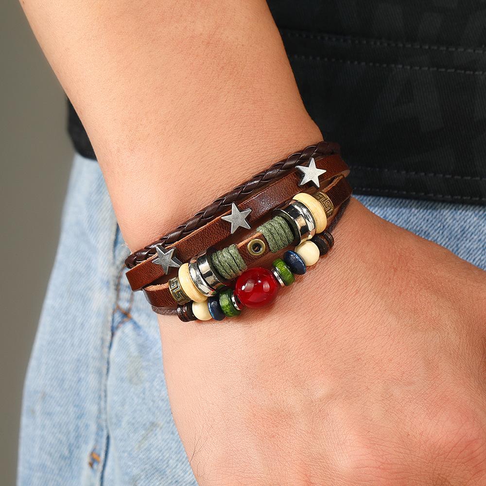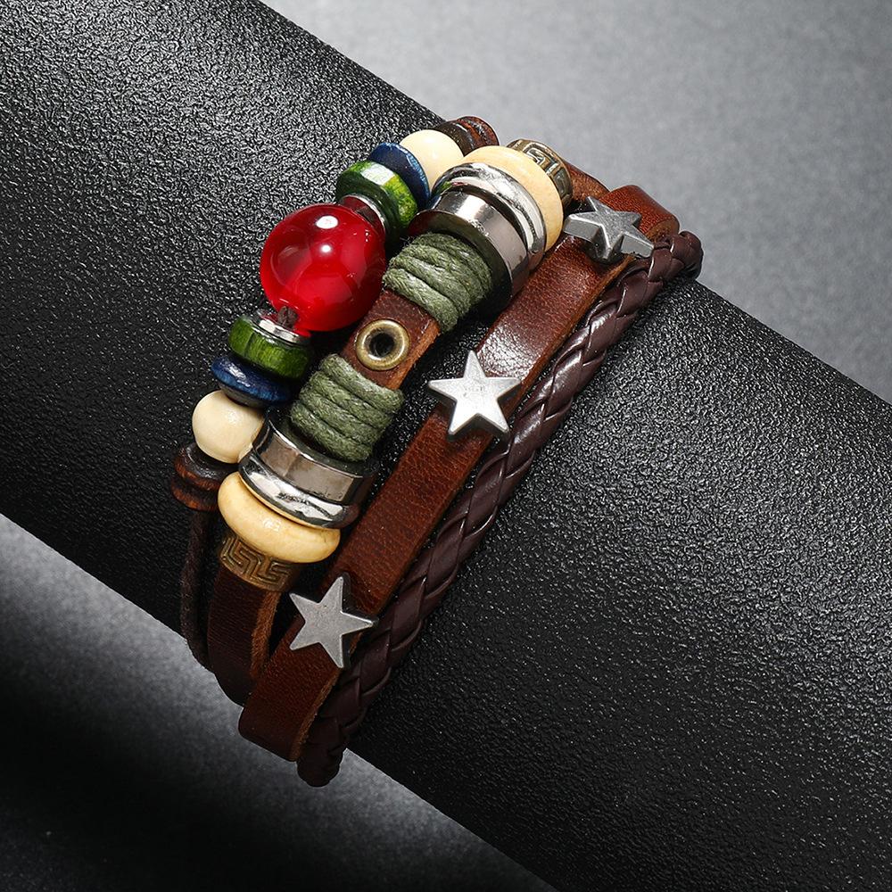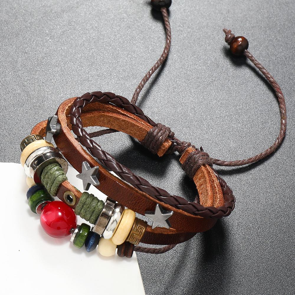 Material:Cuero vacuno + hilo encerado + CCB + aleación de zinc + cuentas de madera + piedra