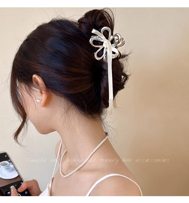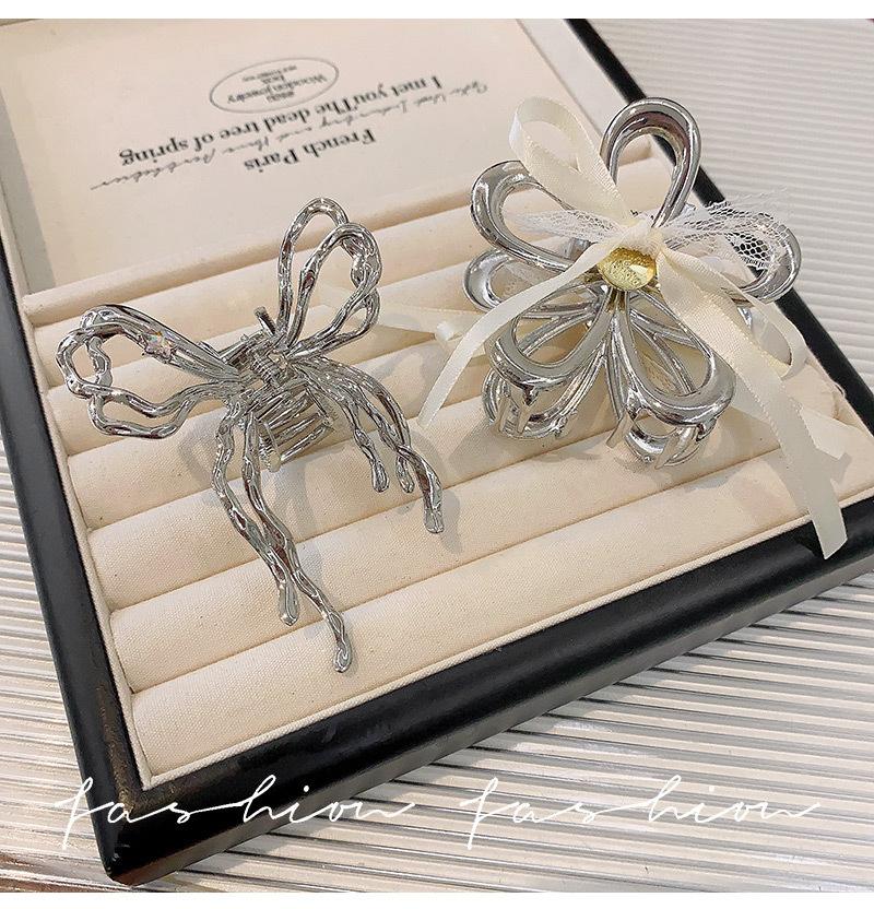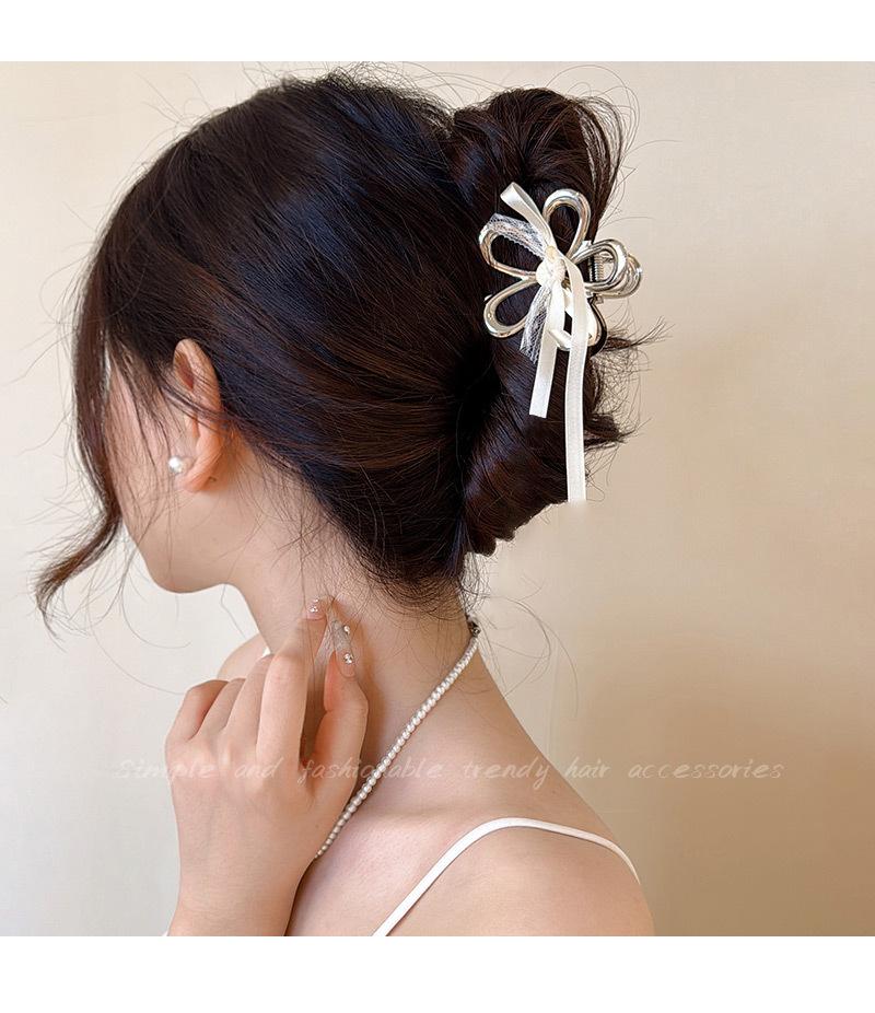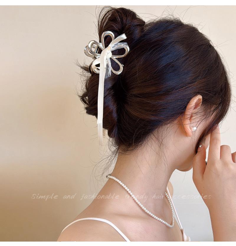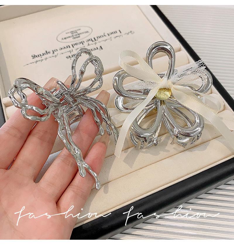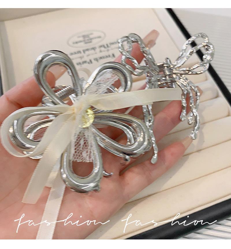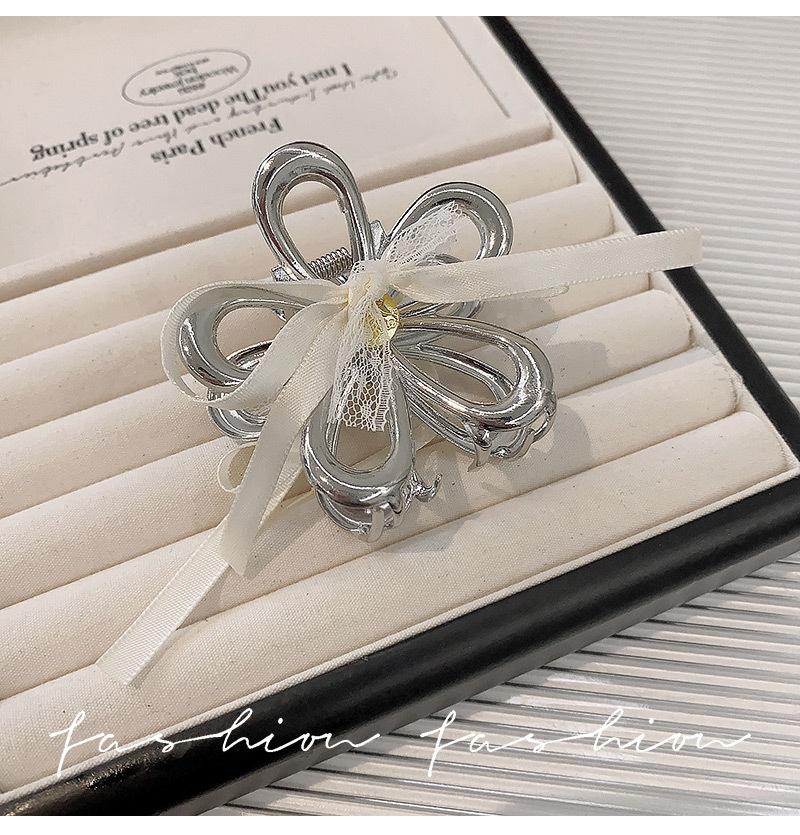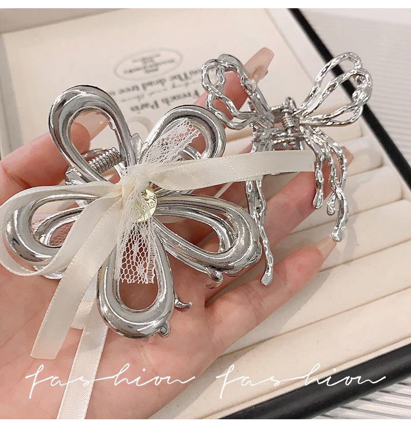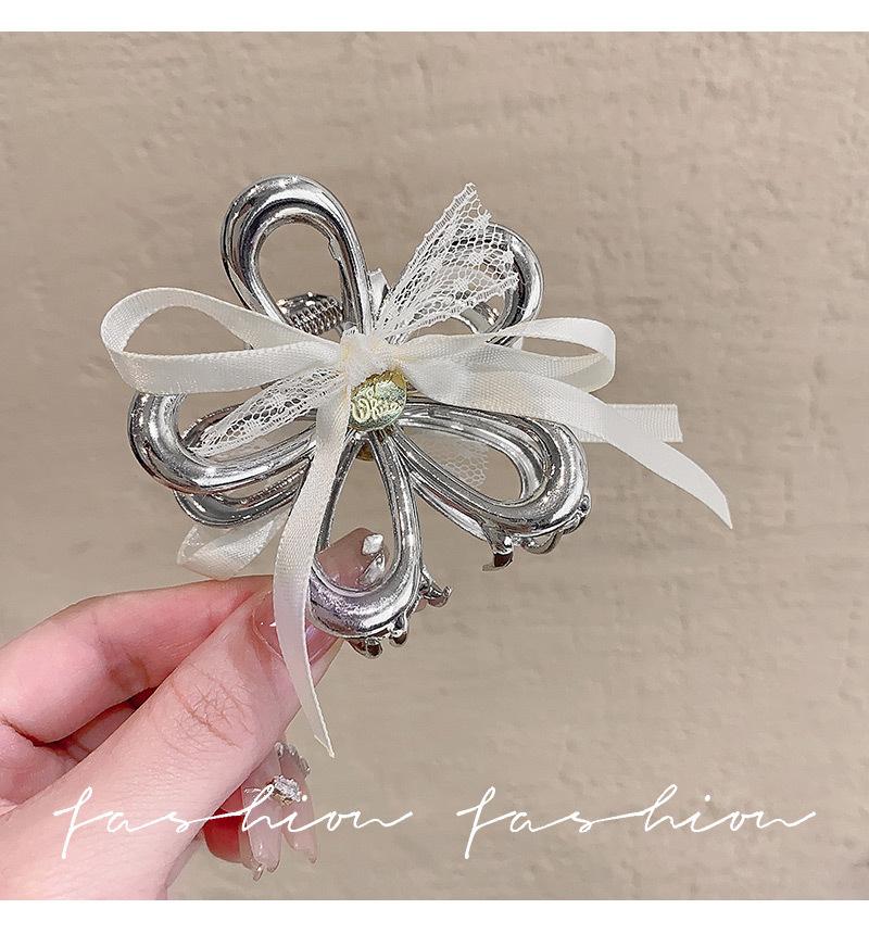 Horquilla de Encaje Estilo Hada Lazo Cinta Tocado para Mujer Nuevo de Alta Gama Plata Cola de Caballo Clip de Alto Agarre Accesorios de Verano