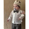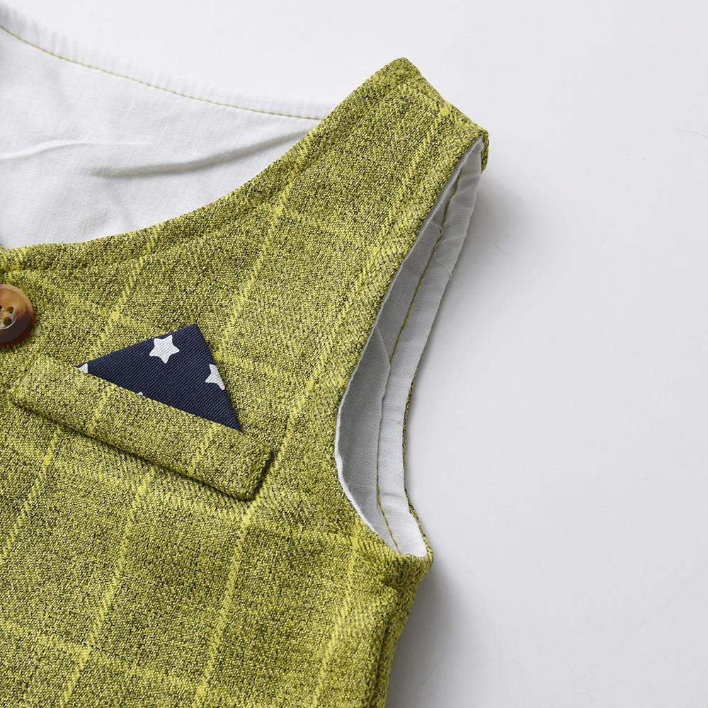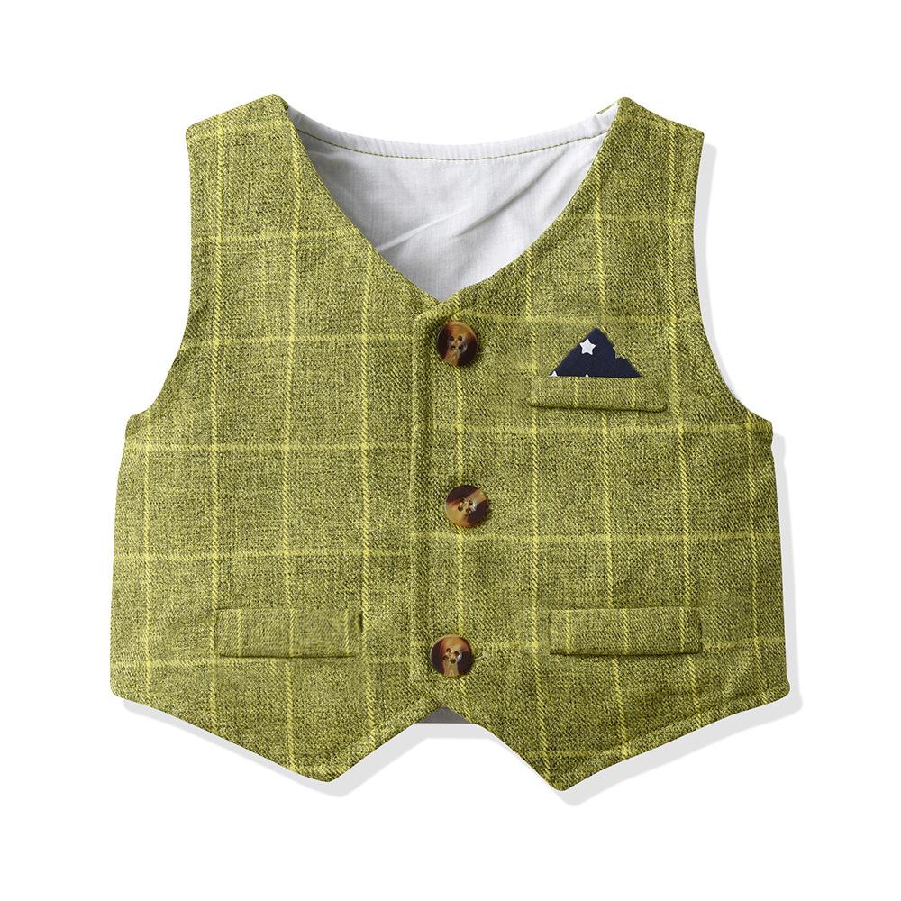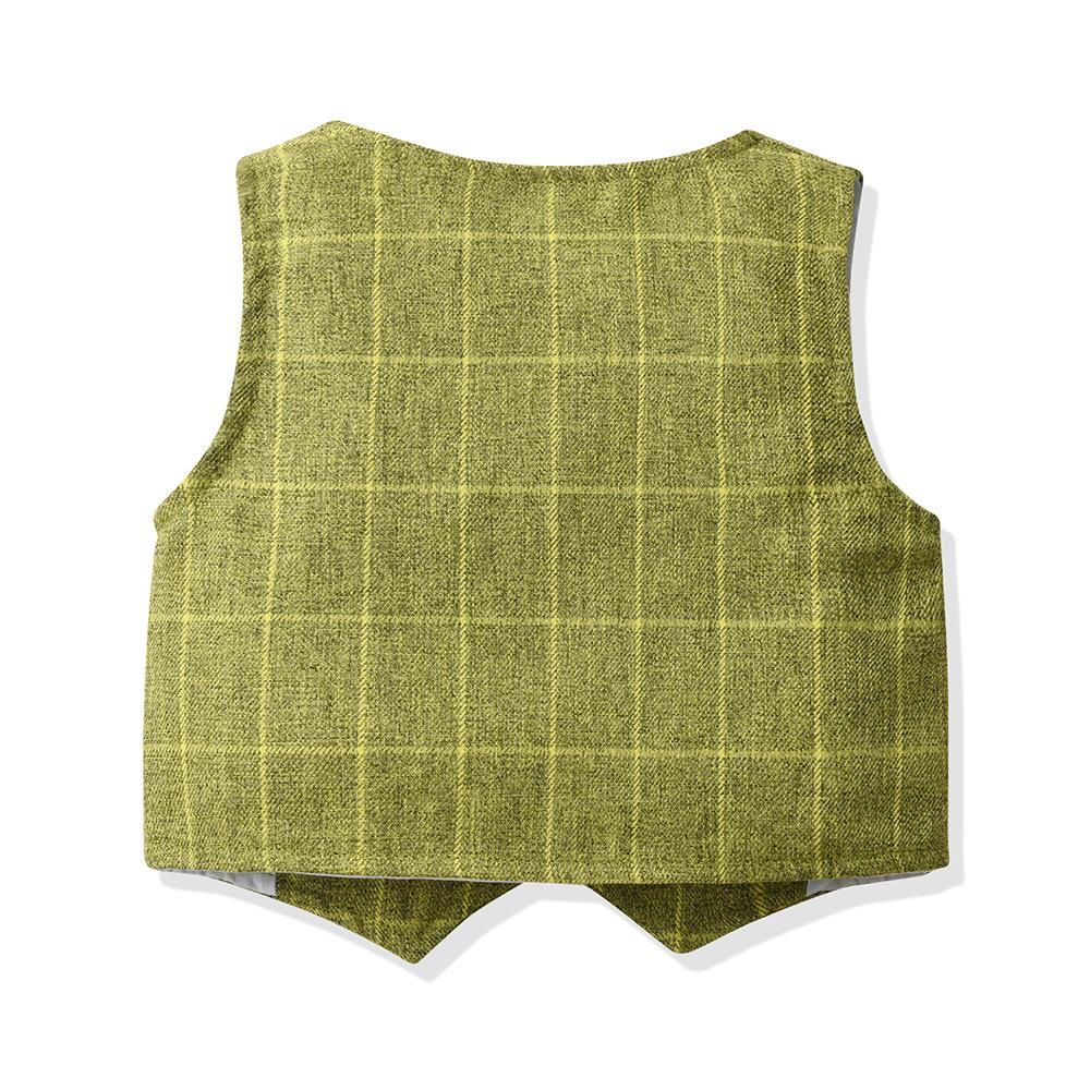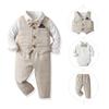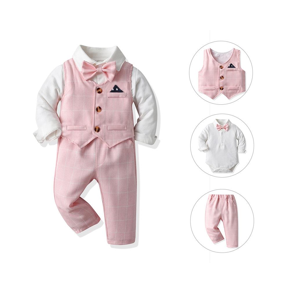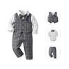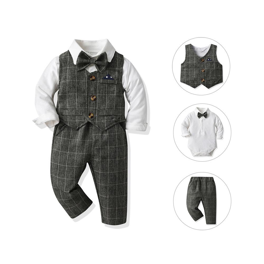 Ropa infantil de comercio exterior chaleco de cuadros retro caballero mameluco de manga larga de una pieza pantalones de bebé conjunto de tres piezas Venta al por mayor