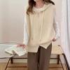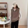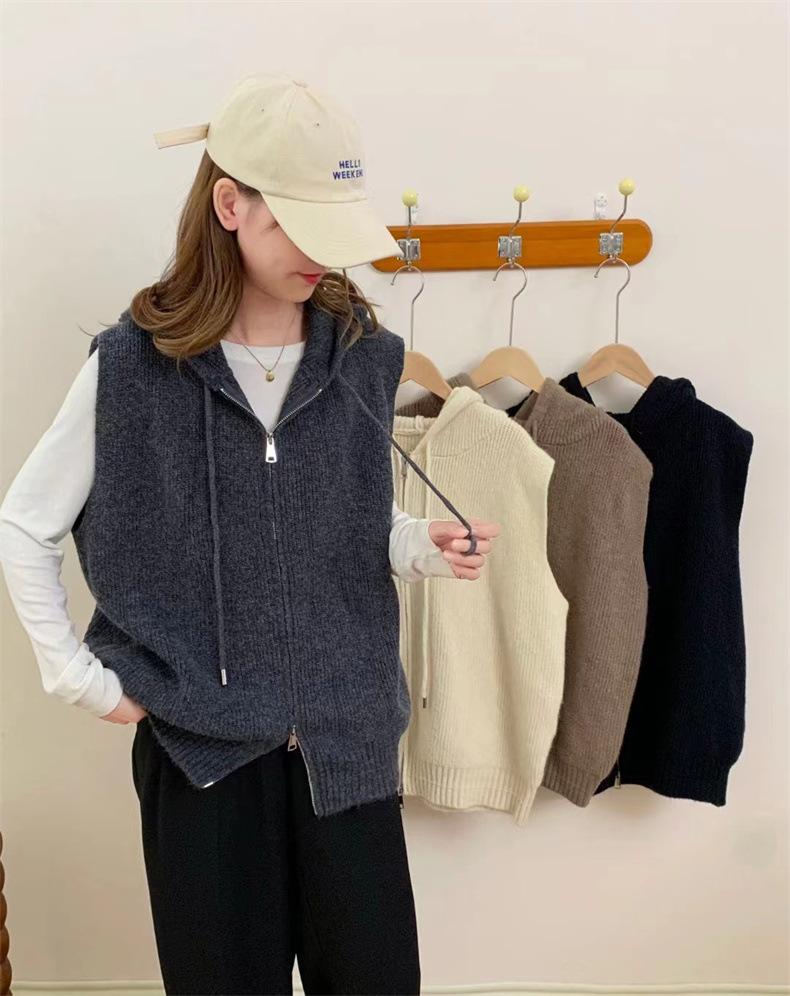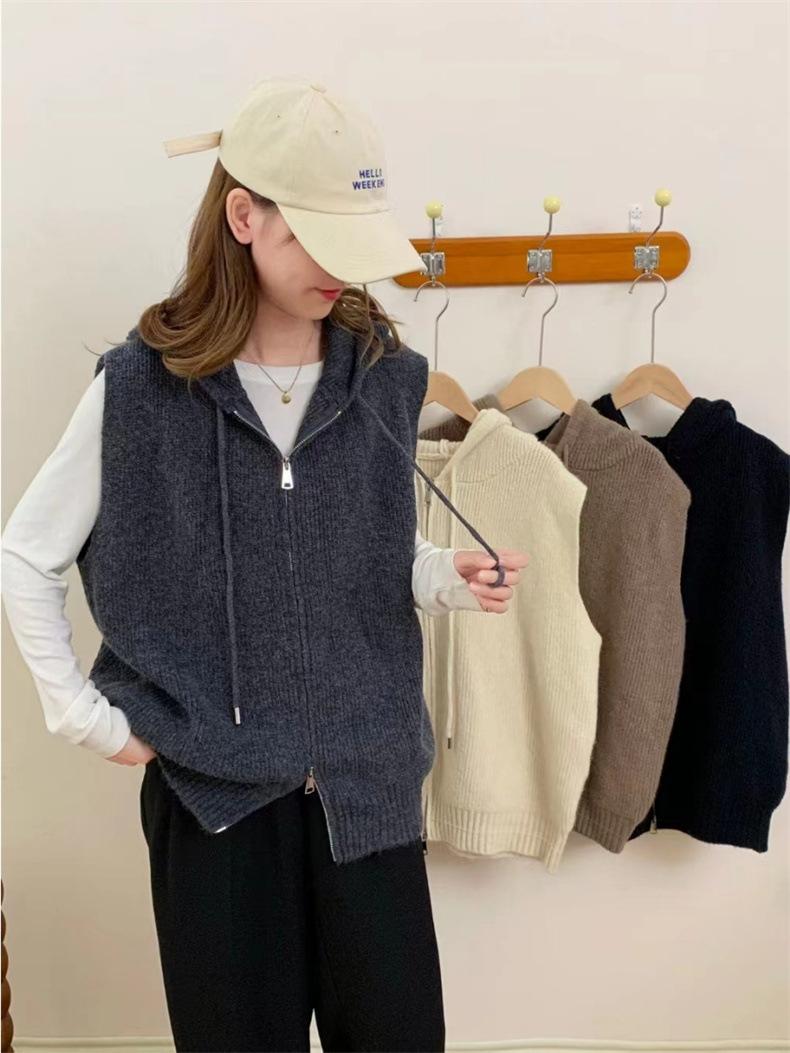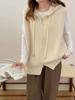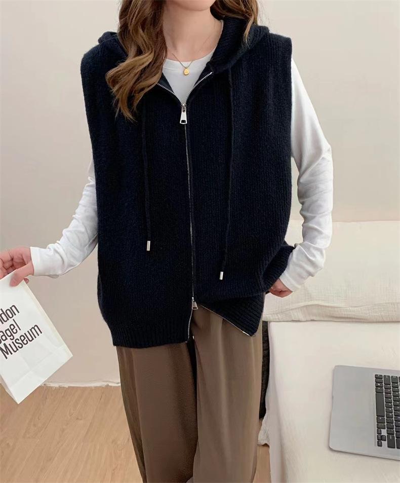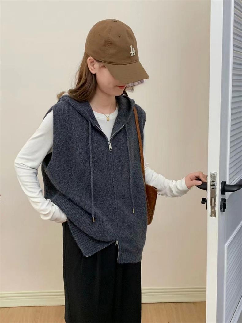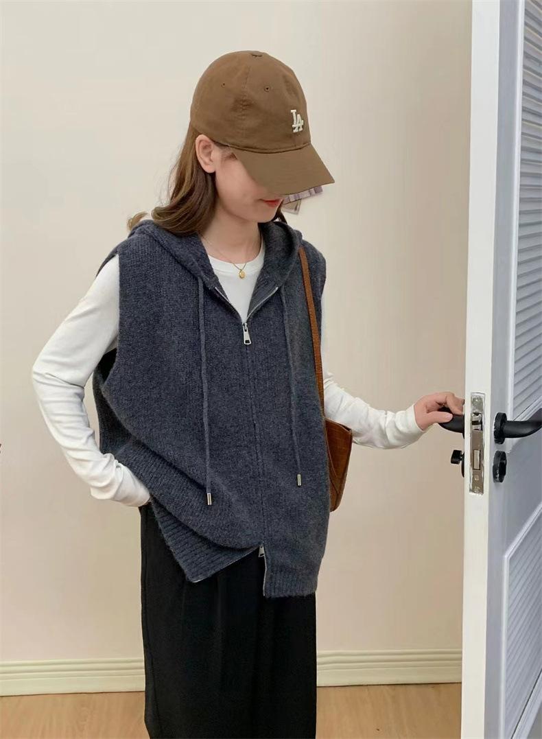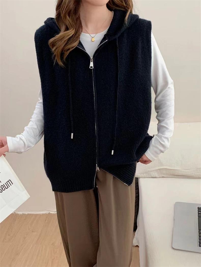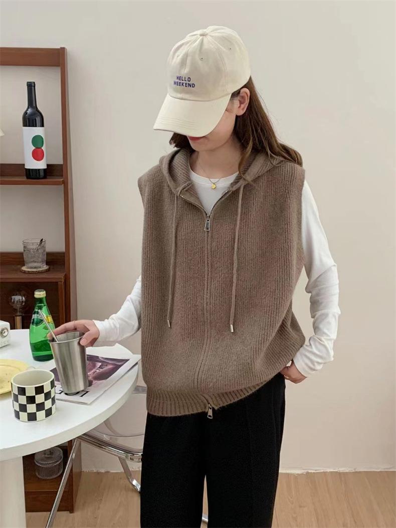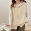 Chaleco de punto cómodo e informal sin mangas con capucha y cremallera de talla grande holgado de estilo coreano para otoño e invierno, chaleco para mujer