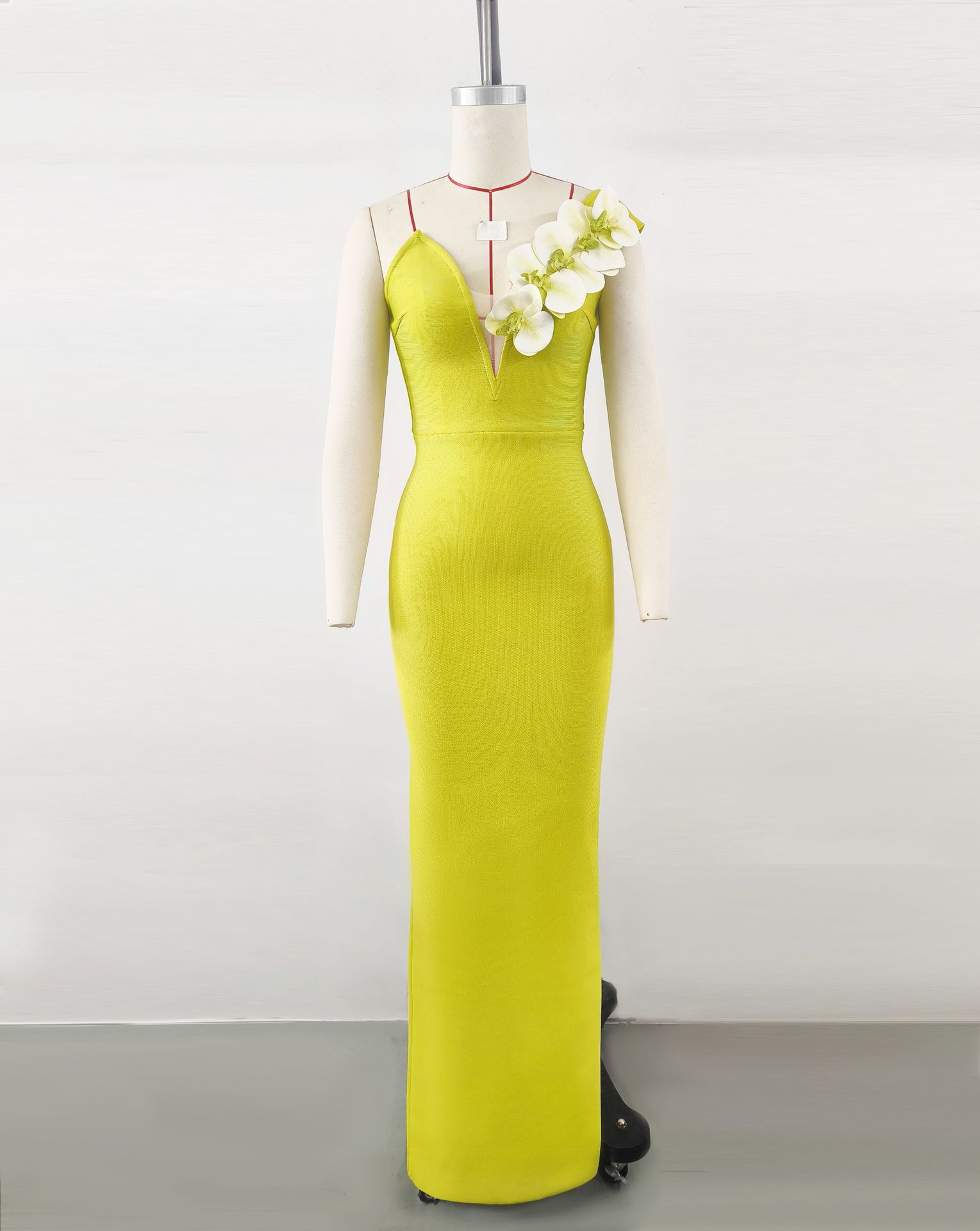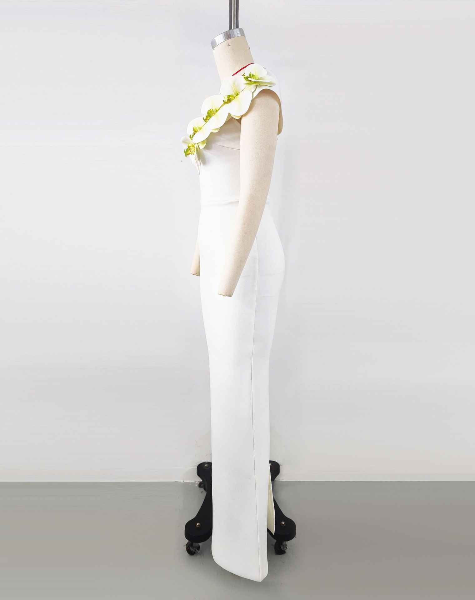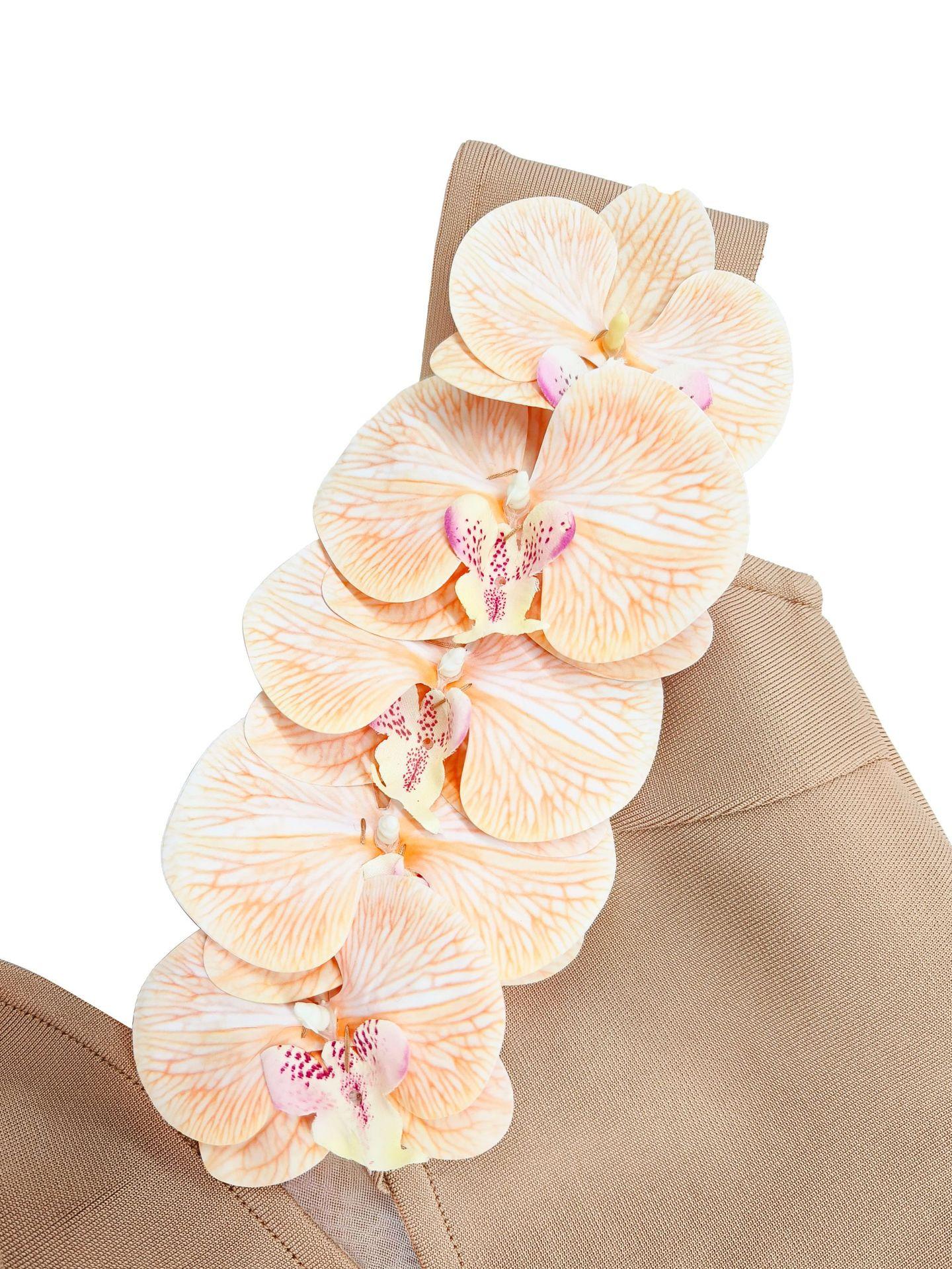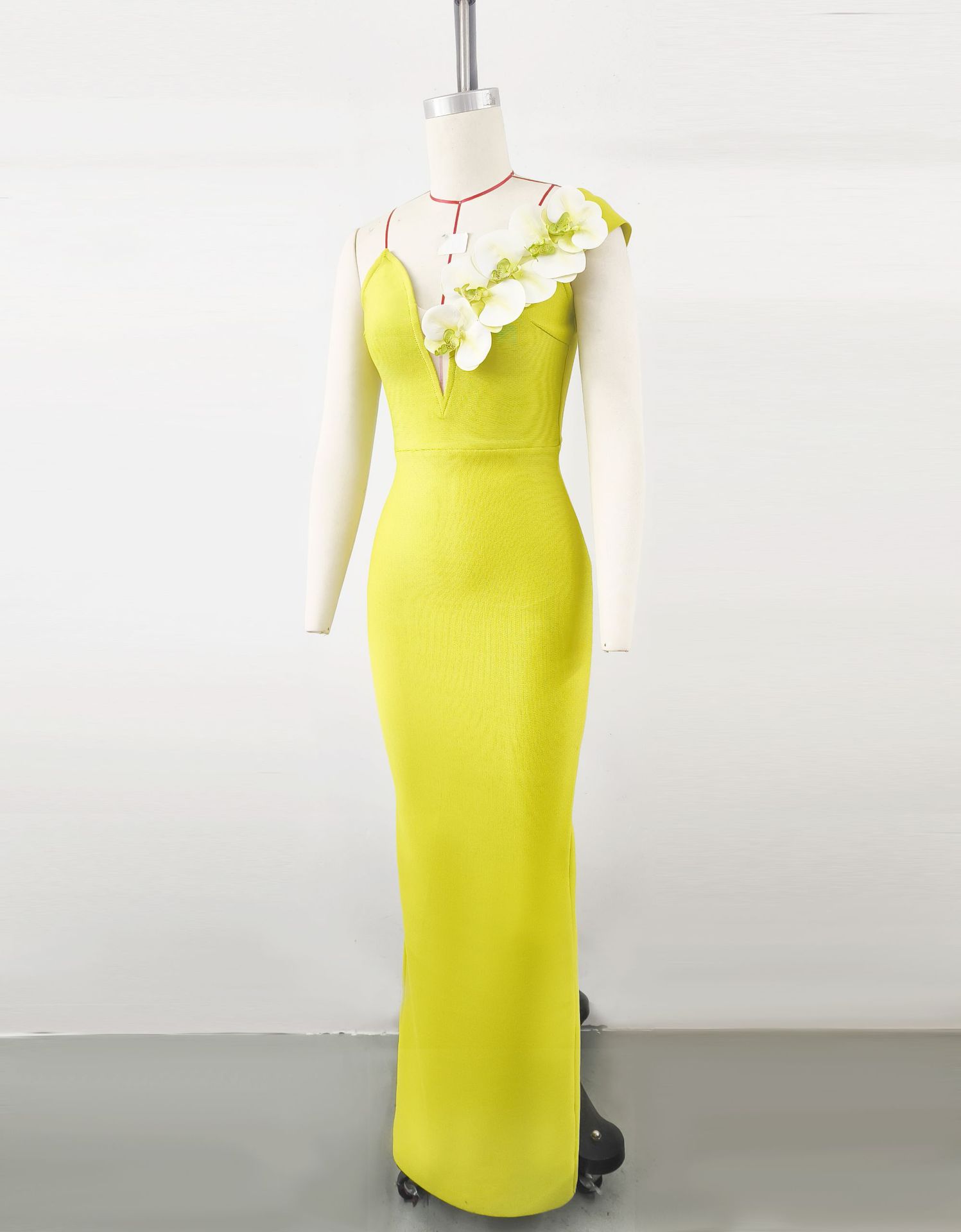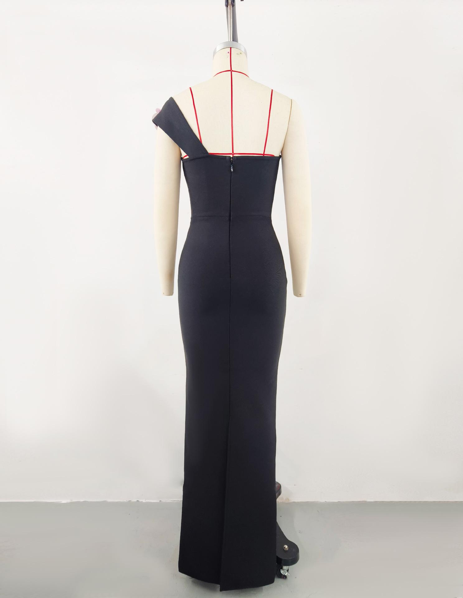 Vestido de noche con escote tipo vendaje, elegante vestido con flores en los hombros, para banquetes y fiestas.