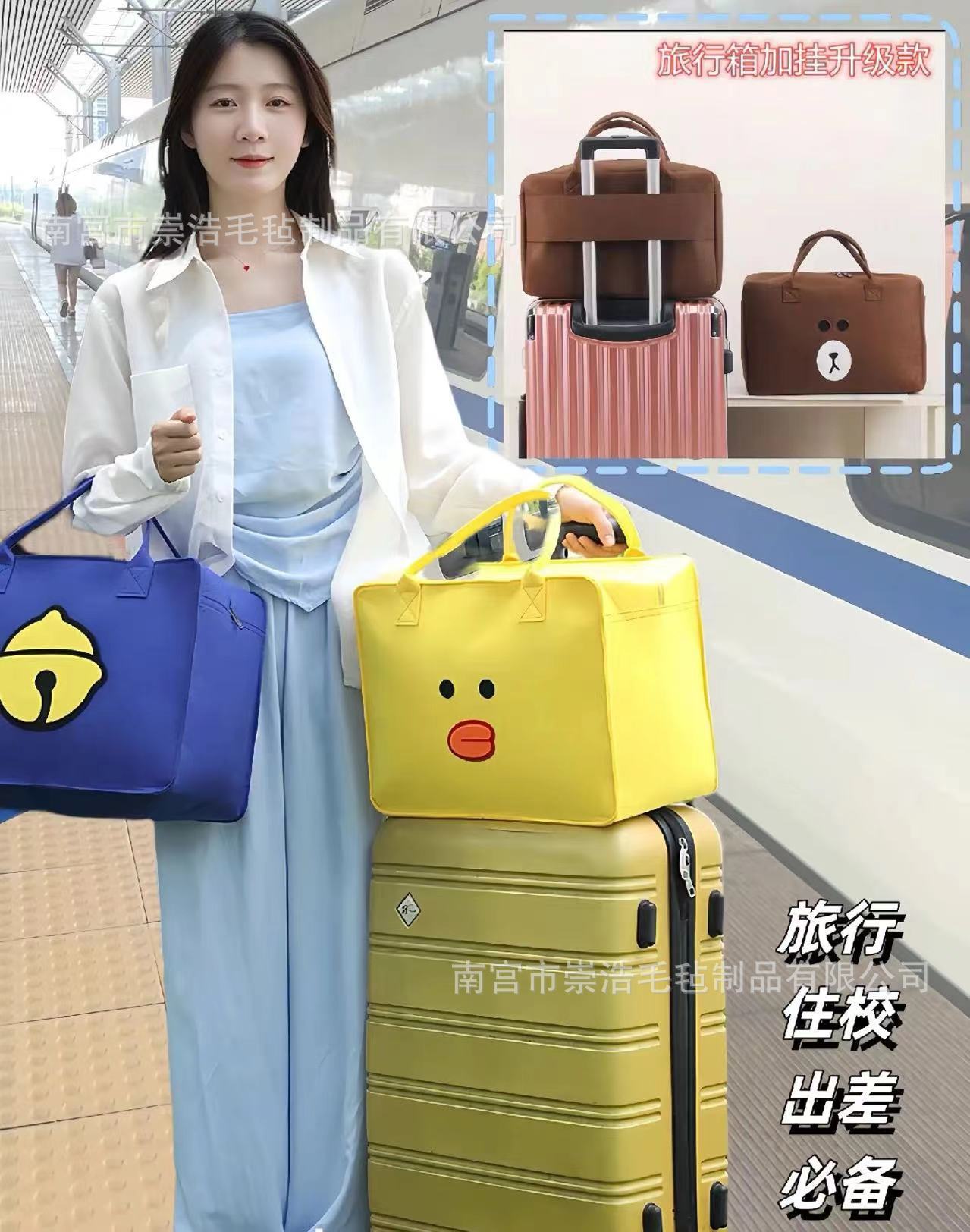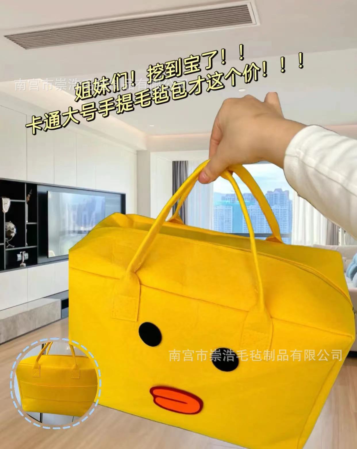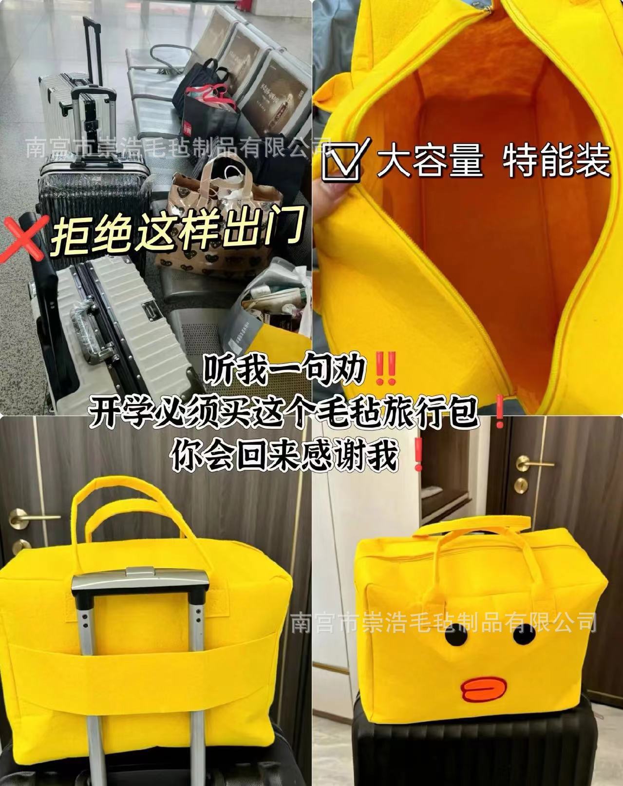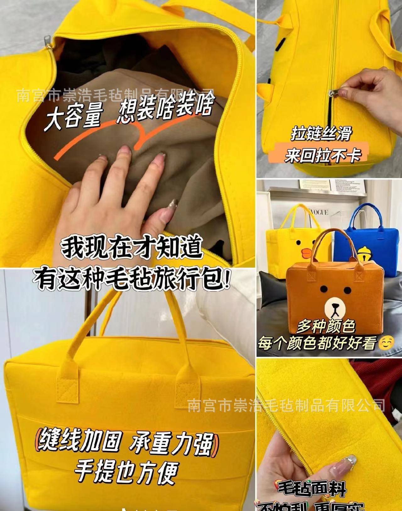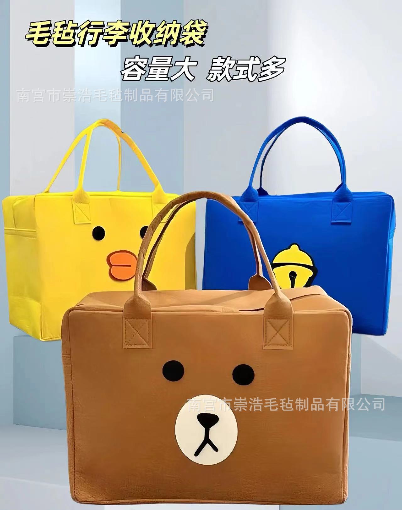 Bolsa de viaje de fieltro de dibujos animados al por mayor de fábrica, bolsa de almacenamiento de gran capacidad, equipaje para niños estudiantes, bolso de mano de fieltro