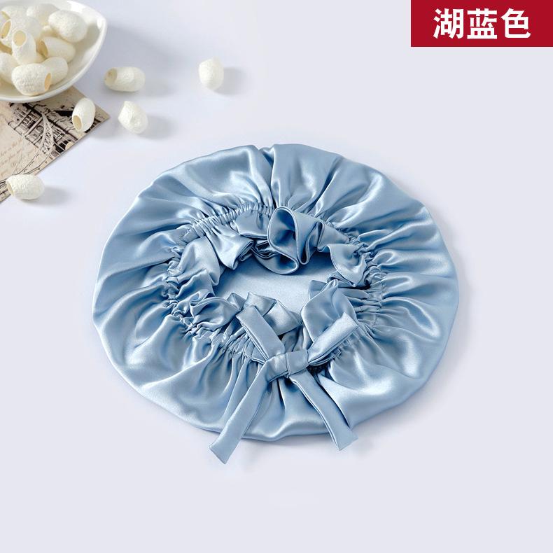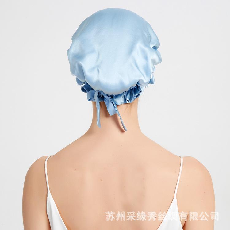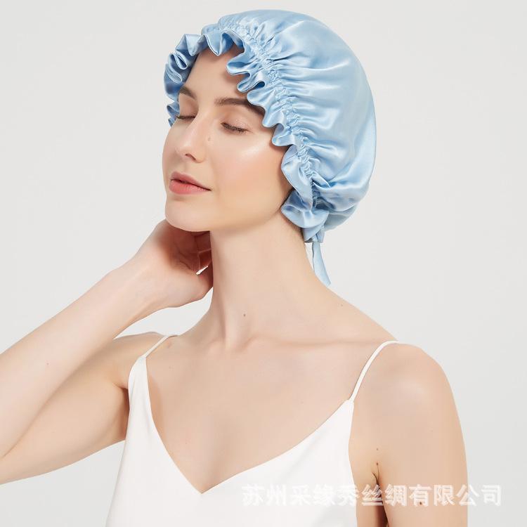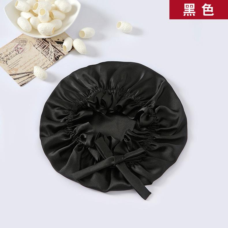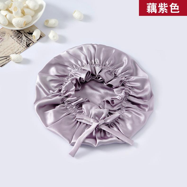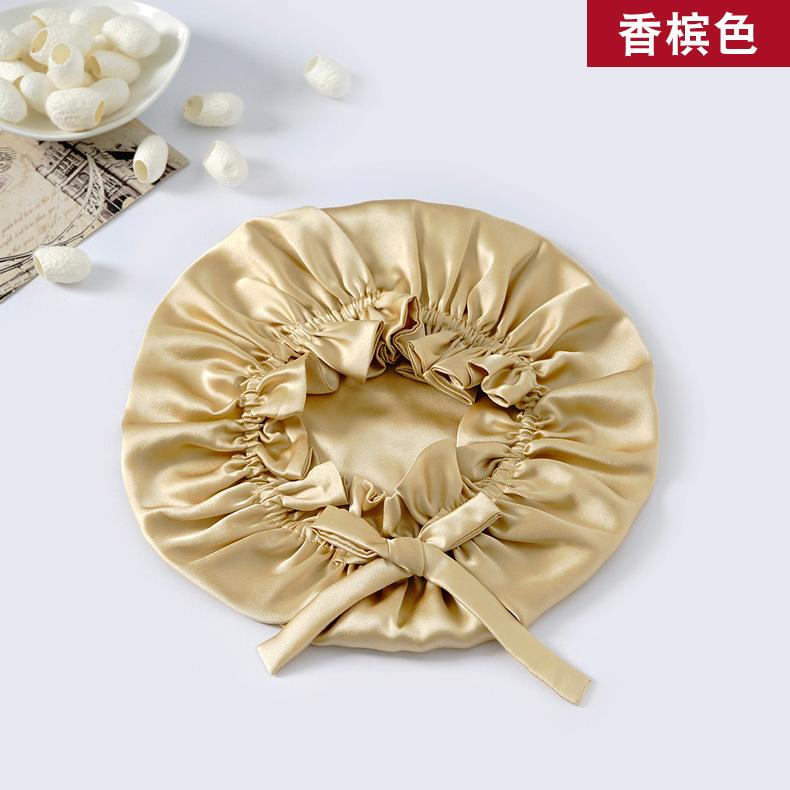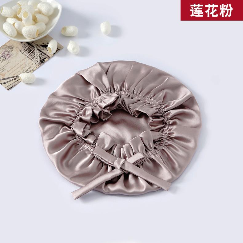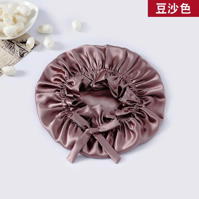 Gorro de dormirDoble capaSeda del mismo color, lisa por dentro y por fuera, hecha de tela satén crepé liso de 16 momme.