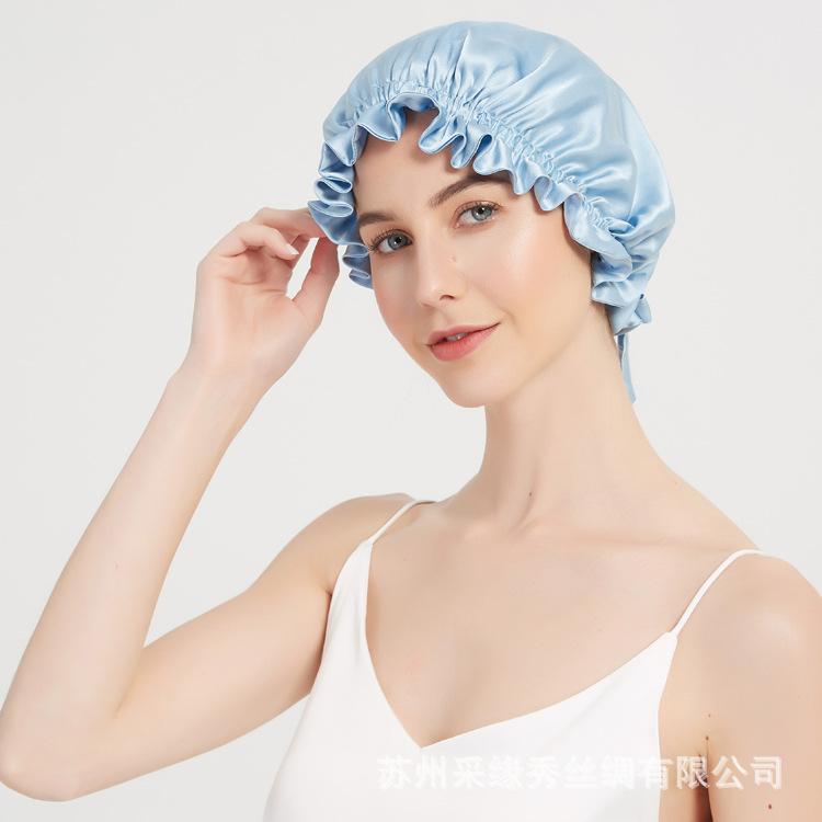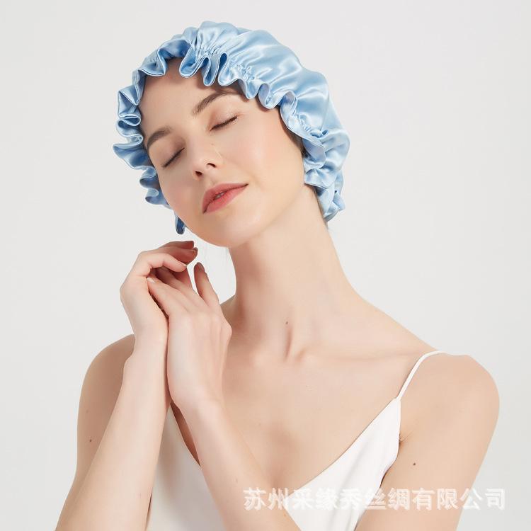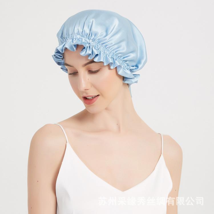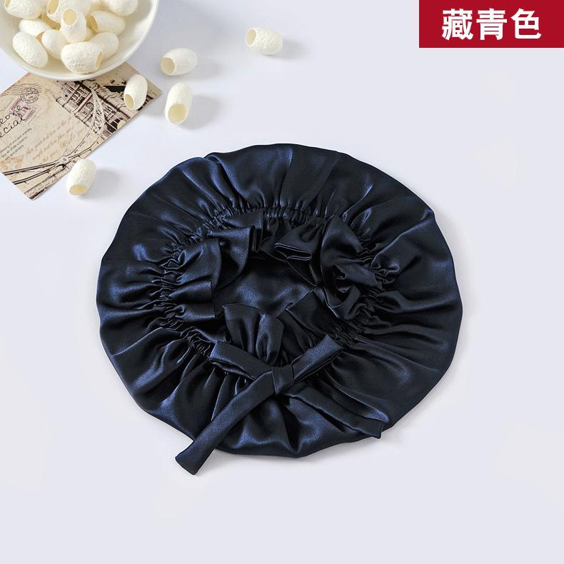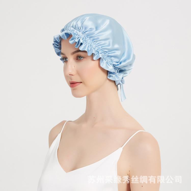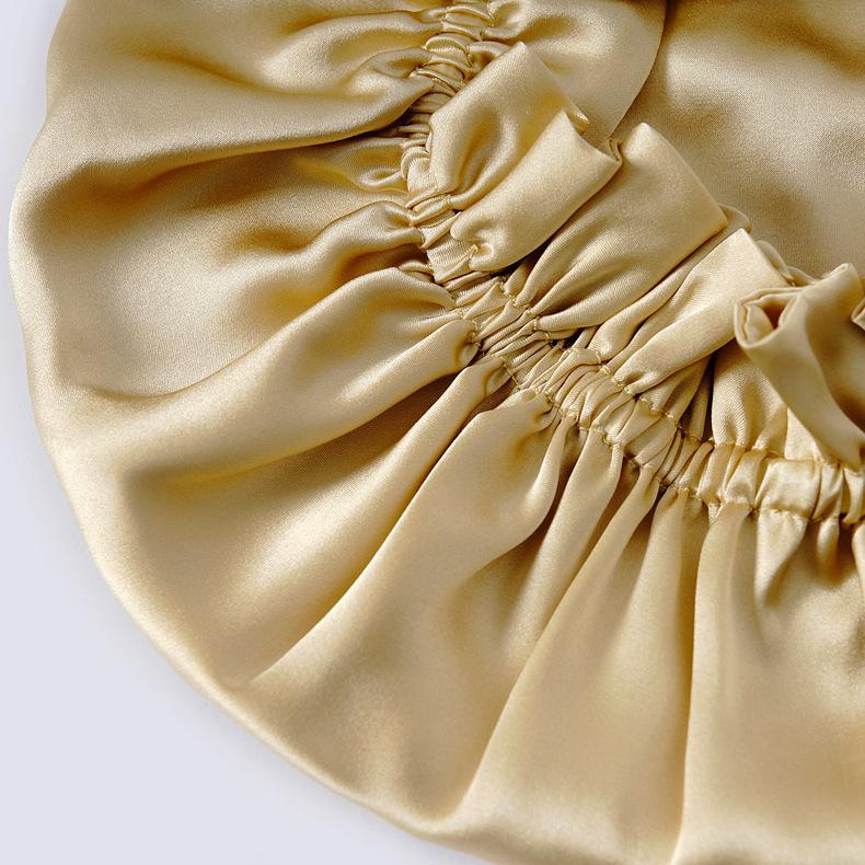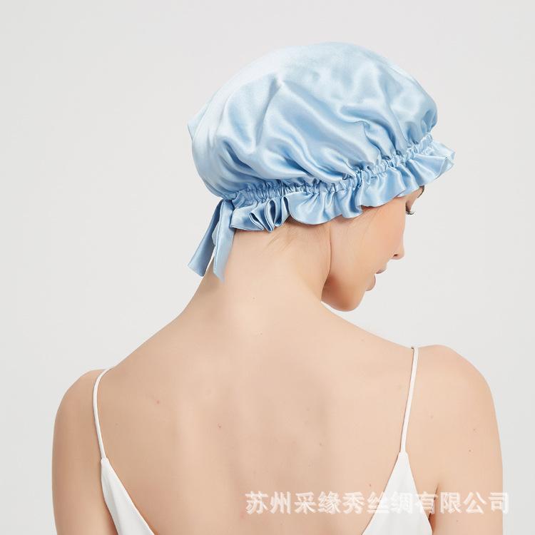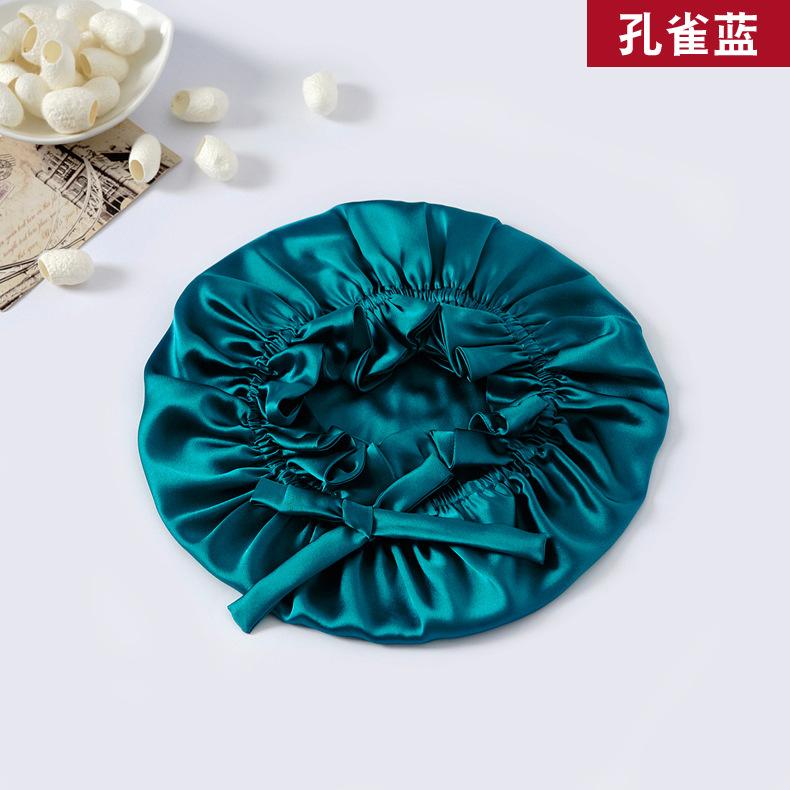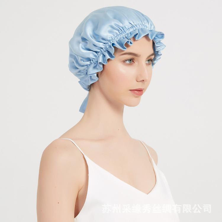 Gorro de dormirDoble capaSeda del mismo color, lisa por dentro y por fuera, hecha de tela satén crepé liso de 16 momme.