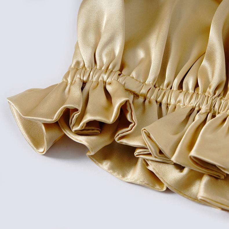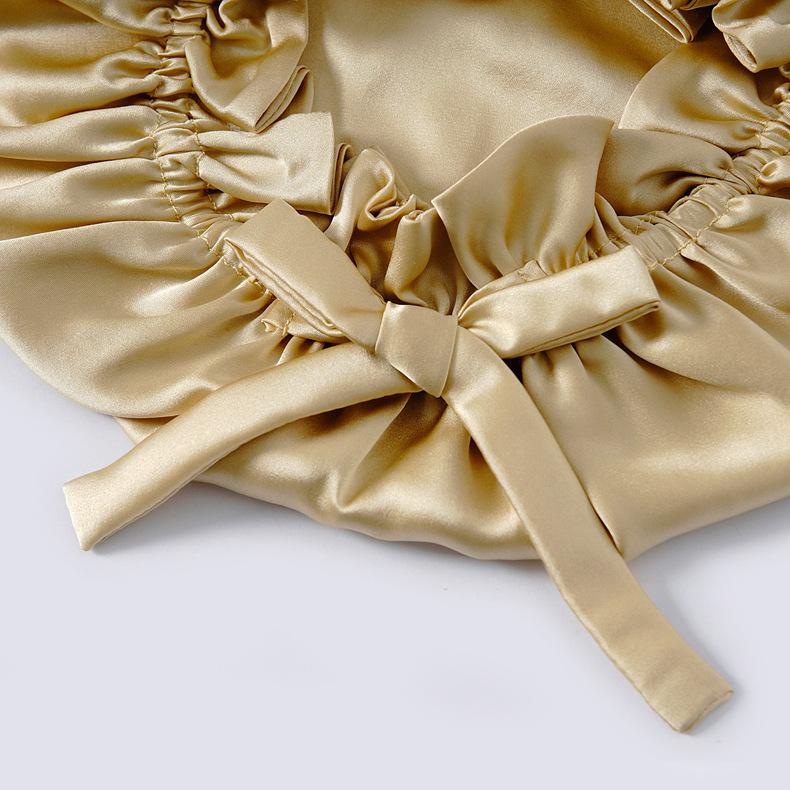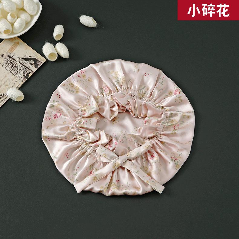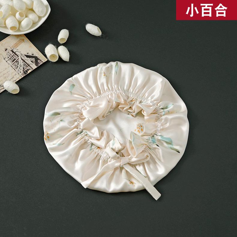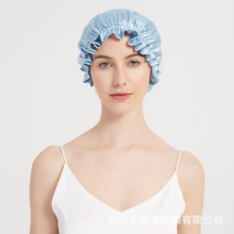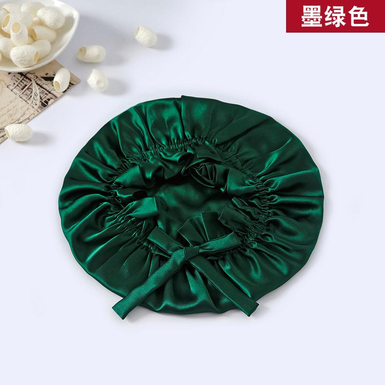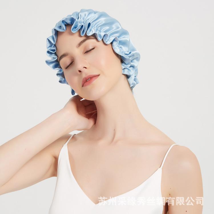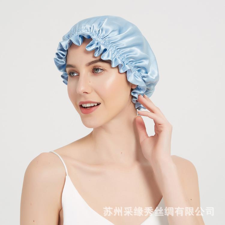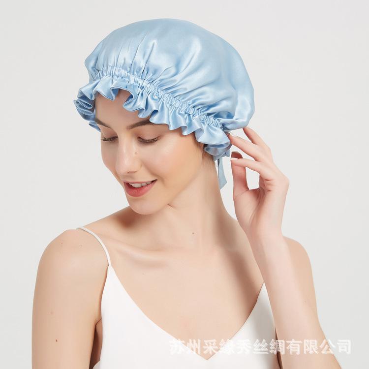 Gorro de dormirDoble capaSeda del mismo color, lisa por dentro y por fuera, hecha de tela satén crepé liso de 16 momme.
