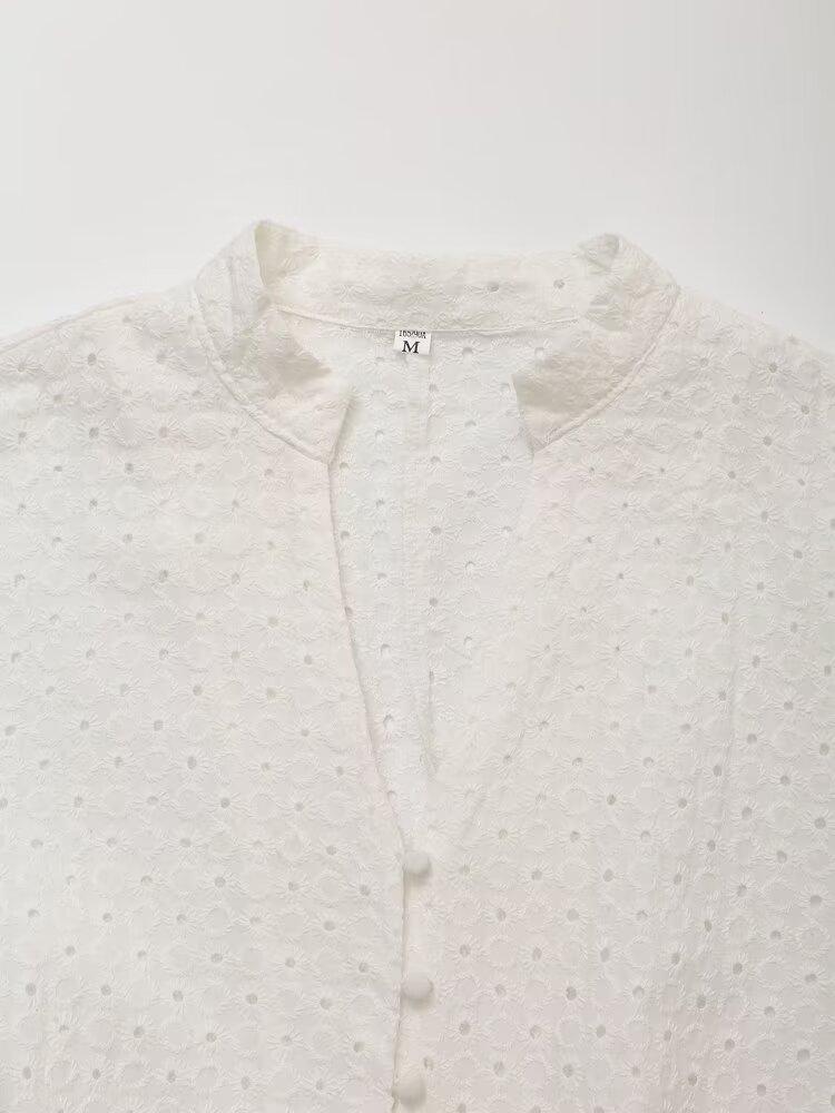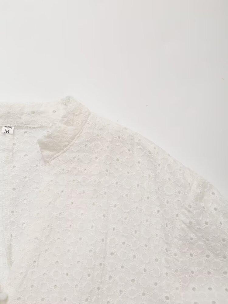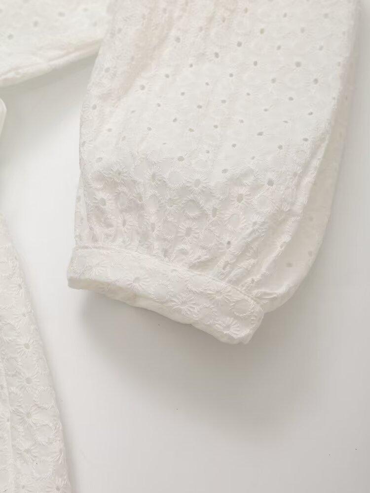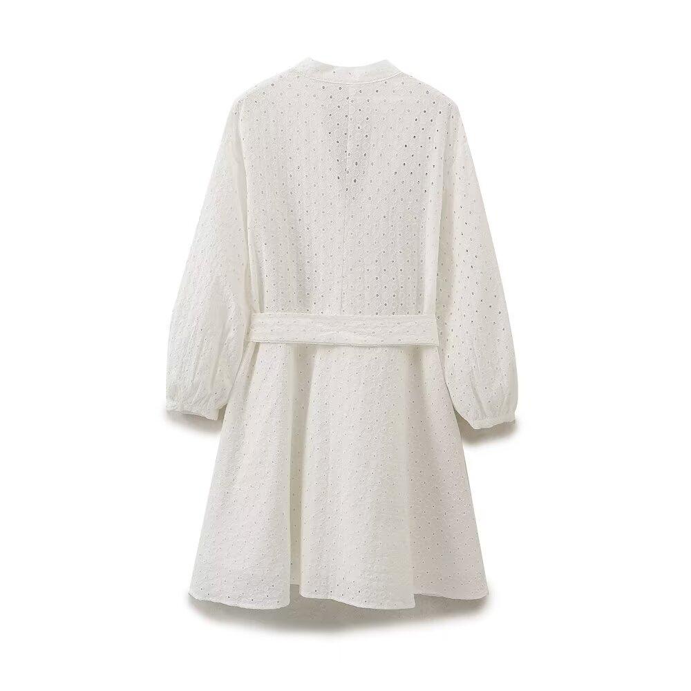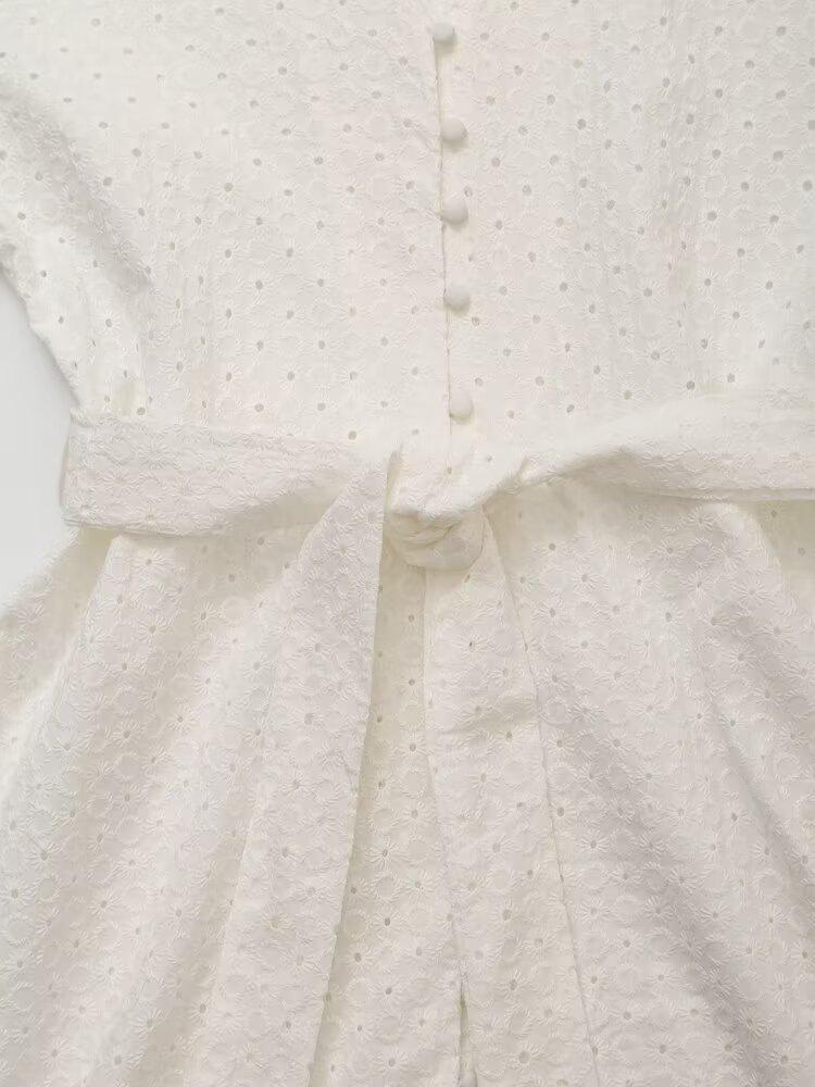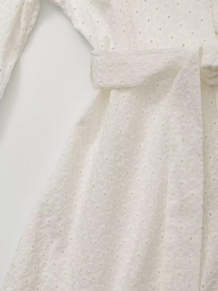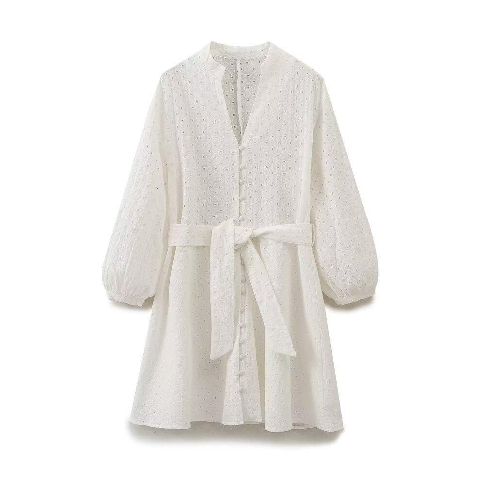 2024 Verano Transfronterizo Europeo y Americano para Mujer Cuello en V Bordado Calado con Cinturón Vestido Cárdigan Falda E74100