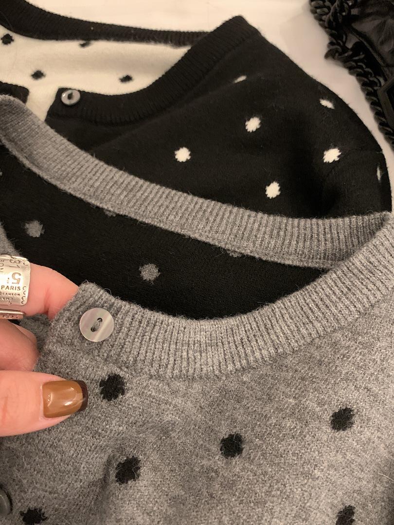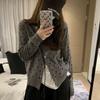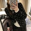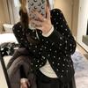 Cárdigan de punto de lunares grises estilo coreano para mujer, nuevo diseño de otoño, suéter ajustado con diseño apilado Sense Niche