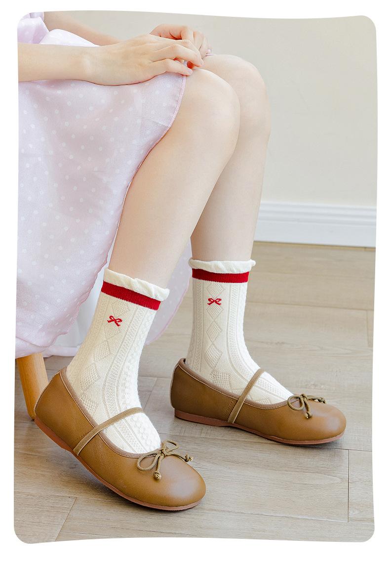 | Calcetines de otoño para niña, bonitos calcetines de tubo medio, bonitos calcetines de niña con lazo blanco y negro, calcetines de algodón para mujer de primavera y otoño |