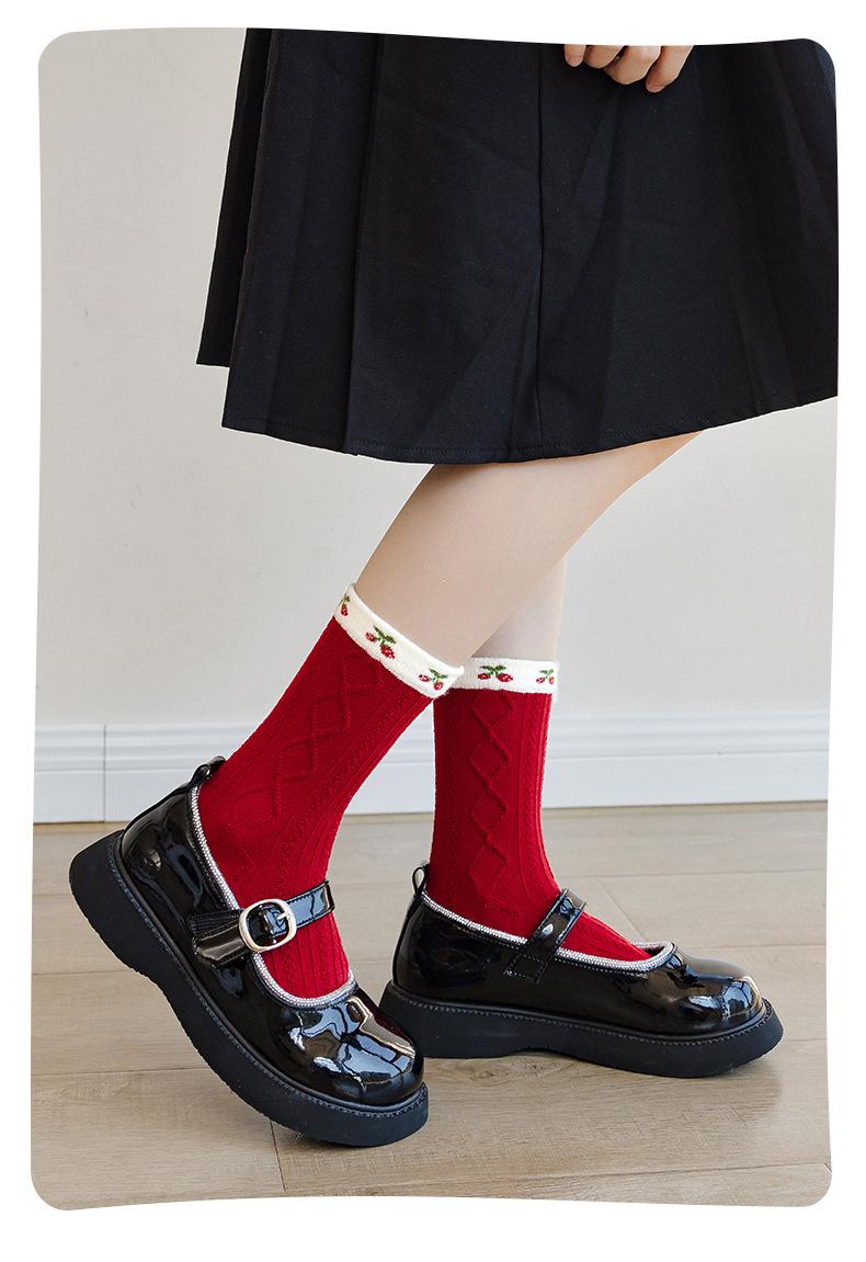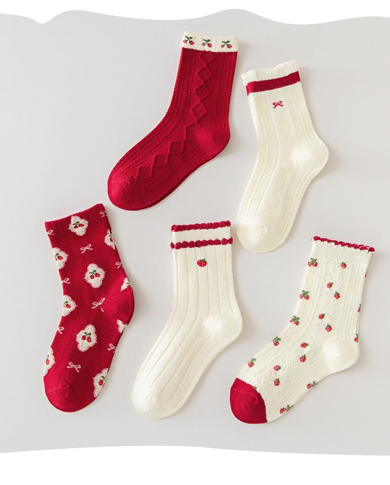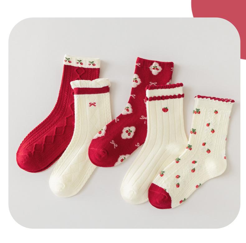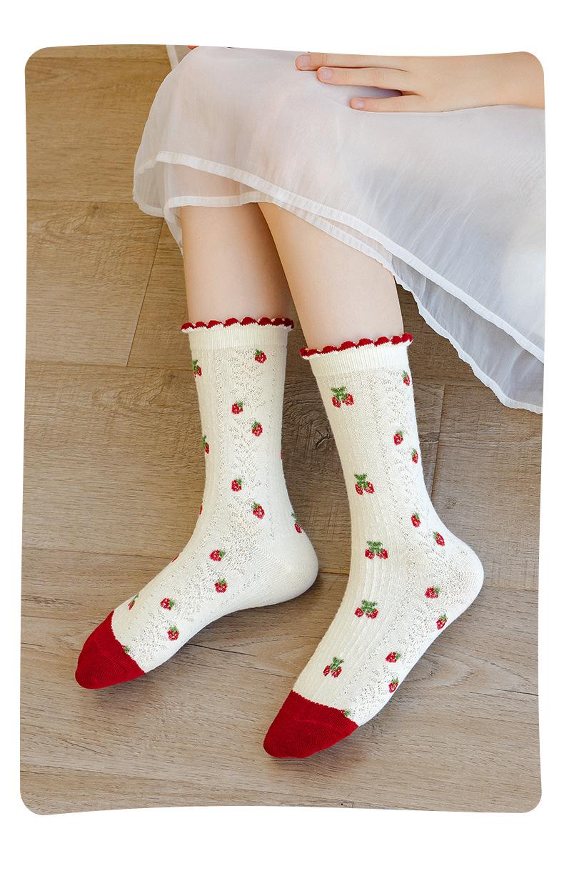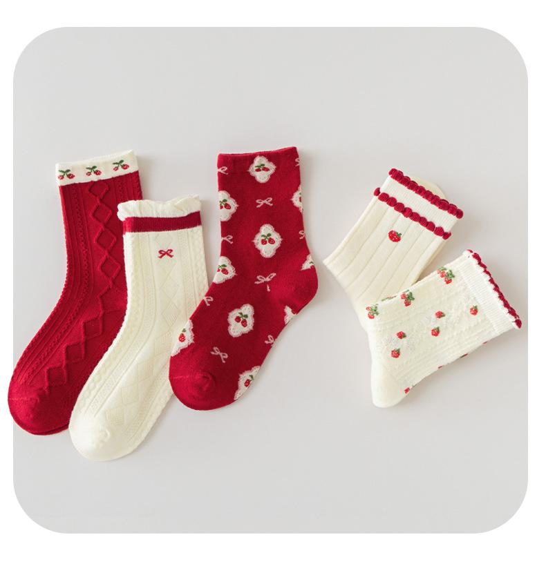 | Calcetines para niñas, serie otoño-bosque dulce, calcetines de tubo medio con flores, bonitos calcetines para niños, primavera y otoño, calcetines de algodón para niños medianos y grandes, venta al por mayor |