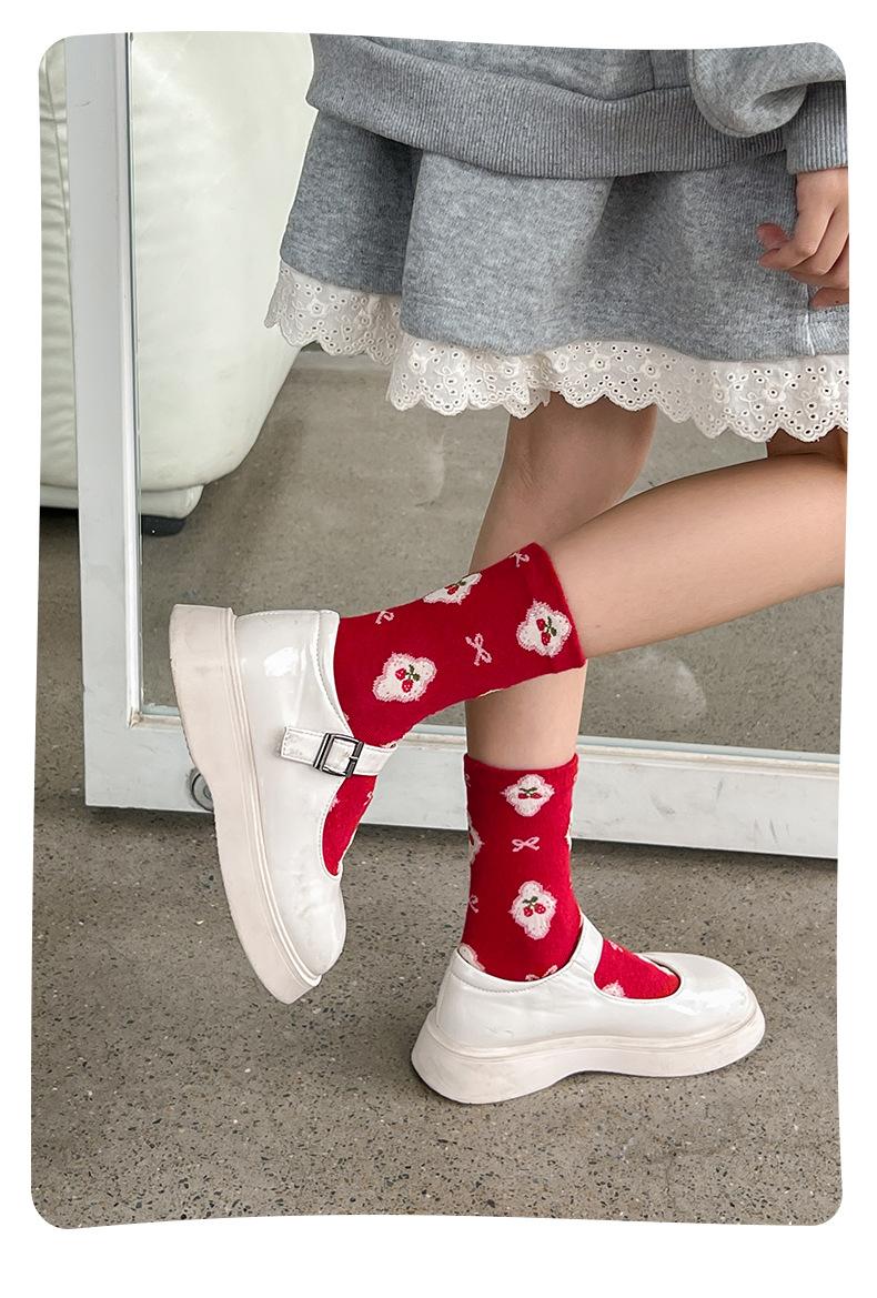 | Calcetines de niña Minliu de nuevo estilo, calcetines de flores dulces de primavera y otoño, calcetines de tubo medio rizados, calcetines coreanos para niños de otoño e invierno. |