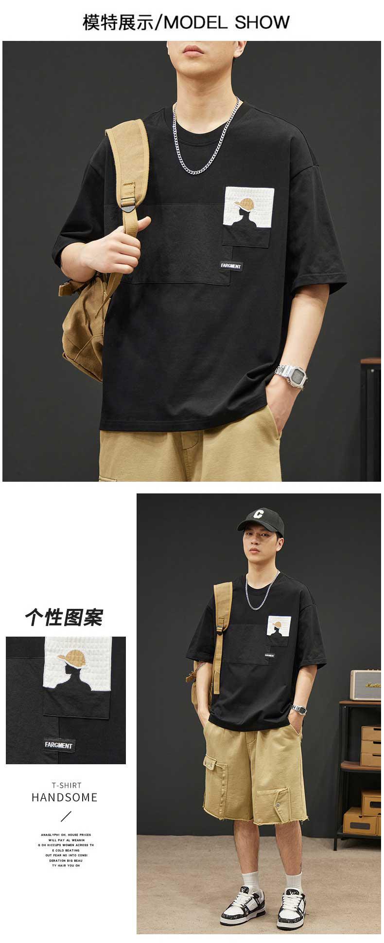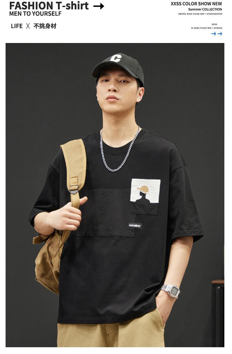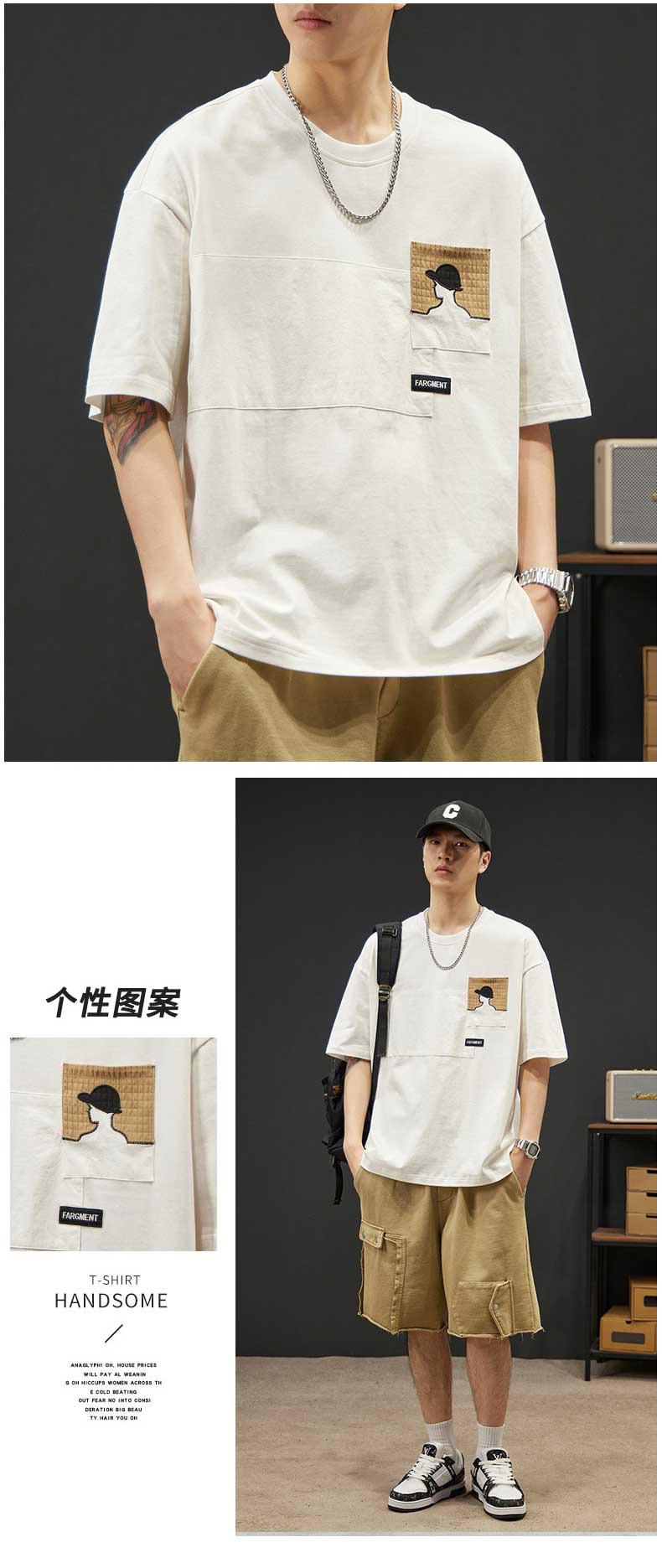 Danborne | Marca de Moda Americana Algodón Puro Cuello Redondo Manga Corta para Hombre 2025 Verano Nuevo Casual Suelto Trendy Camiseta de Peso Pesado