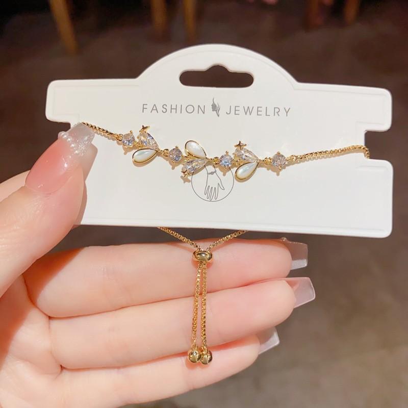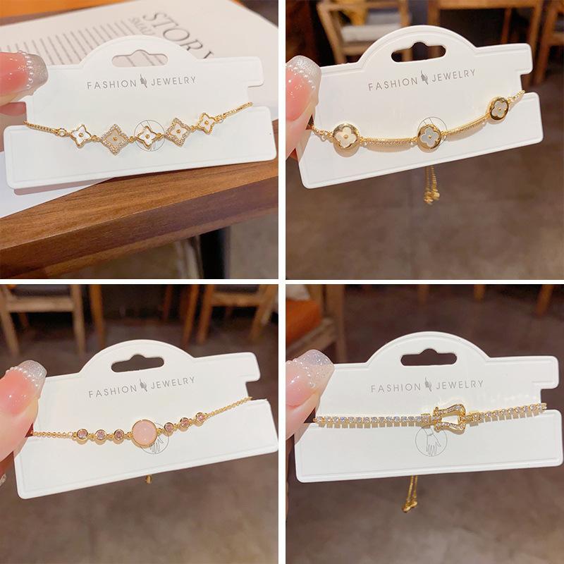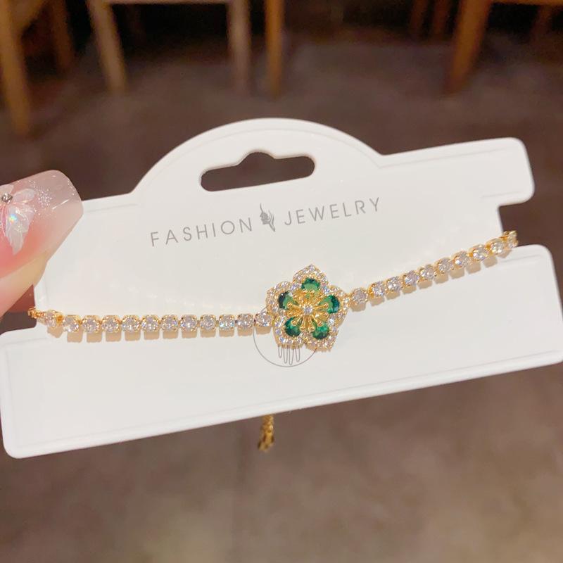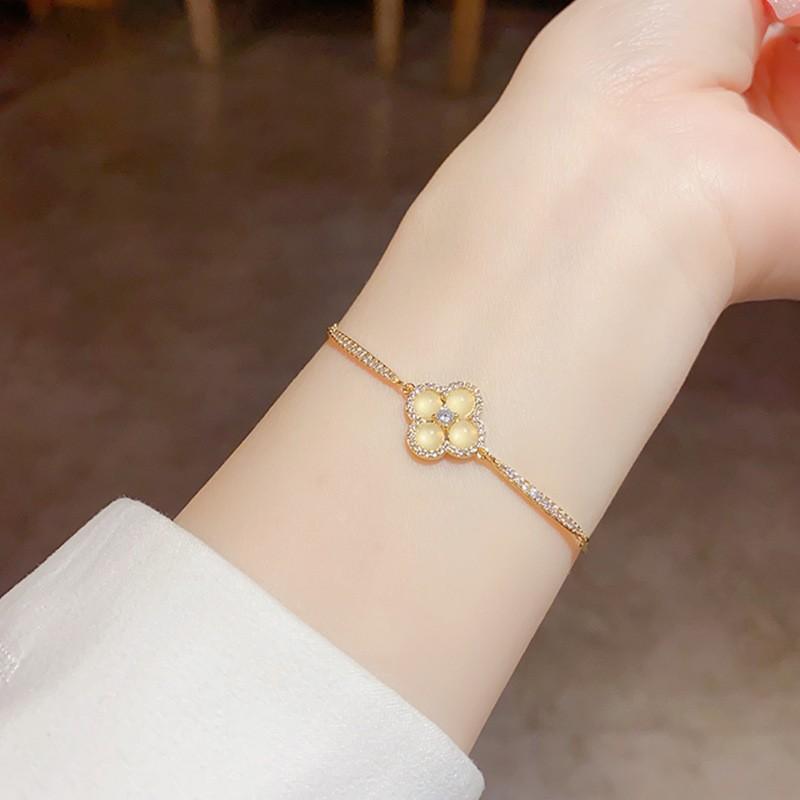 30-gold-zircon four-leaf flower bracelet (thick gold plating)