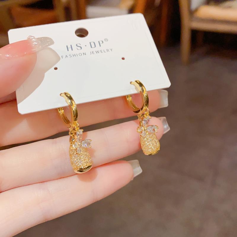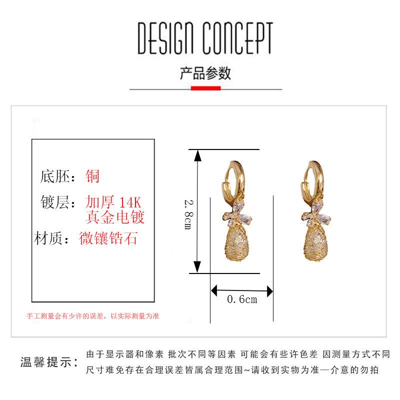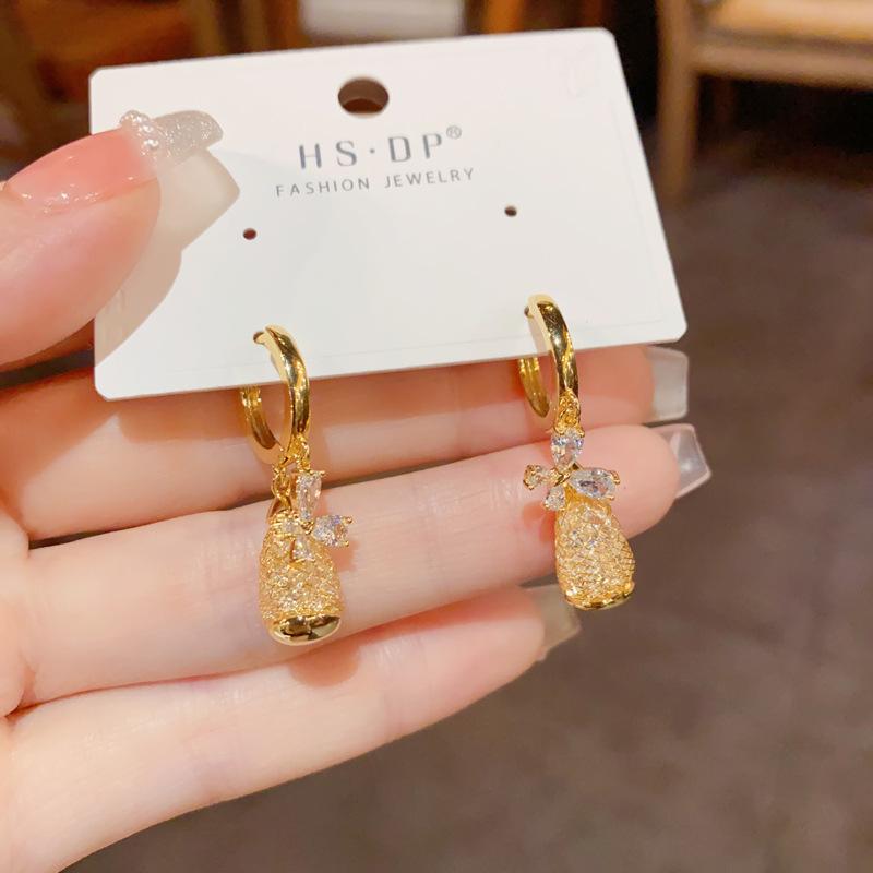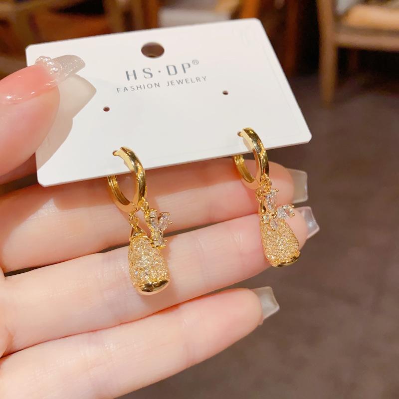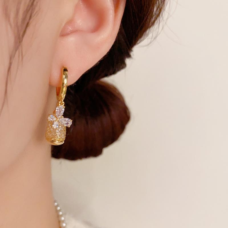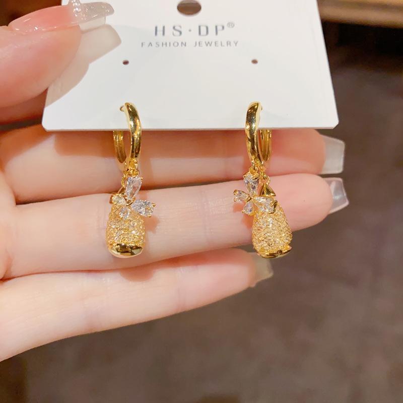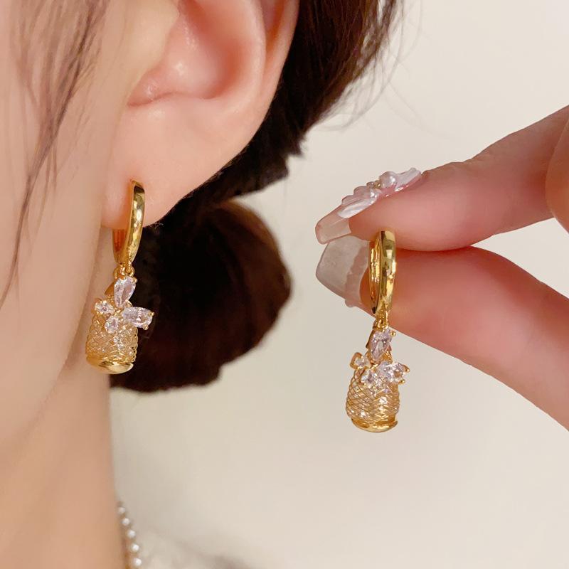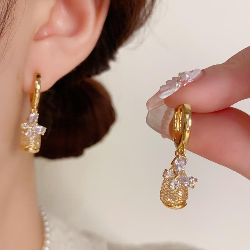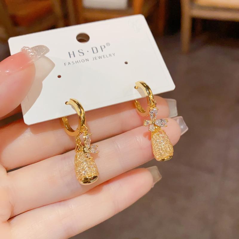 Zircon butterfly metal drop-shaped ear buckle (thick gold plating)