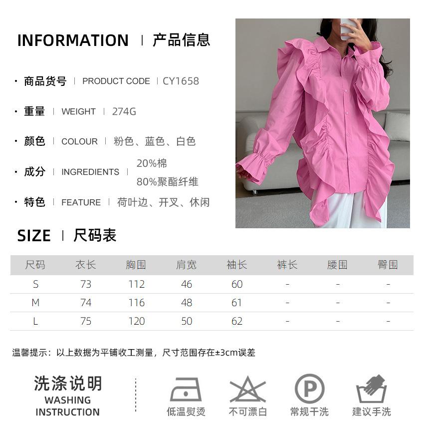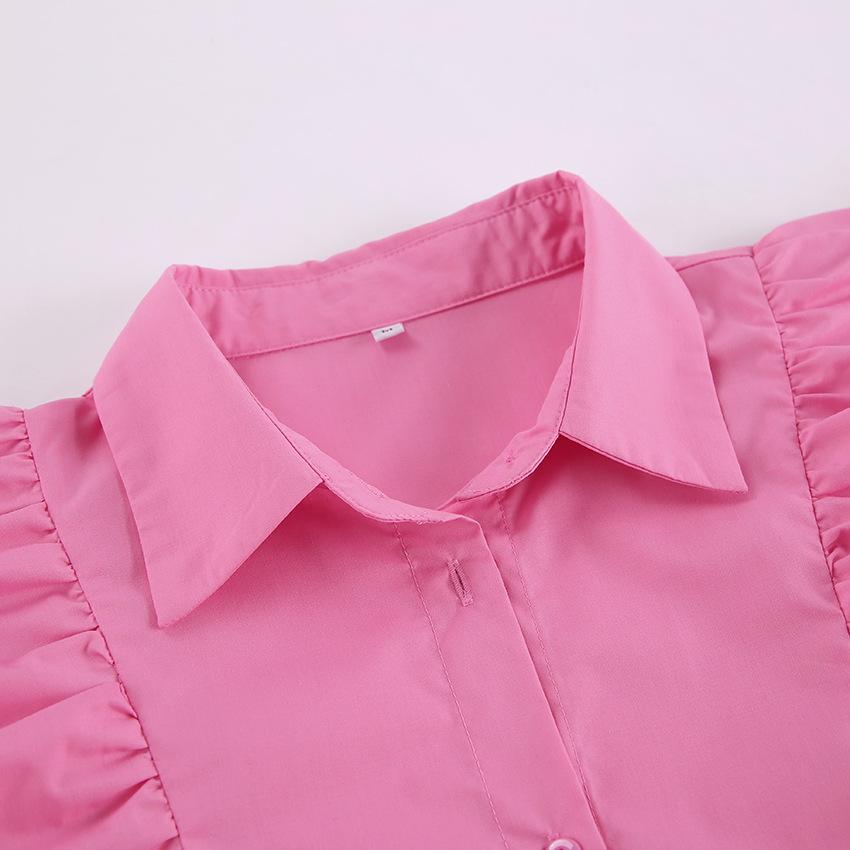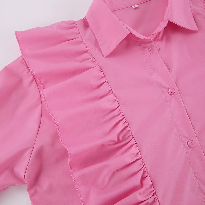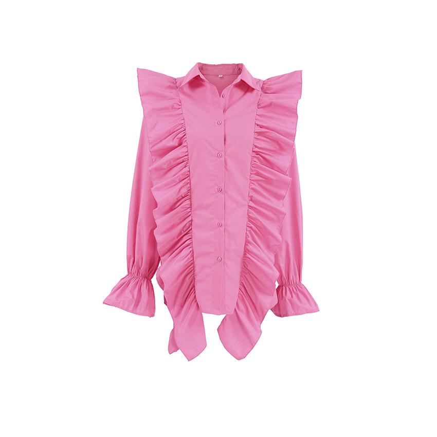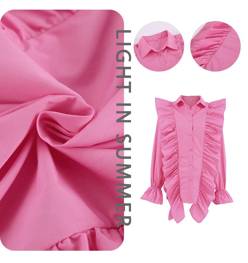 Camisa de manga larga con volantes de verano y otoño 2024, diseño moderno y elegante, informal, combinable, ideal para viajar a Europa y América.