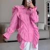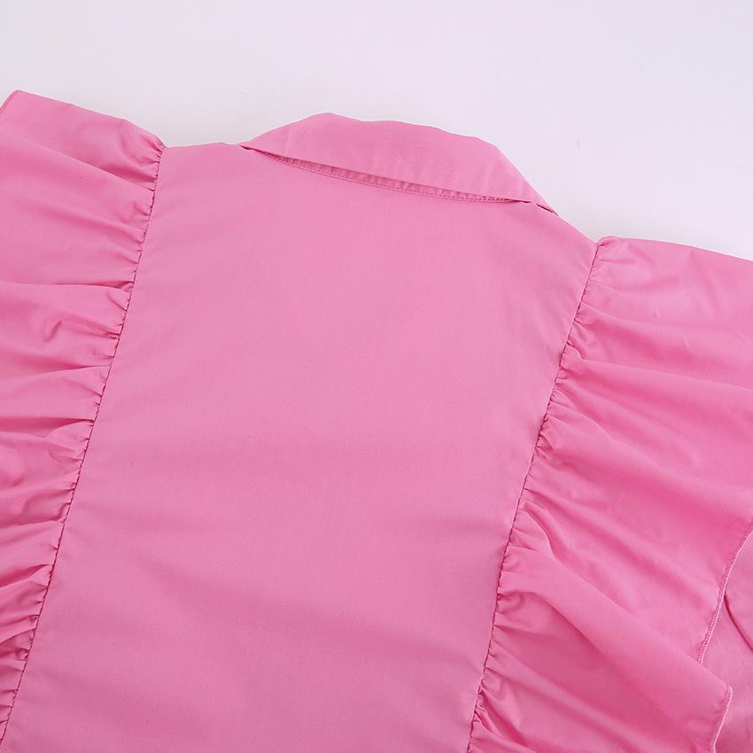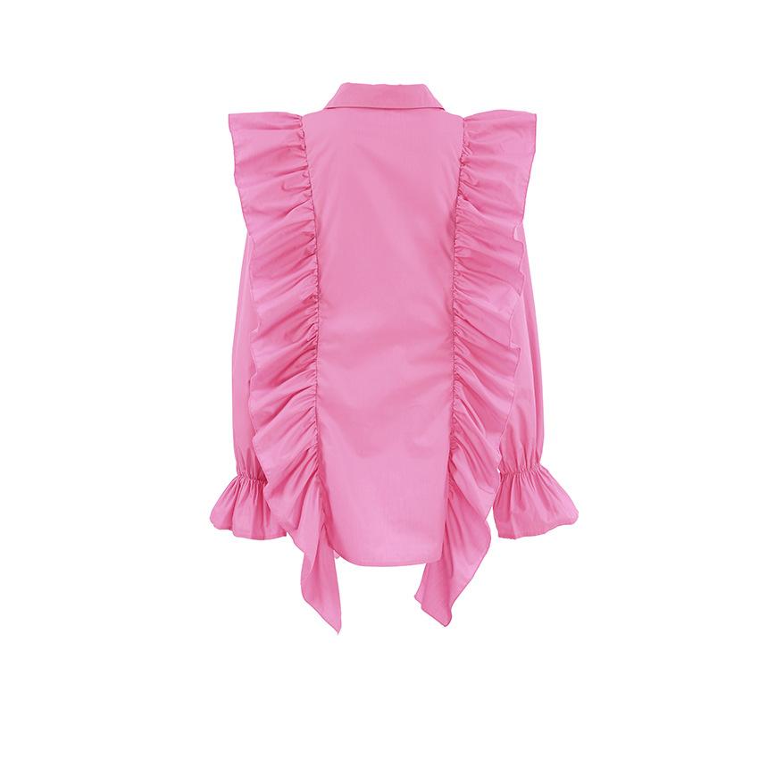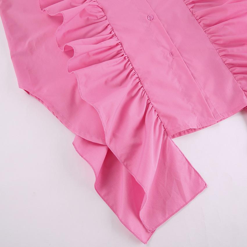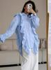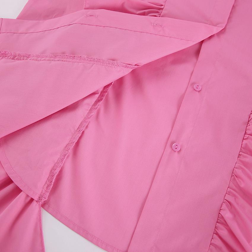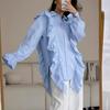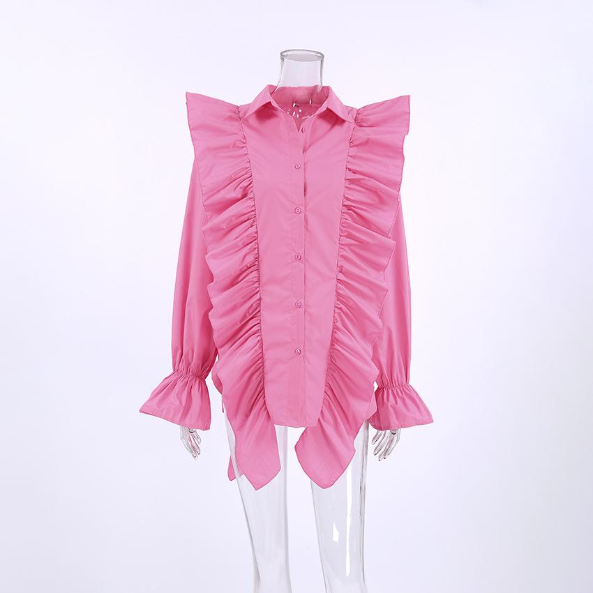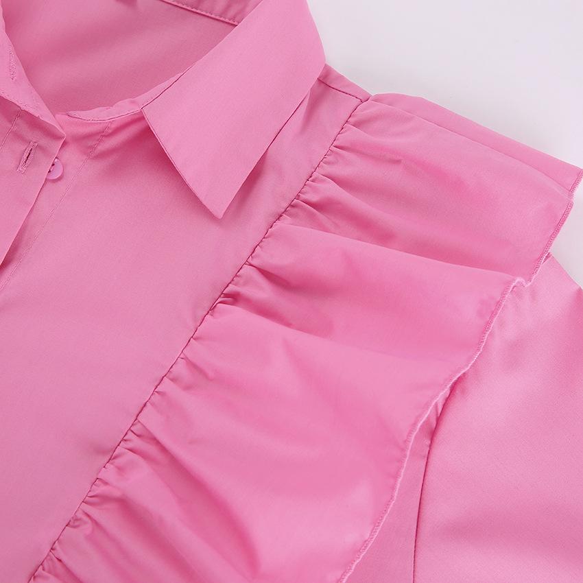 Camisa de manga larga con volantes de verano y otoño 2024, diseño moderno y elegante, informal, combinable, ideal para viajar a Europa y América.