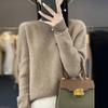 Suéter de Lana Listo para Usar de Una Línea para Mujer, Suéter Ajustado, Abrigo, Otoño e Invierno, Básico, Cuello Redondo, Manga Larga, Top Holgado, Cárdigan Tejido