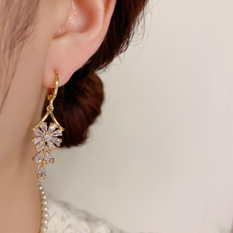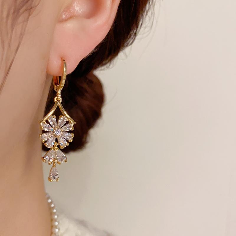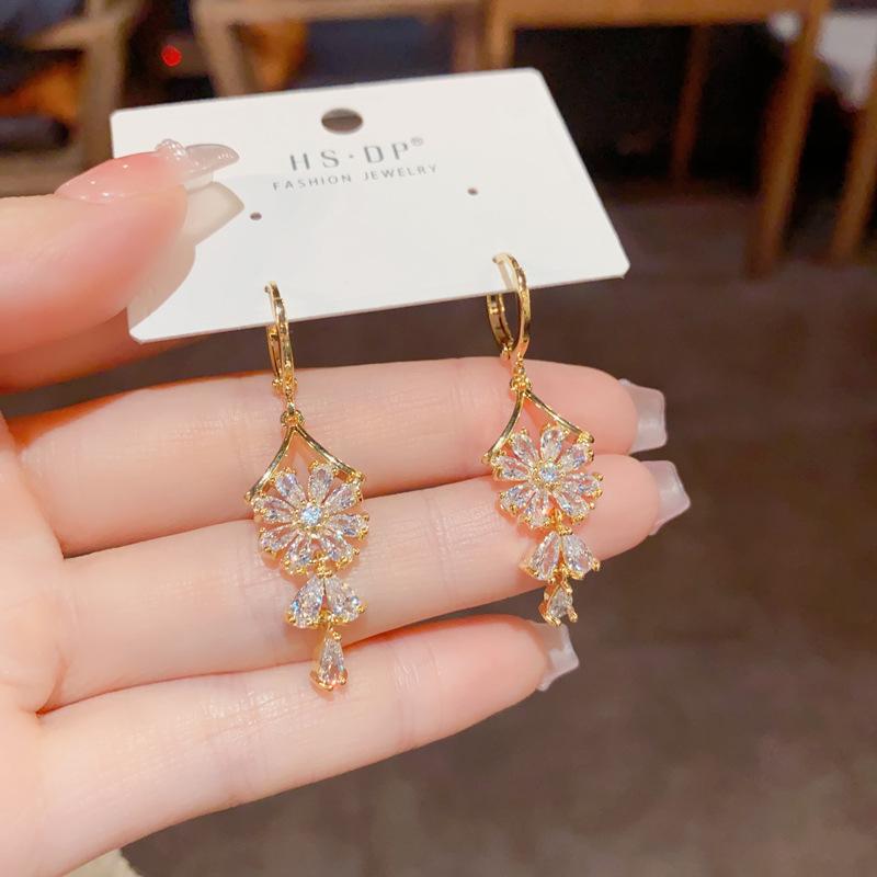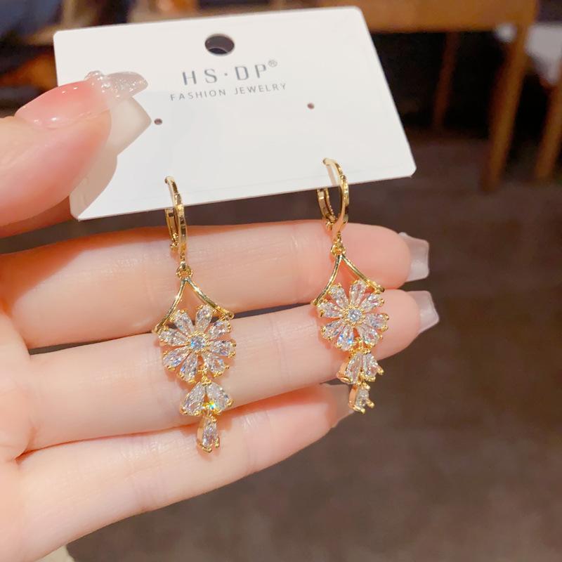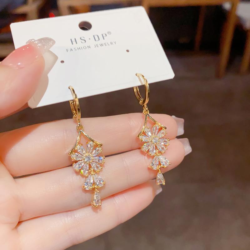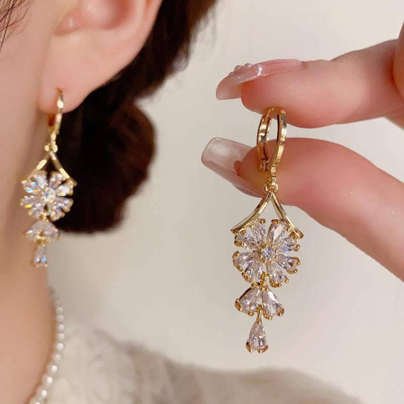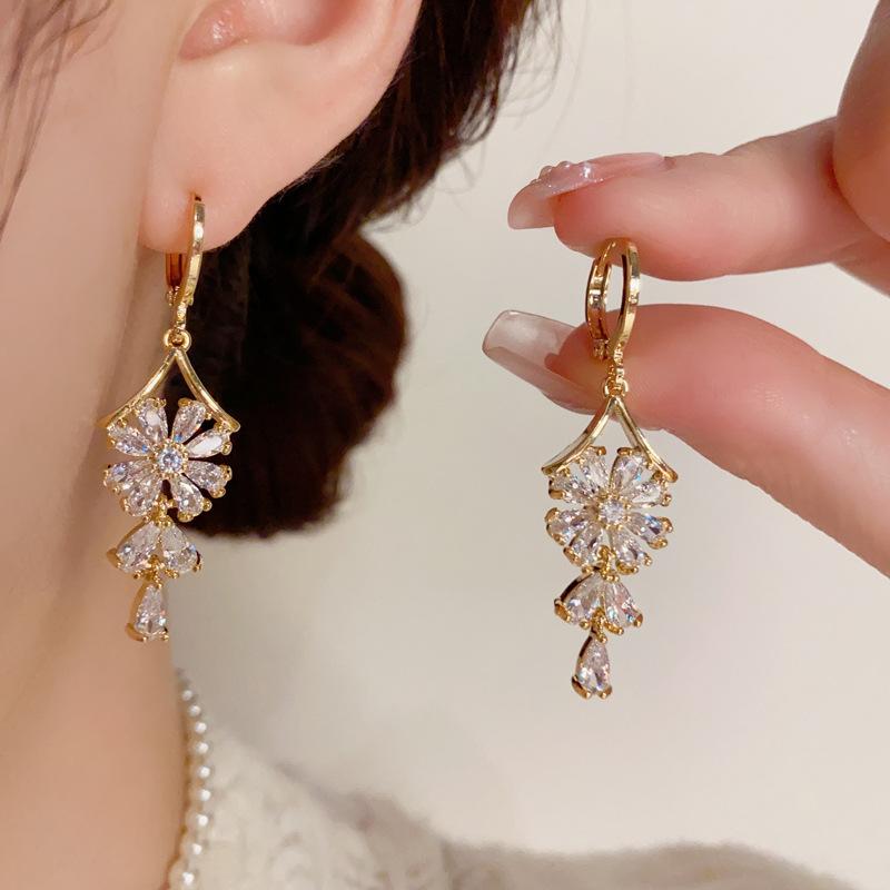 Pendientes de verano nuevos, exquisitos, de moda, superbrillantes, con microincrustaciones de circonita, con borlas y hebillas para las orejas, ligeros, de lujo, exagerados, al por mayor