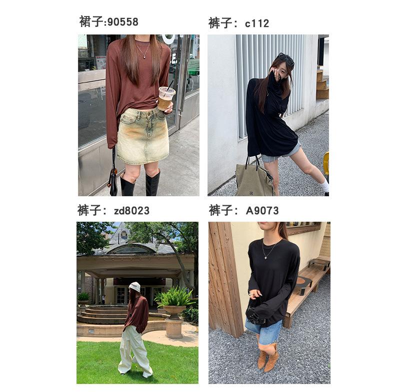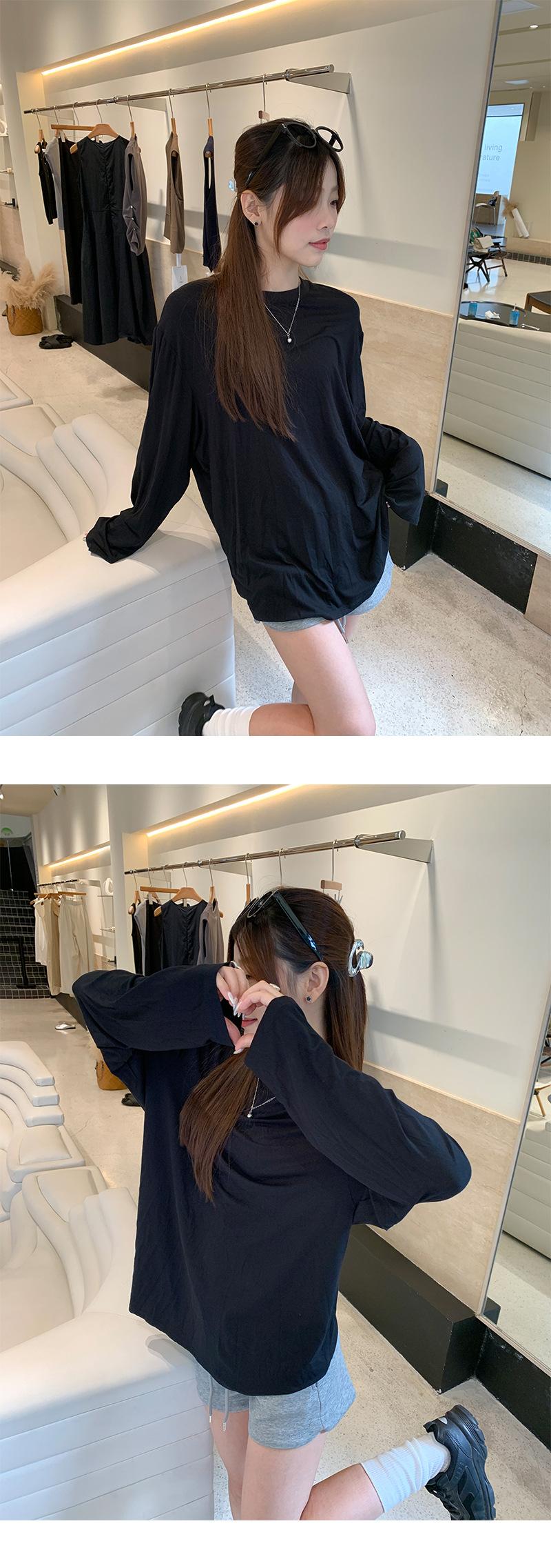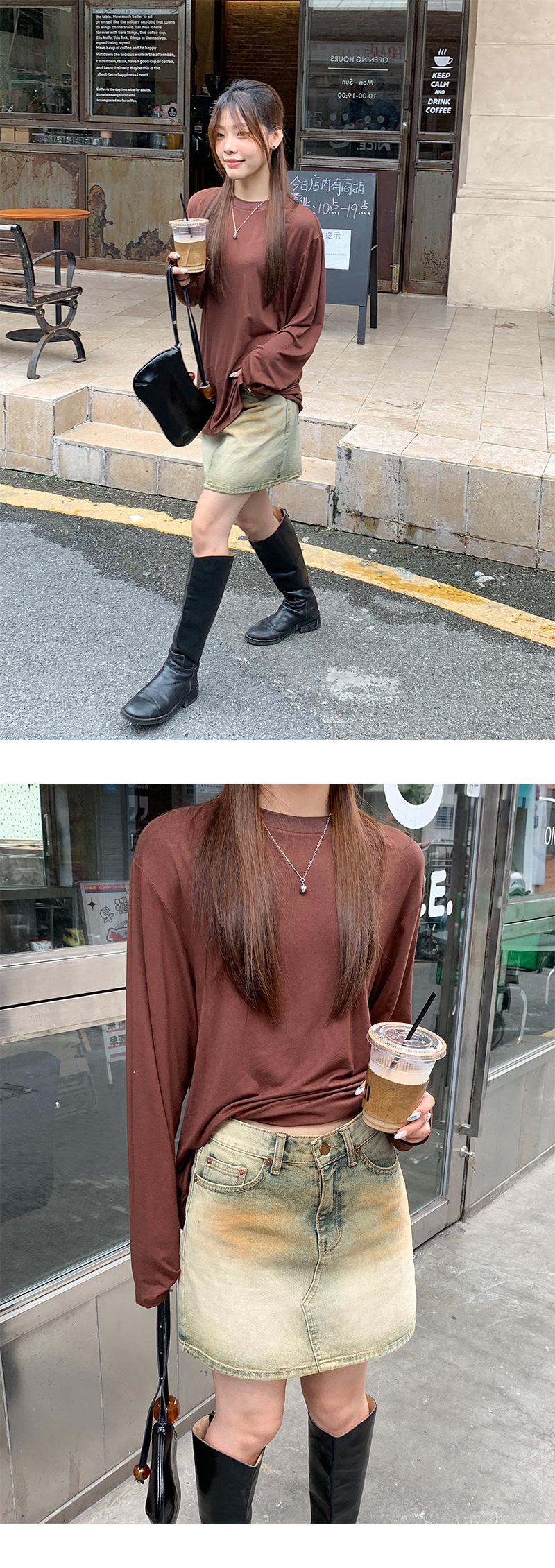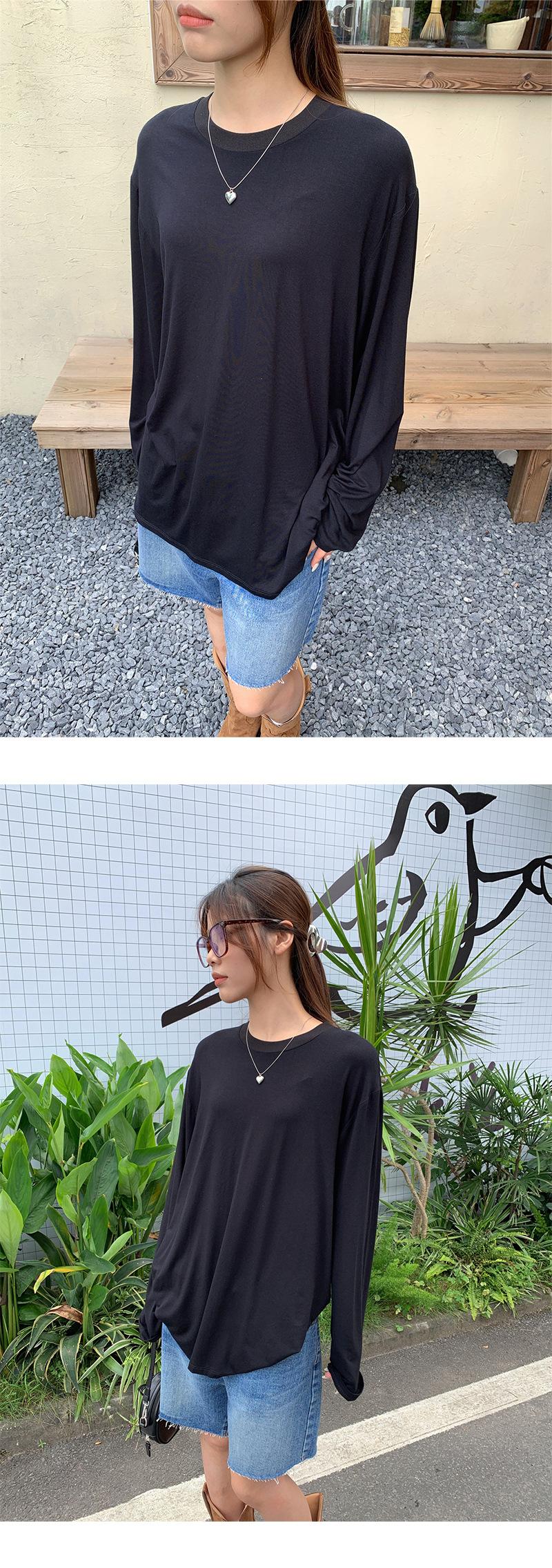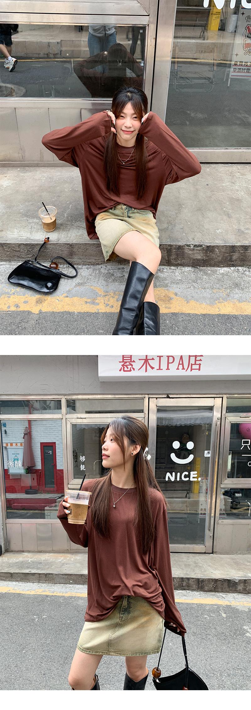 Yuyi Nuevo Otoño 2024 Ins Estilo Holgado Perezoso Top Mujer Cuello Redondo Color Puro Versátil Camiseta de Manga Larga Zd7077