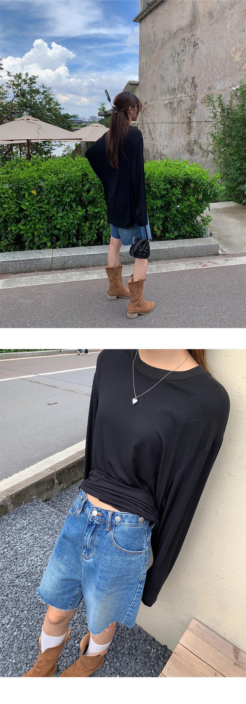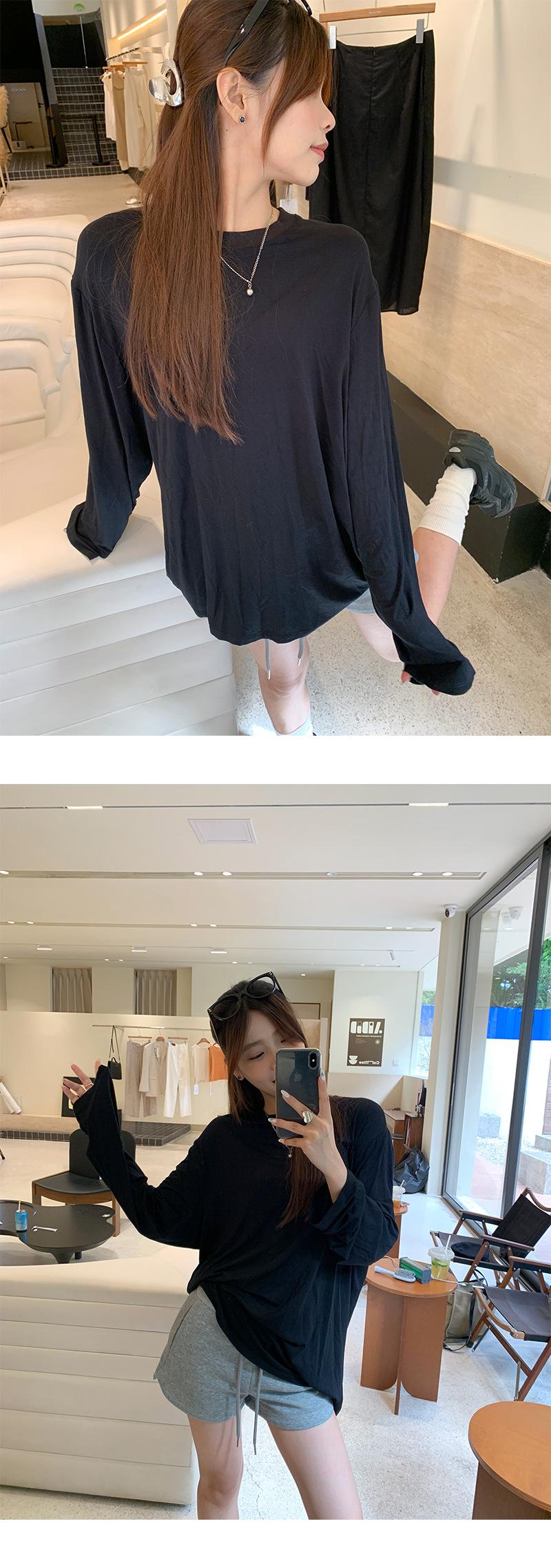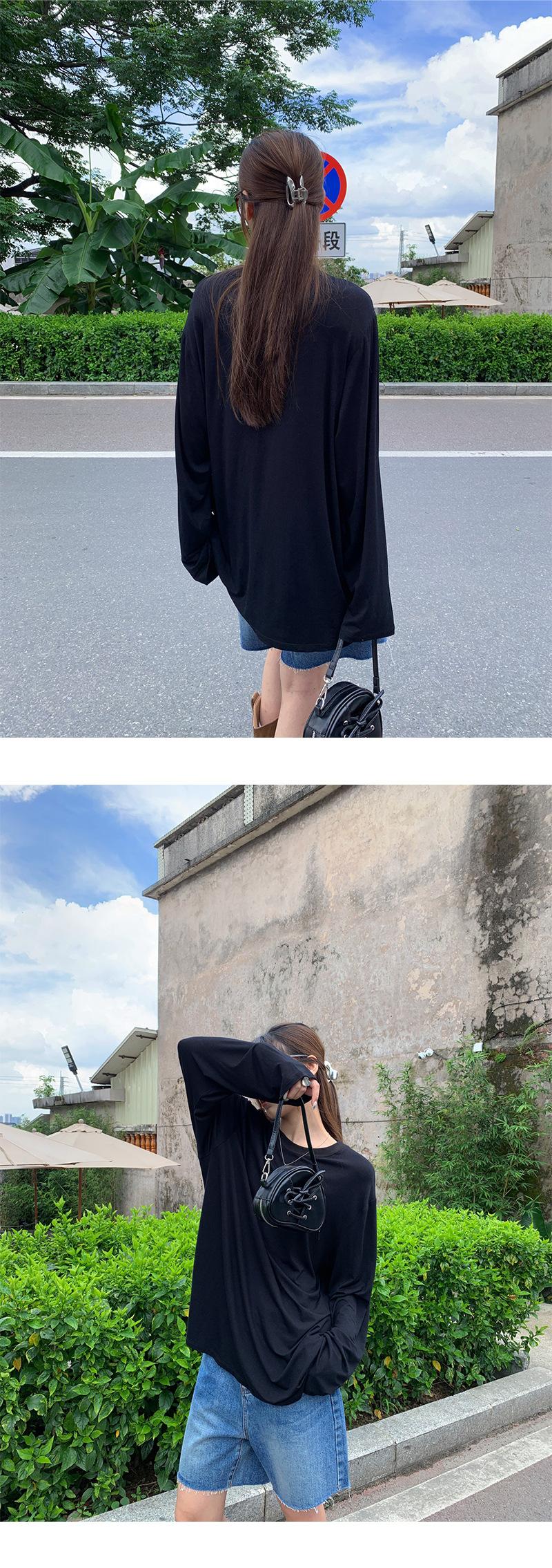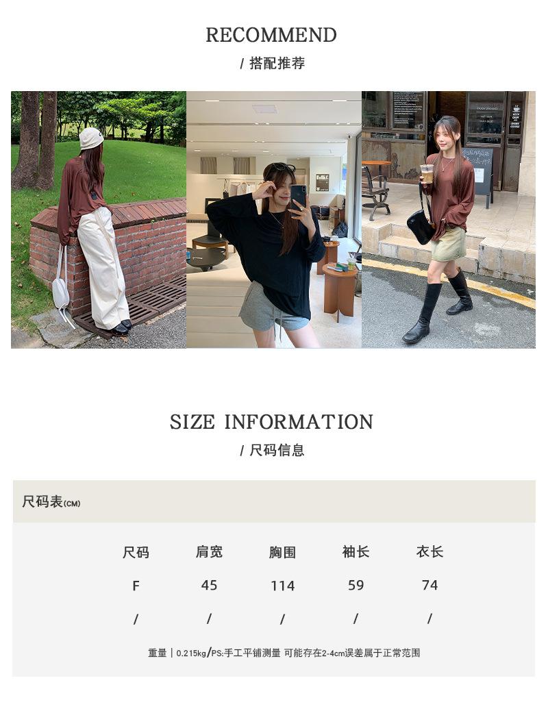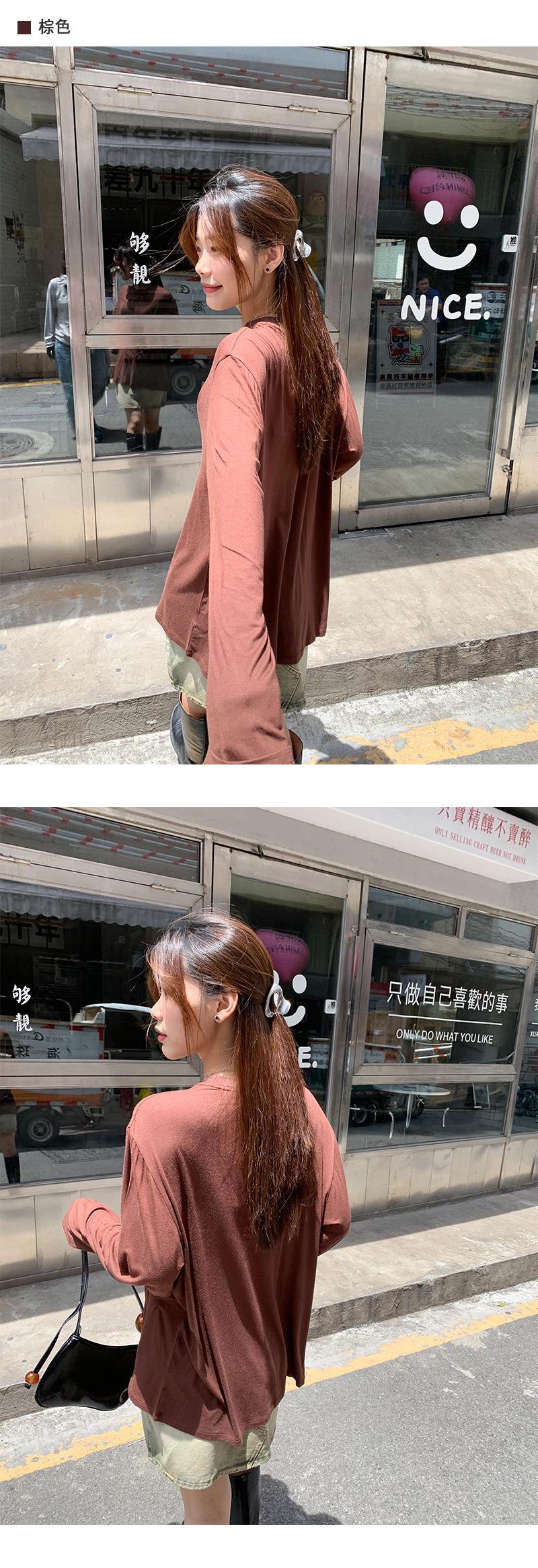 Yuyi Nuevo Otoño 2024 Ins Estilo Holgado Perezoso Top Mujer Cuello Redondo Color Puro Versátil Camiseta de Manga Larga Zd7077