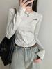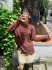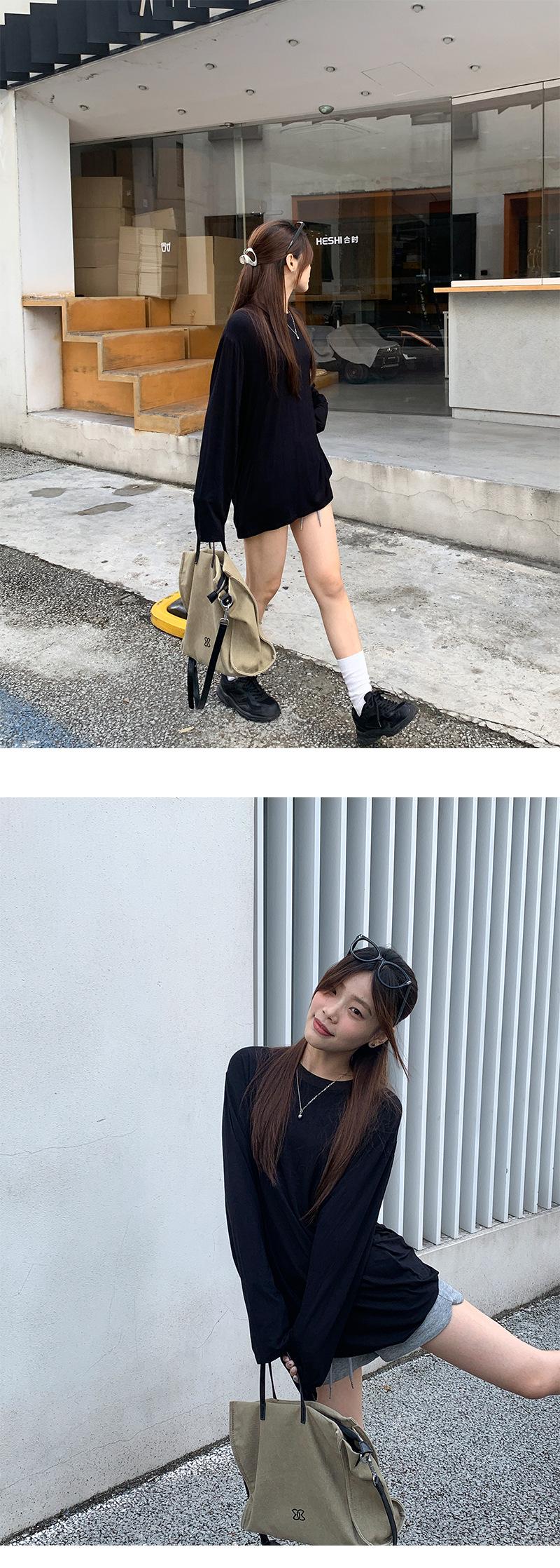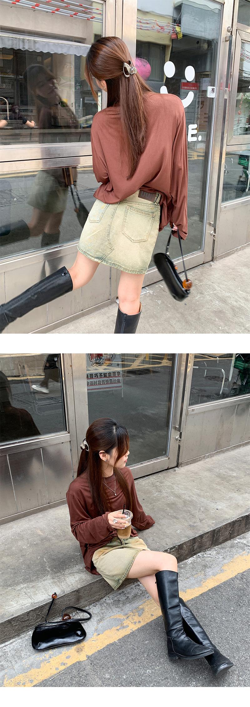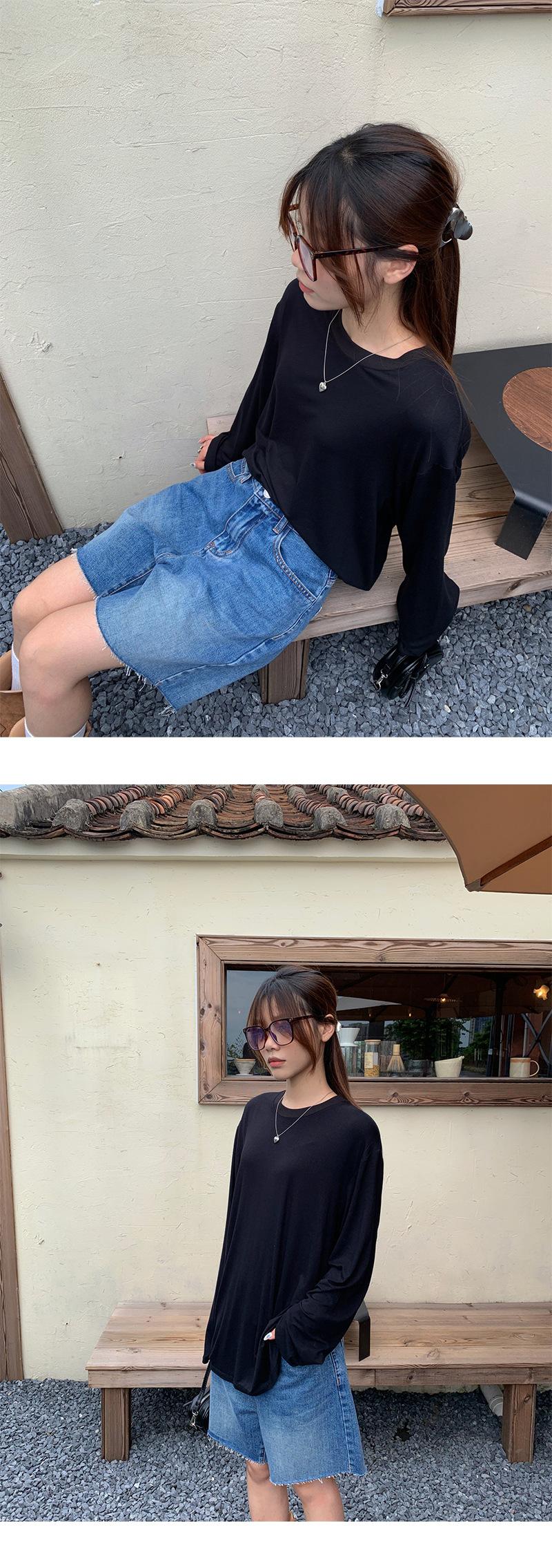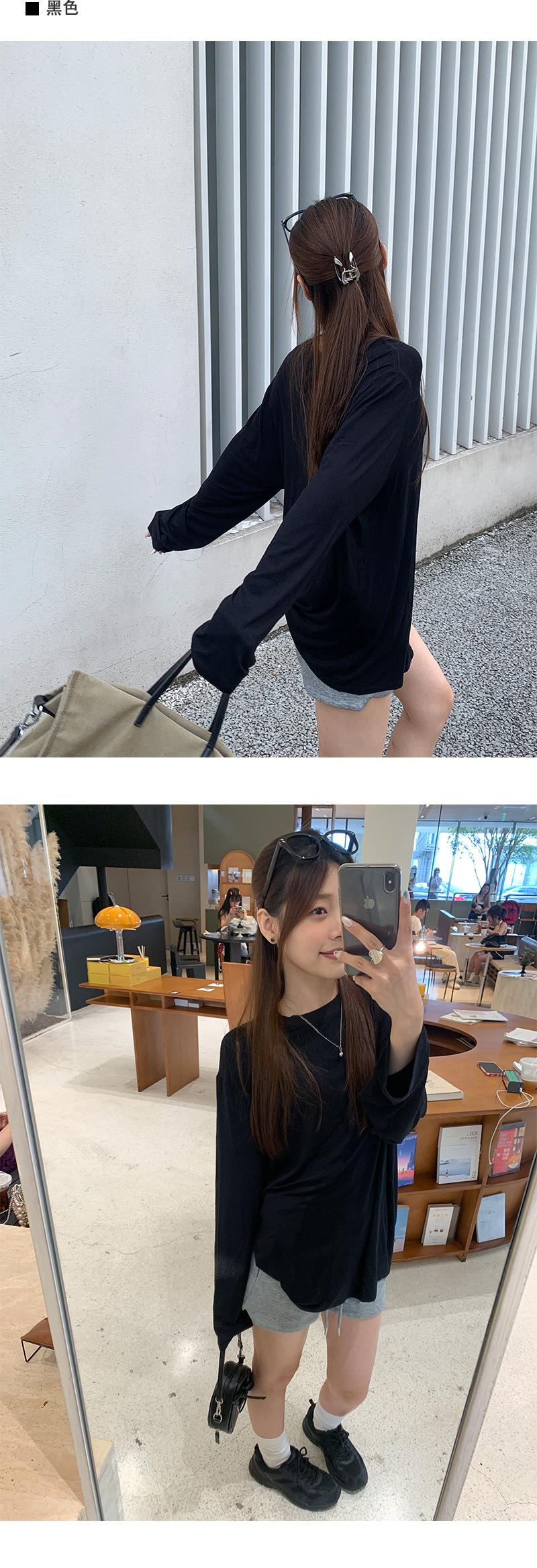 Yuyi Nuevo Otoño 2024 Ins Estilo Holgado Perezoso Top Mujer Cuello Redondo Color Puro Versátil Camiseta de Manga Larga Zd7077