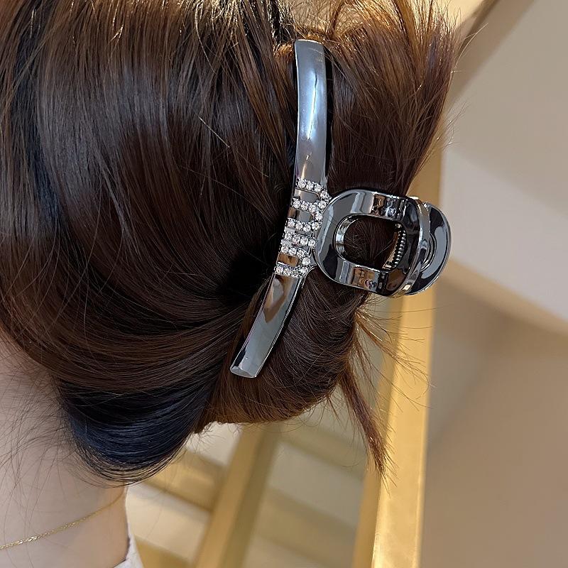 Horquilla de metal con letras y diamantes de imitación Advanced Sense para mujer, pinza de tiburón de varios tamaños, pinza para el pelo con forma de disco en la parte trasera