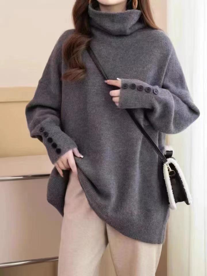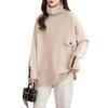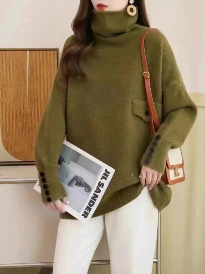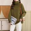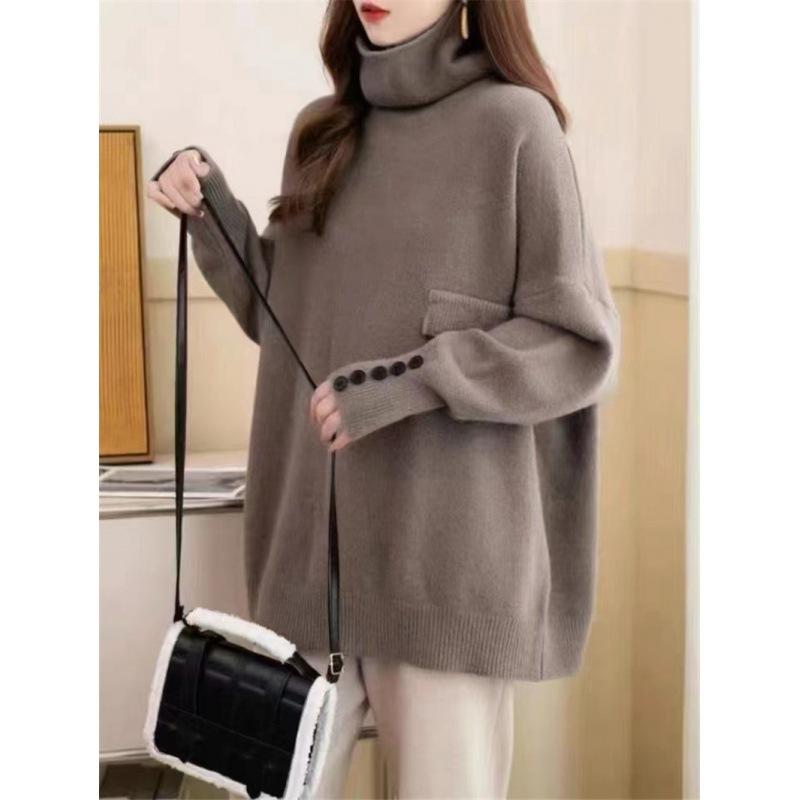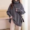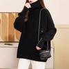 2025 Nuevo Otoño e Invierno Versión Grande Cuello Alto Suelto Camiseta Básica Suéter Tejido de Punto de Largo Medio para Mujer Color Puro Cuello Pile