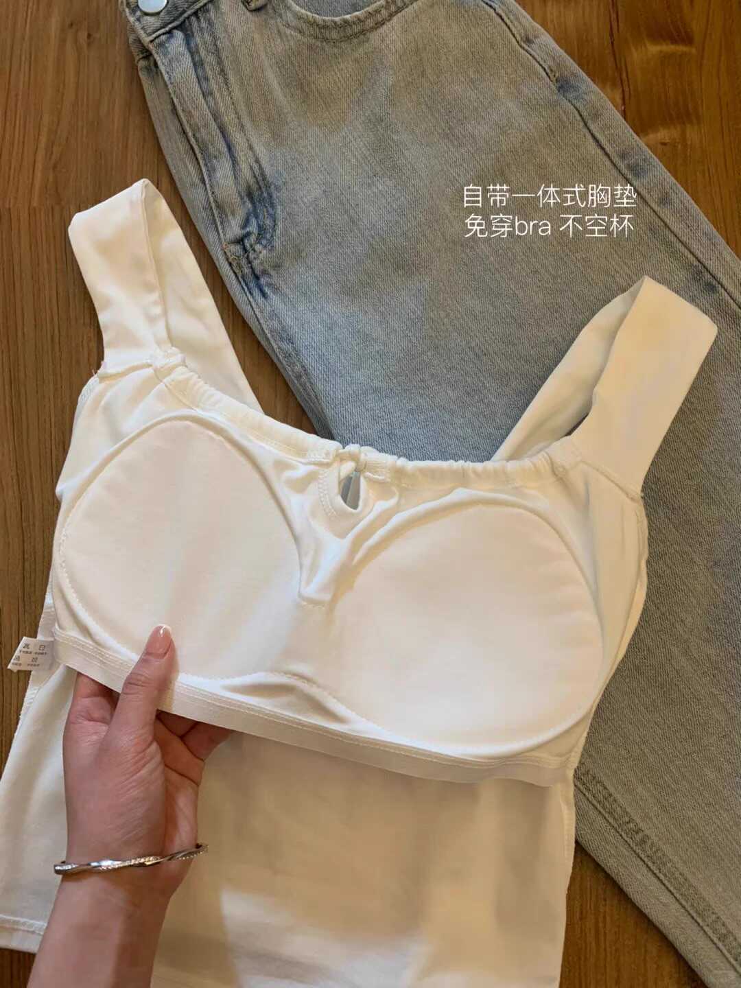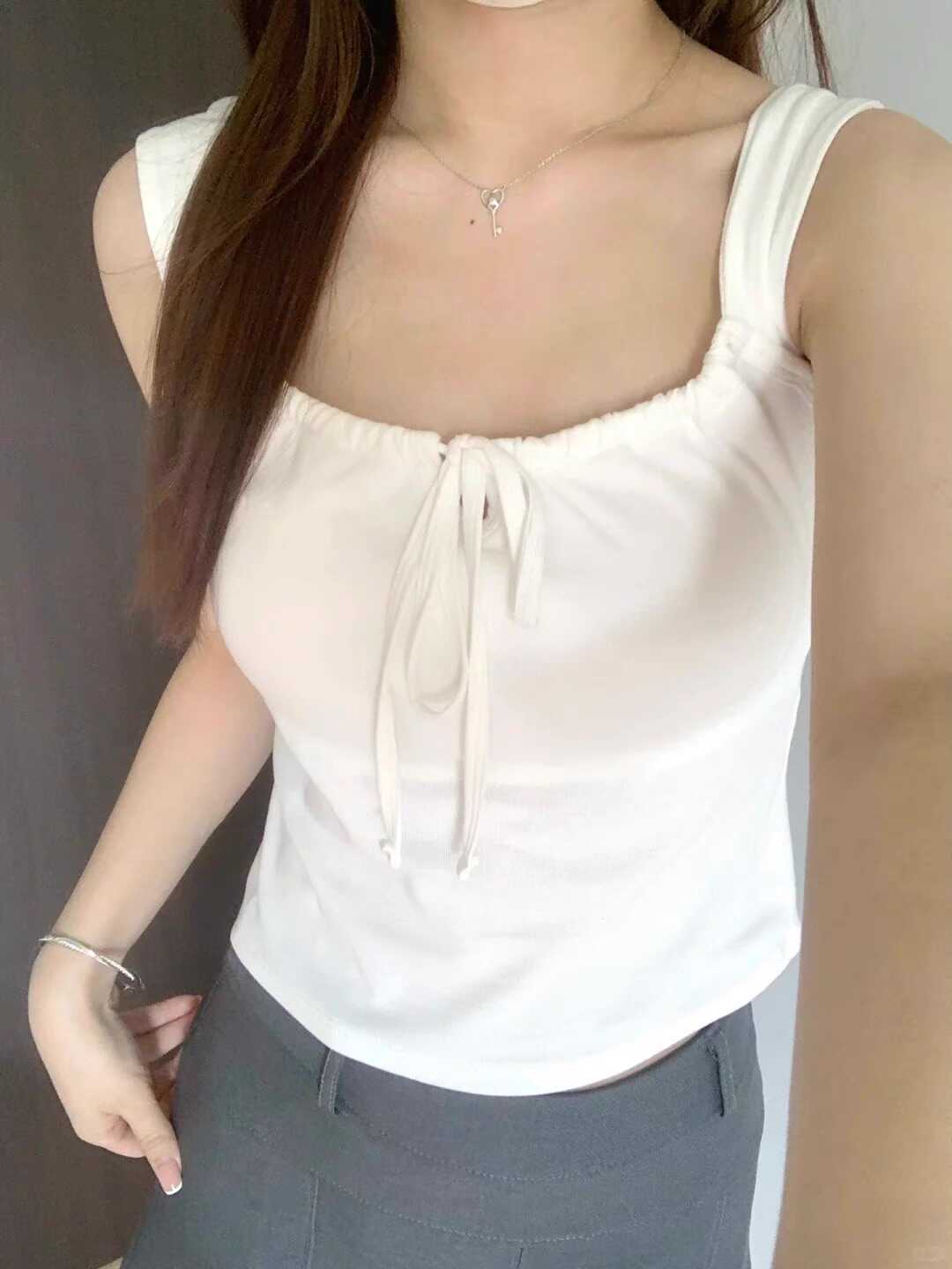 Camisola blanca con almohadilla para el pecho, prenda interior de verano para mujer, diseño de nicho, top corto ajustado sin mangas para mujer