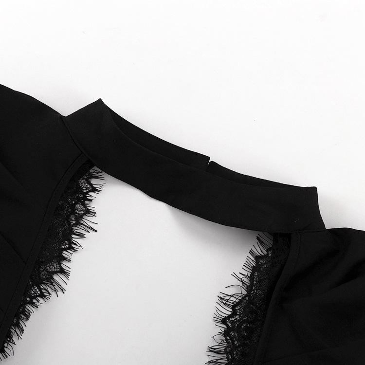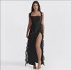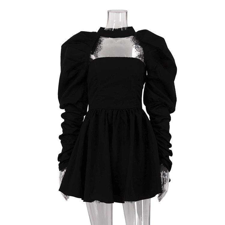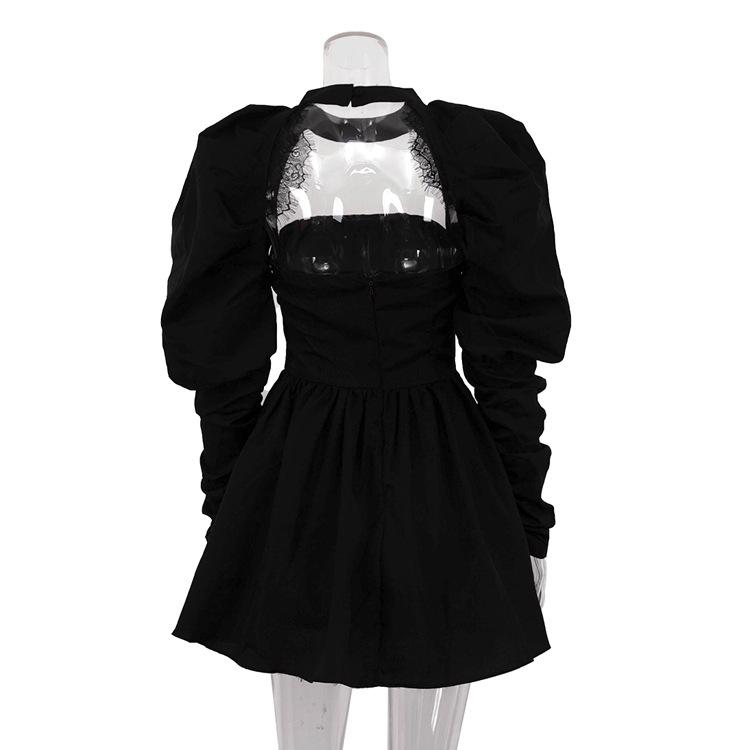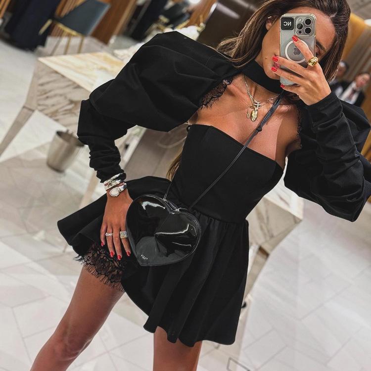 Vestido elegante sin tirantes para mujer, de alta gama, sexy, con espalda descubierta, manga larga, corte A, color negro, 2024