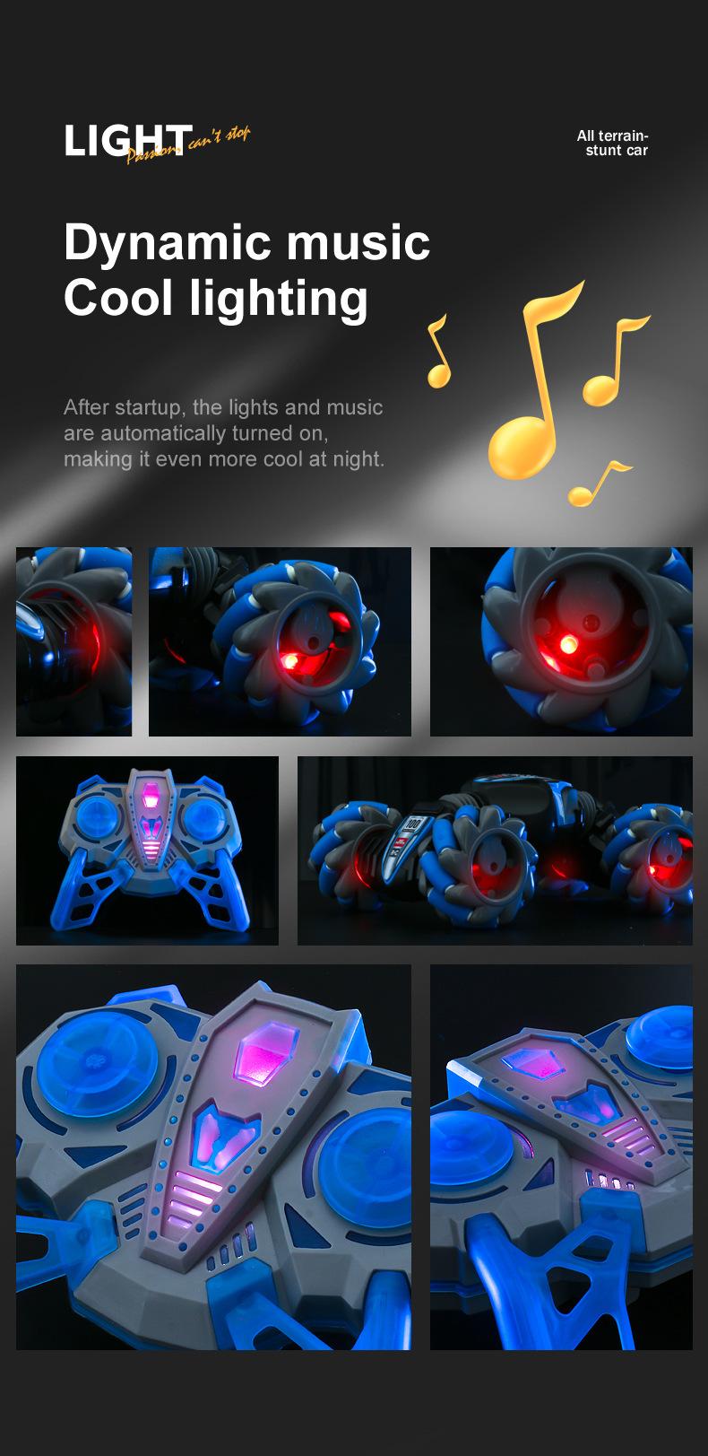 Gesture sensor stunt mini twist transformation, rechargeable battery, with colorful gradient light and music, ...