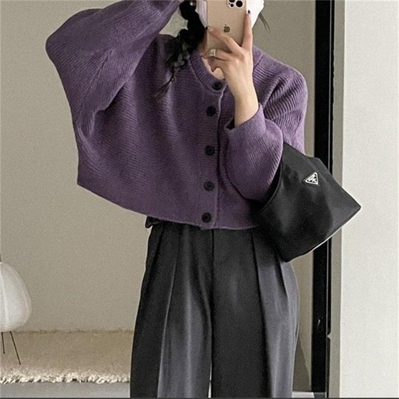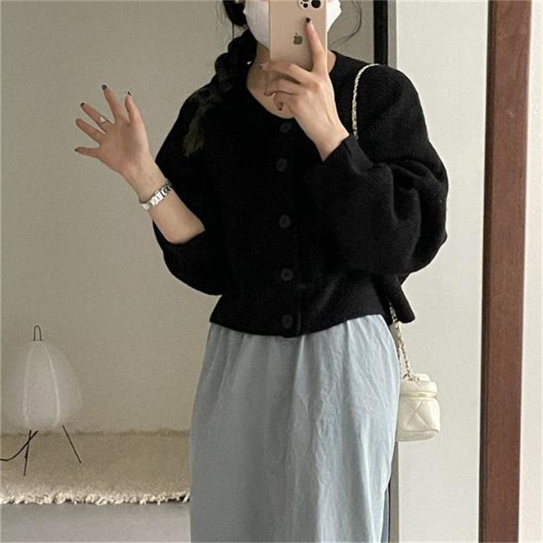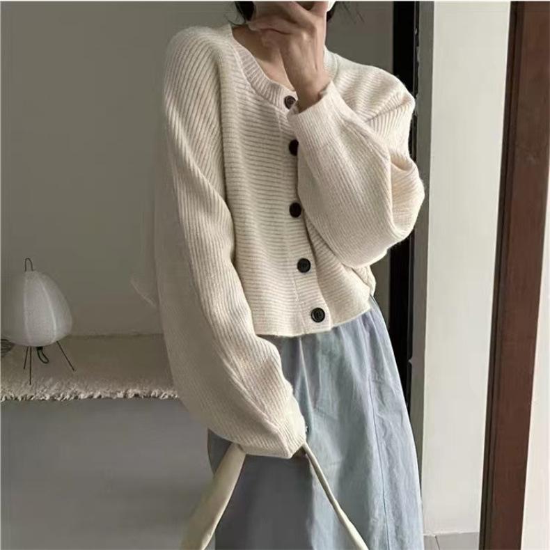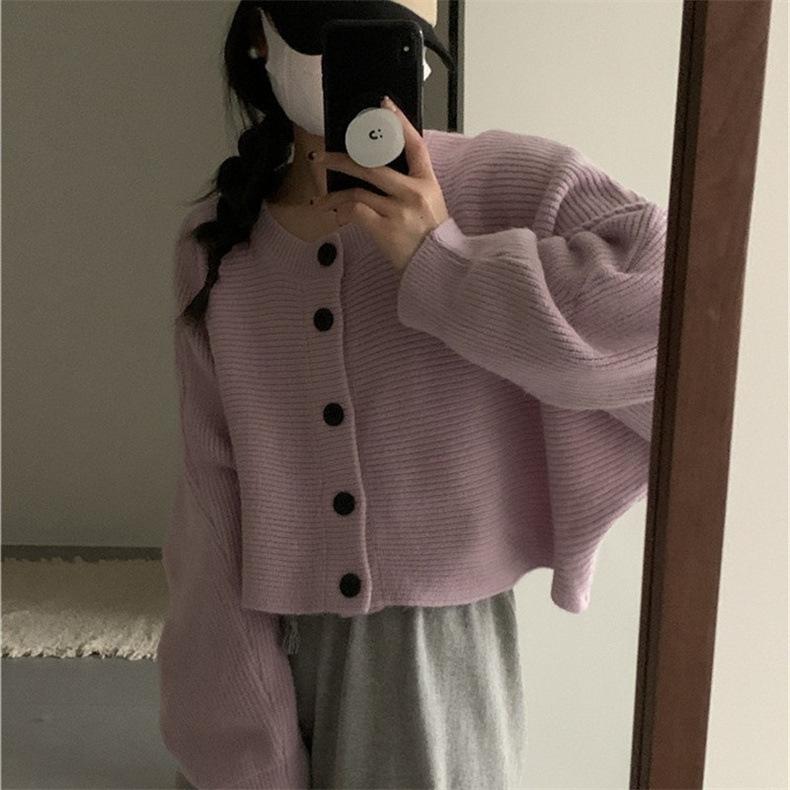 Cárdigan de punto holgado de estilo coreano con mangas dolman para mujer, nuevo abrigo de otoño con cuello redondo, botonadura sencilla, suave y encerado.