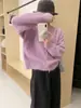 Suéter abrigo de estilo coreano, estilo suave, color sólido, cuello redondo, para mujer, otoño e invierno, holgado, suave, ceroso, leche FUFU, cárdigan de punto para mujer
