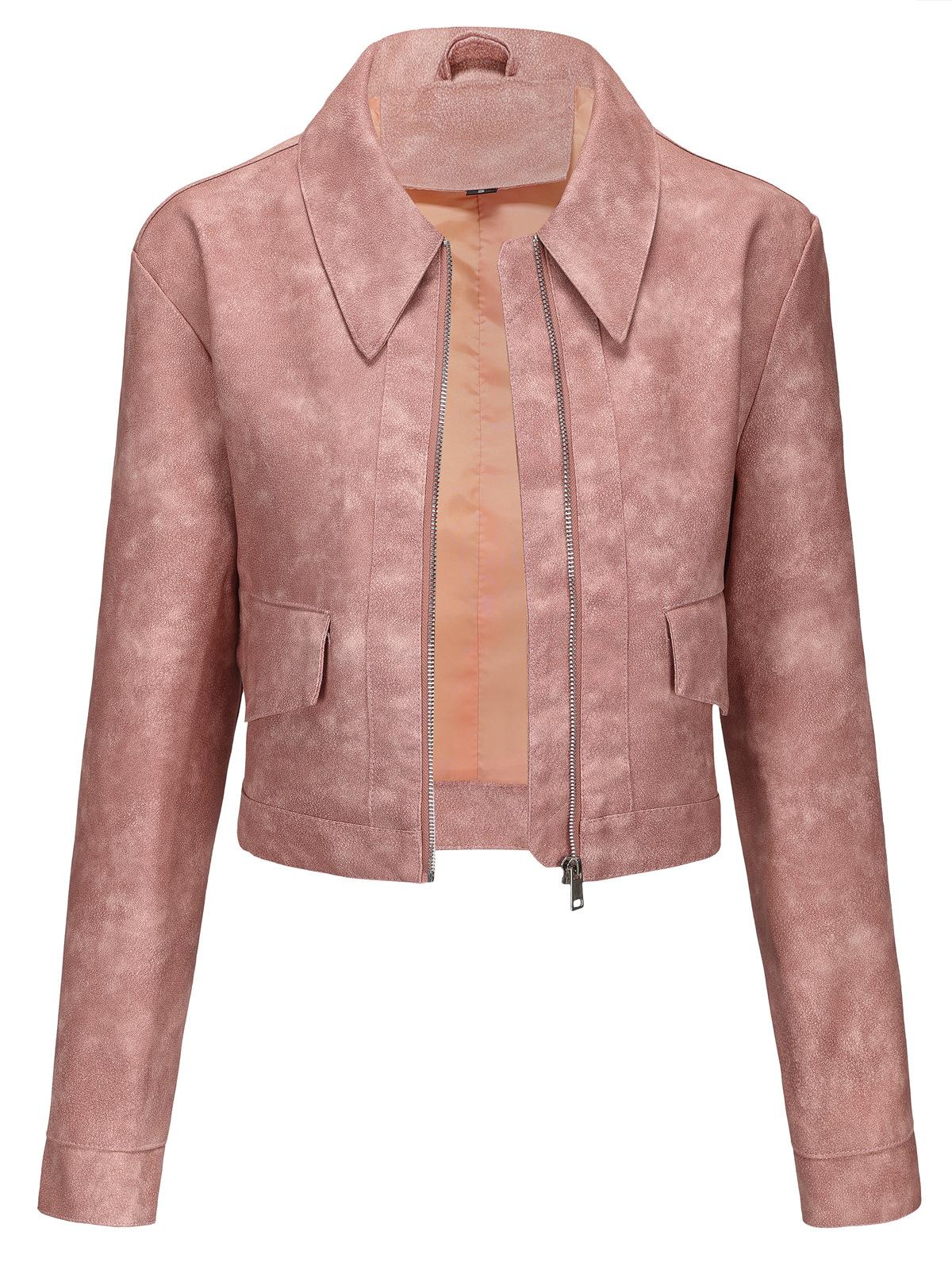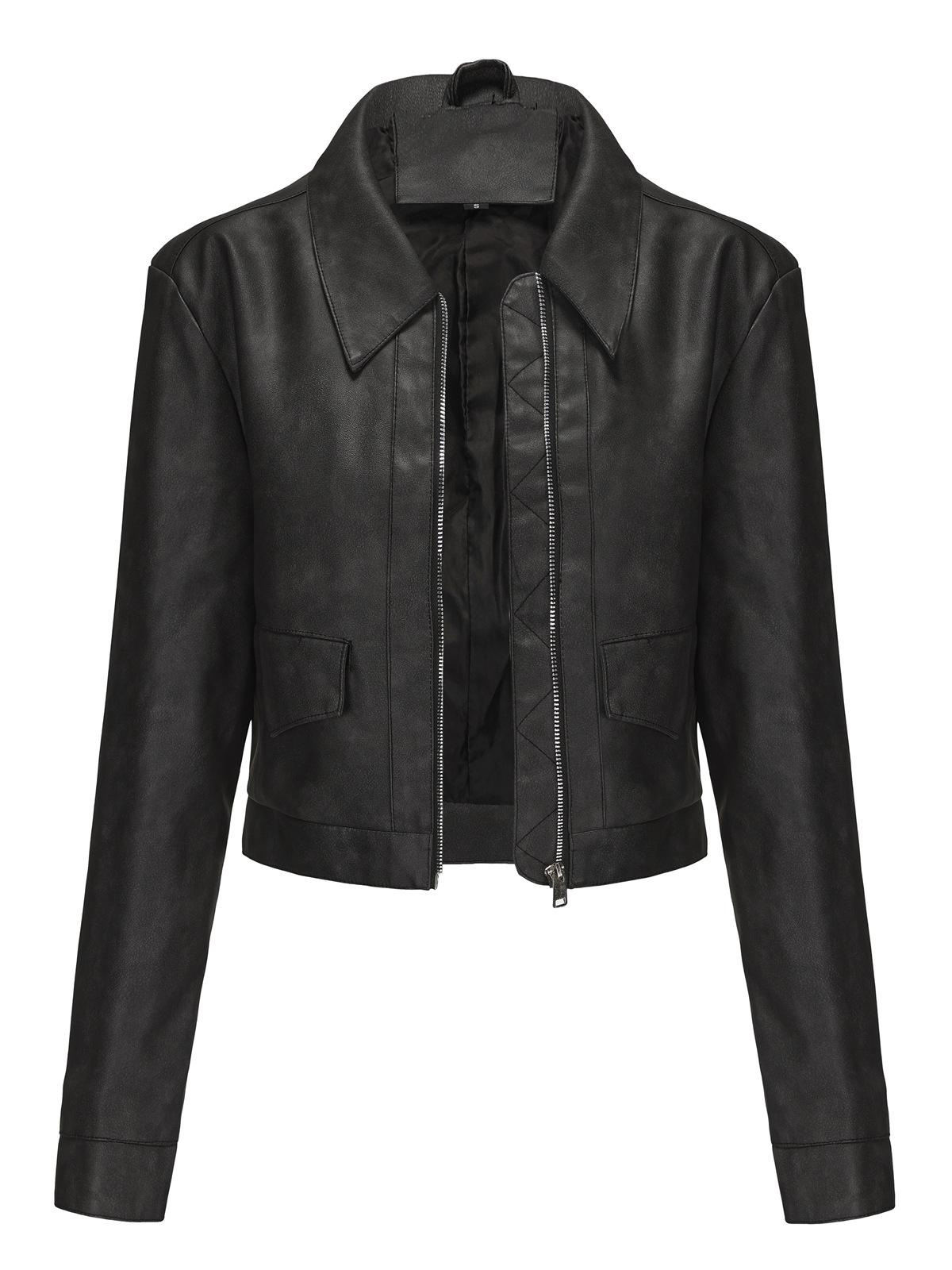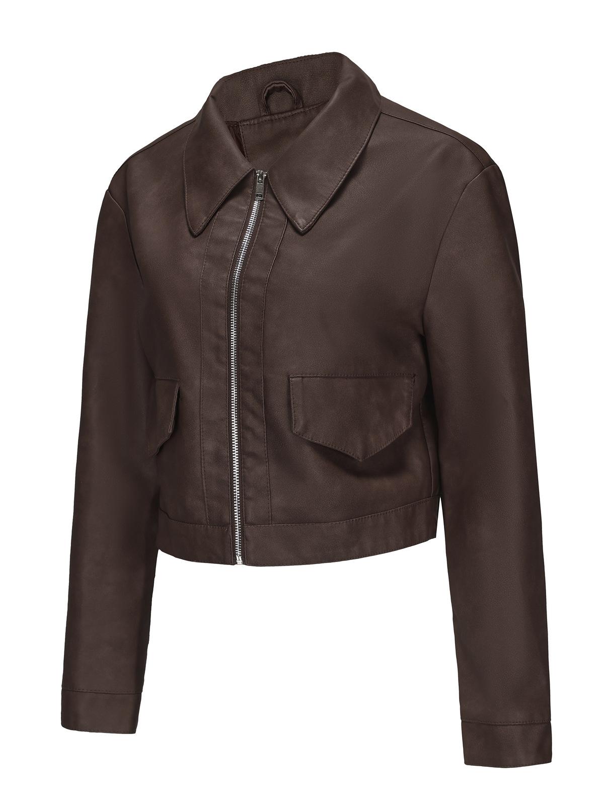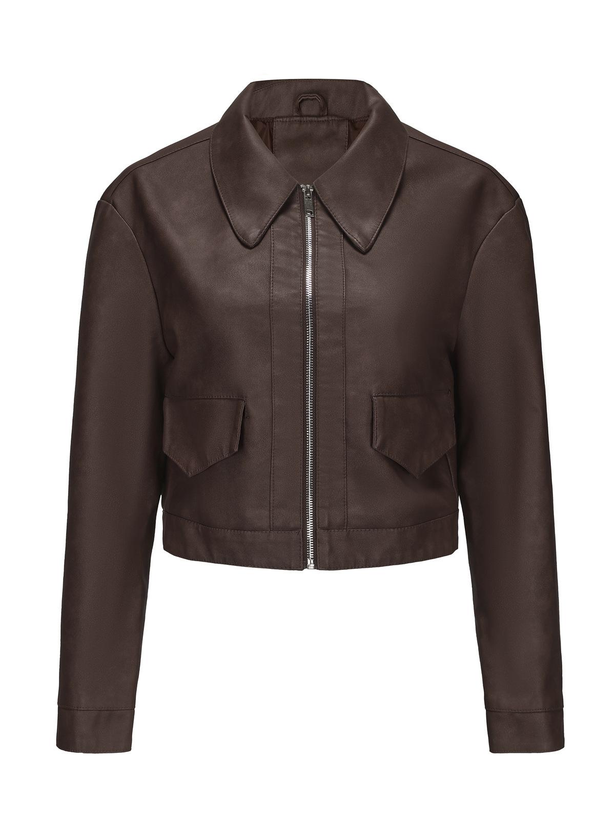 Chaqueta de cuero fino de manga larga para mujer, informal, de moda europea y americana, primavera y otoño de 2024, Amazon
