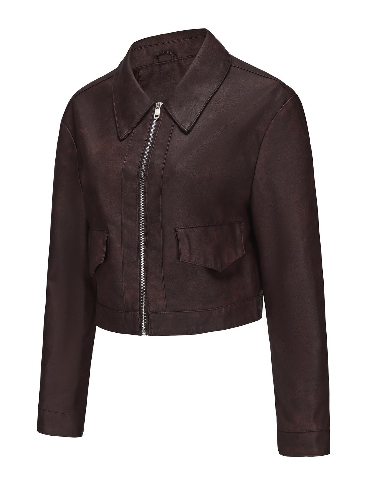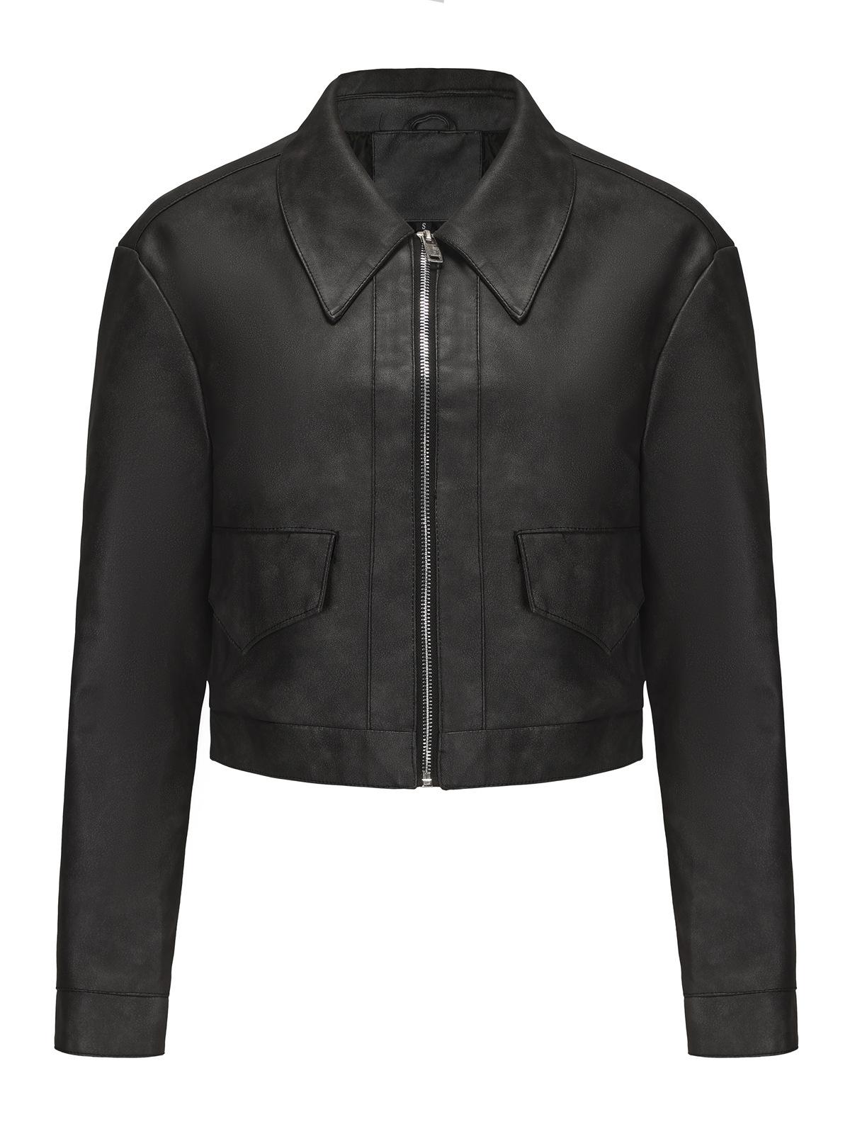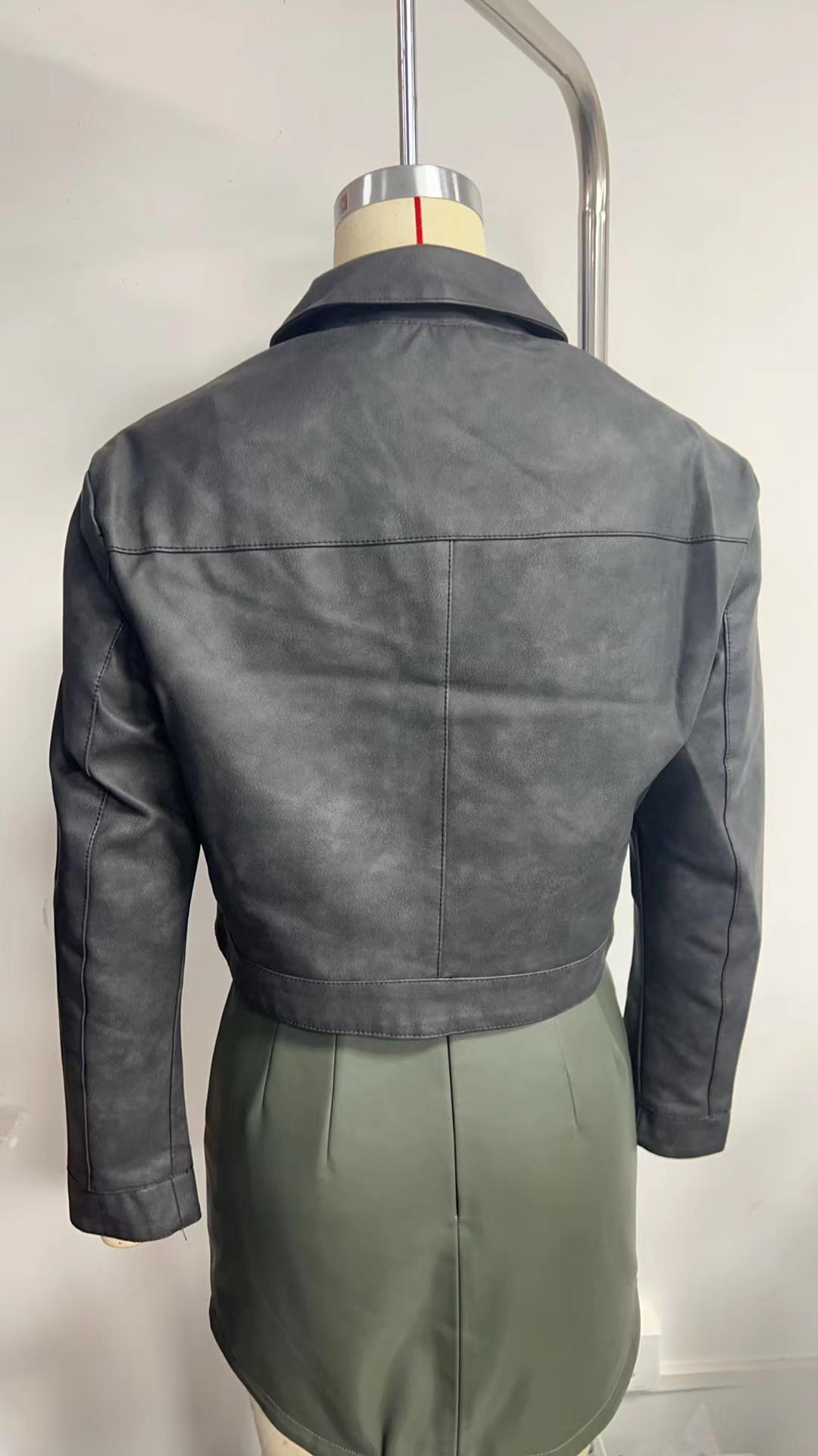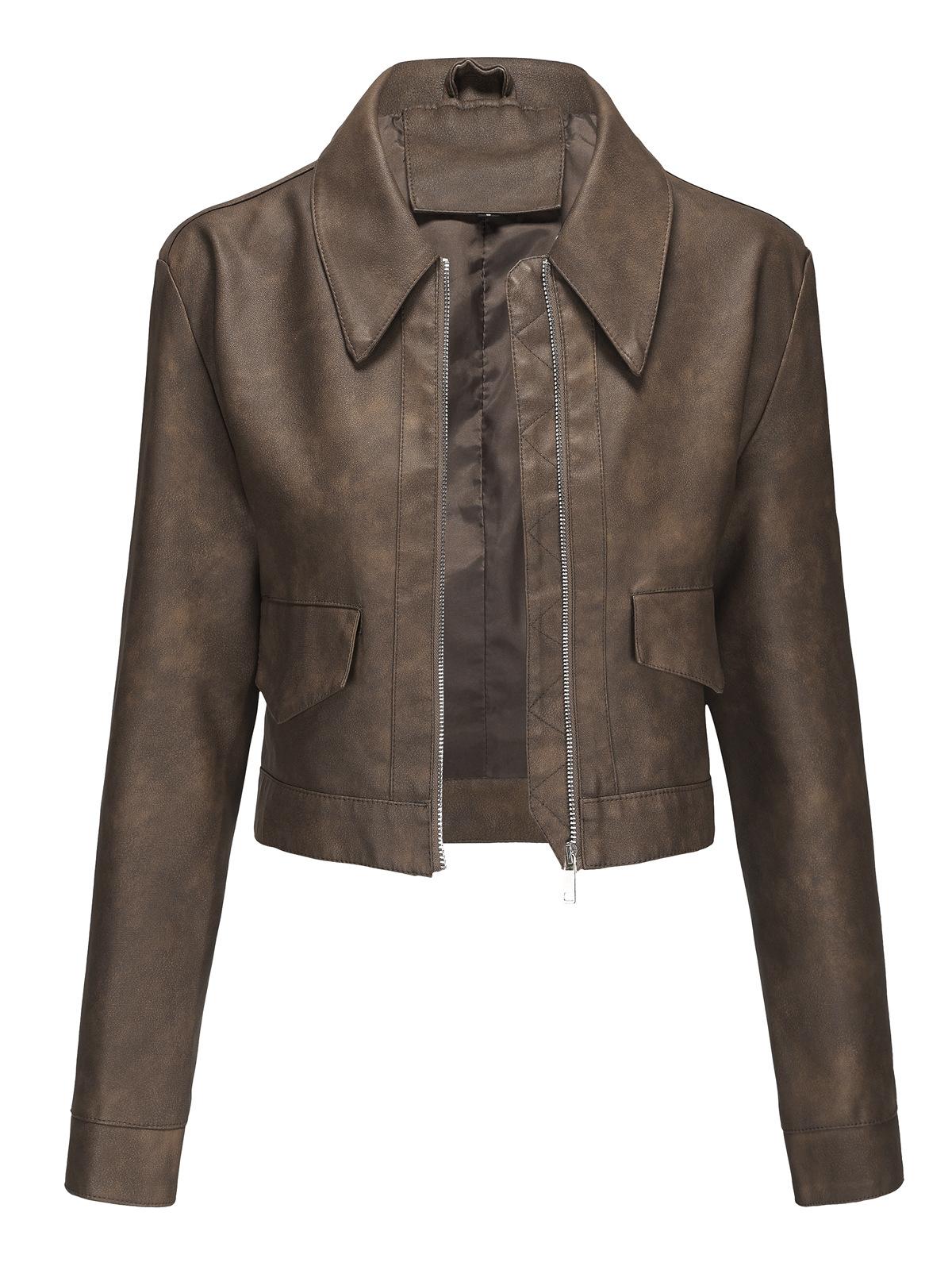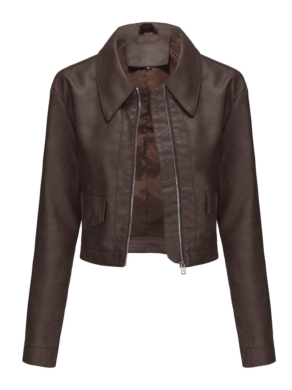 Chaqueta de cuero fino de manga larga para mujer, informal, de moda europea y americana, primavera y otoño de 2024, Amazon