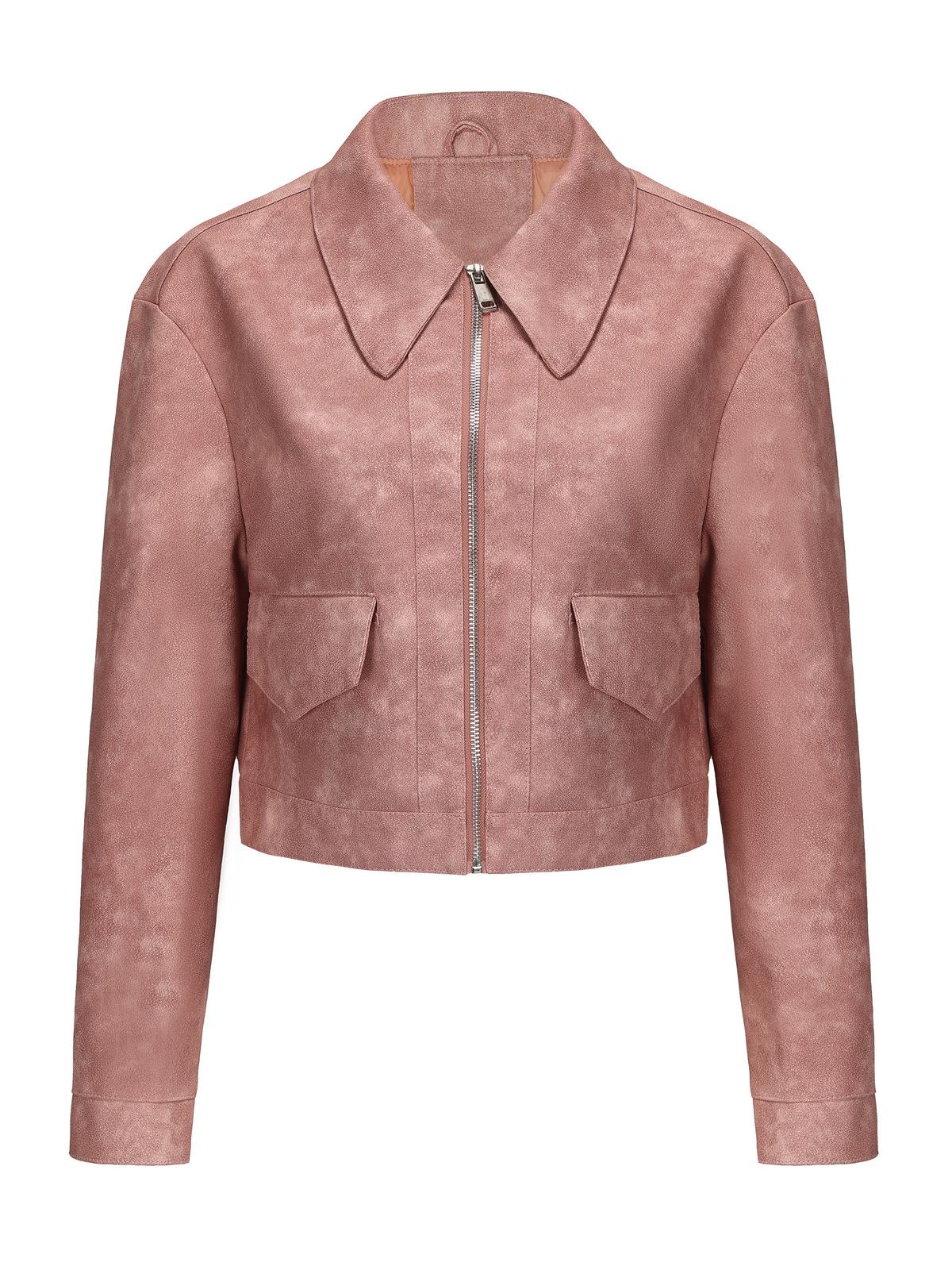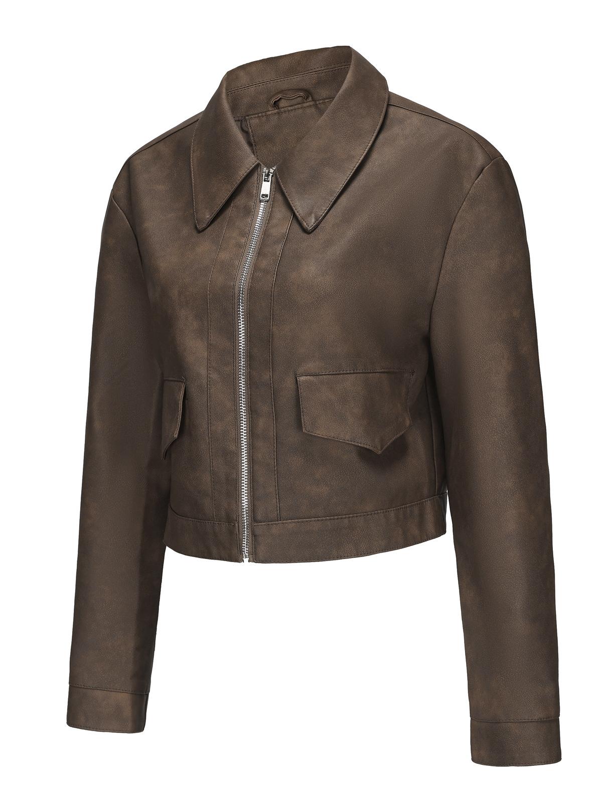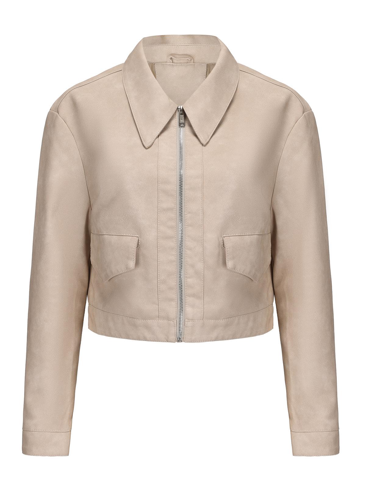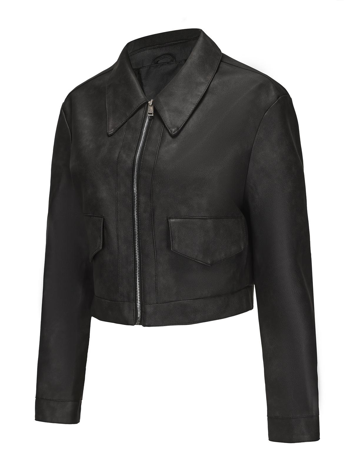 Chaqueta de cuero fino de manga larga para mujer, informal, de moda europea y americana, primavera y otoño de 2024, Amazon