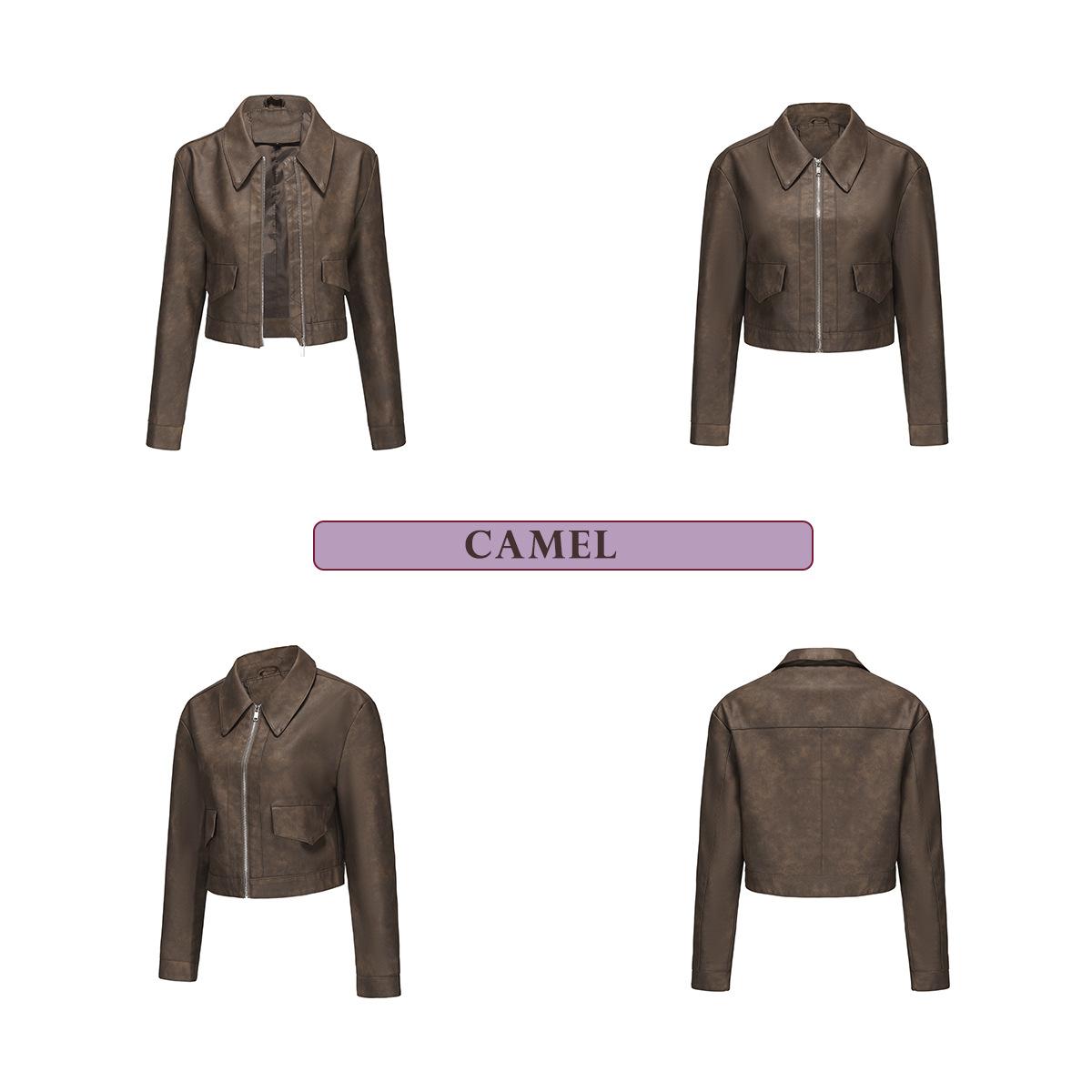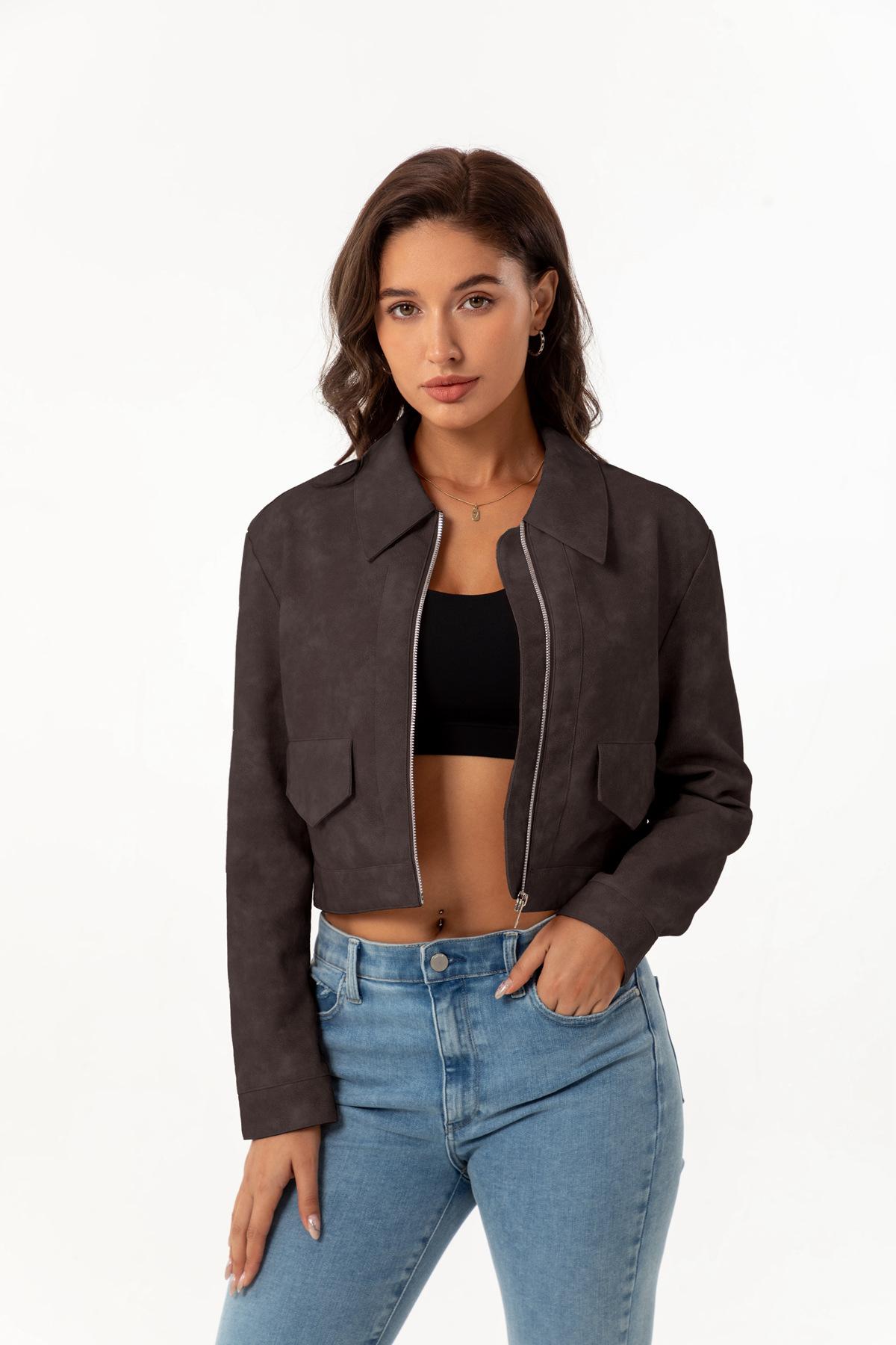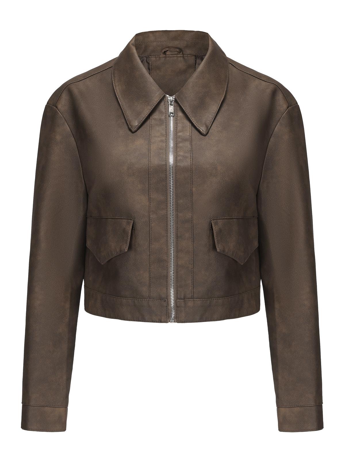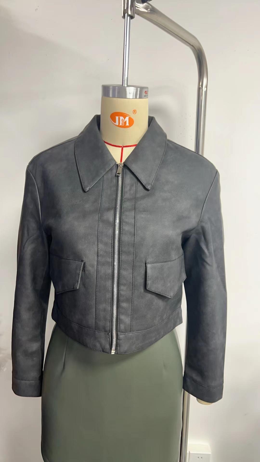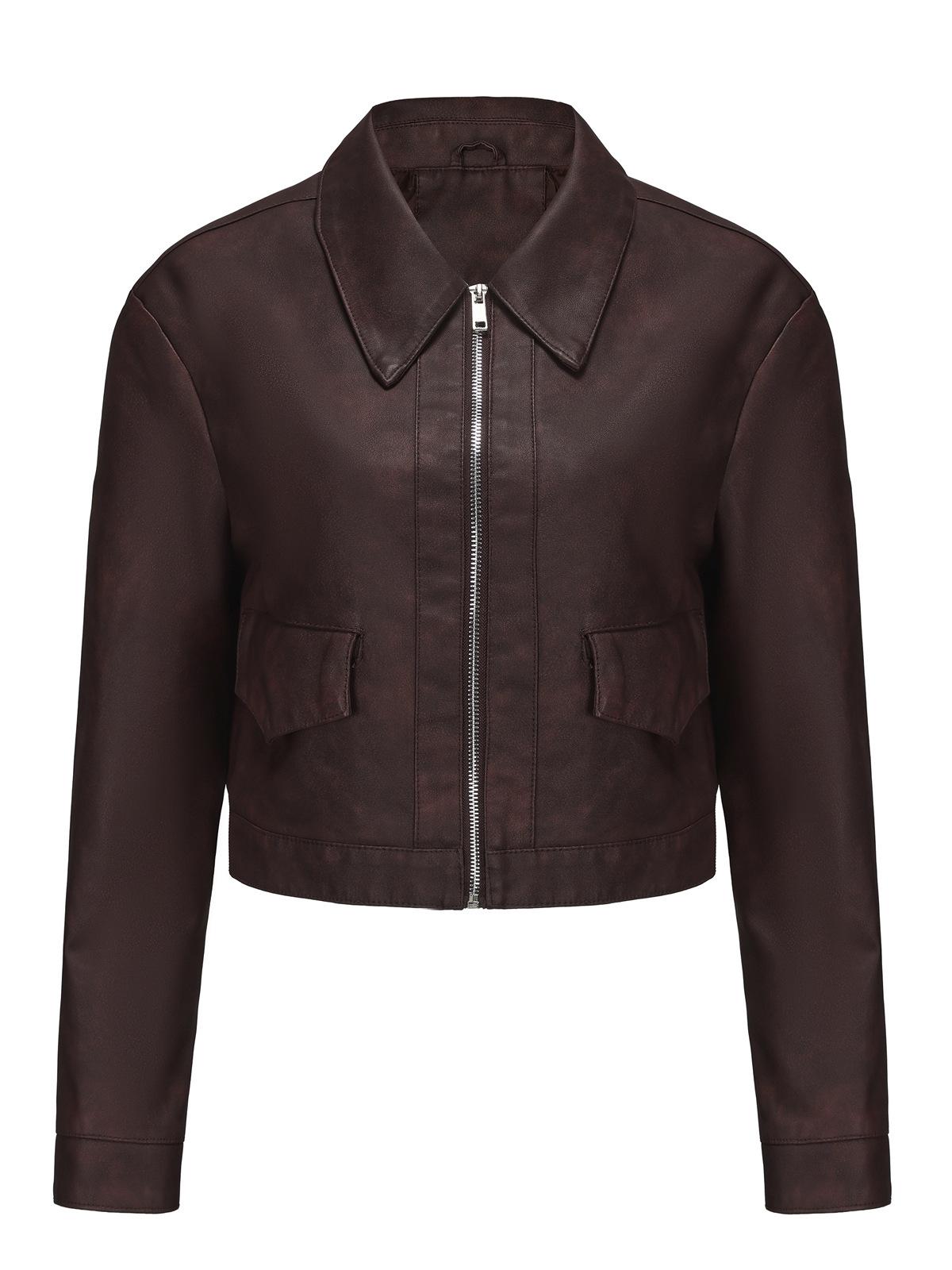 Chaqueta de cuero fino de manga larga para mujer, informal, de moda europea y americana, primavera y otoño de 2024, Amazon