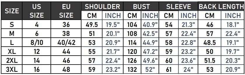 S, M, L, XL, XXL, XXXL