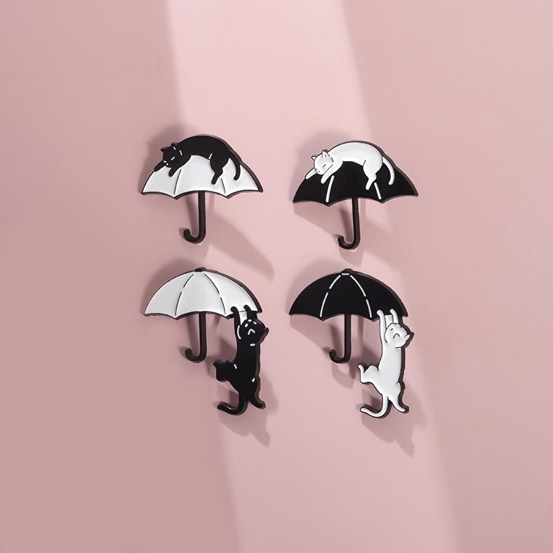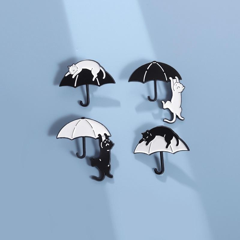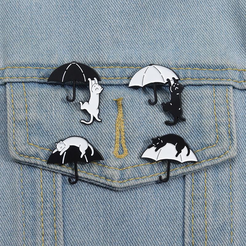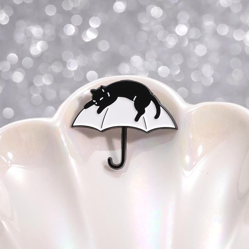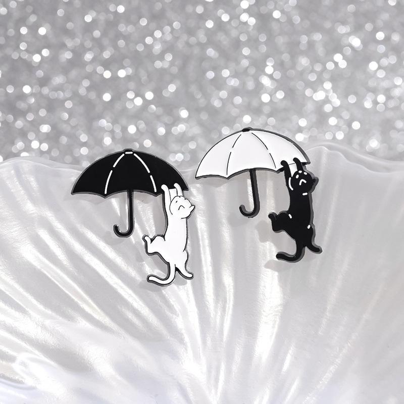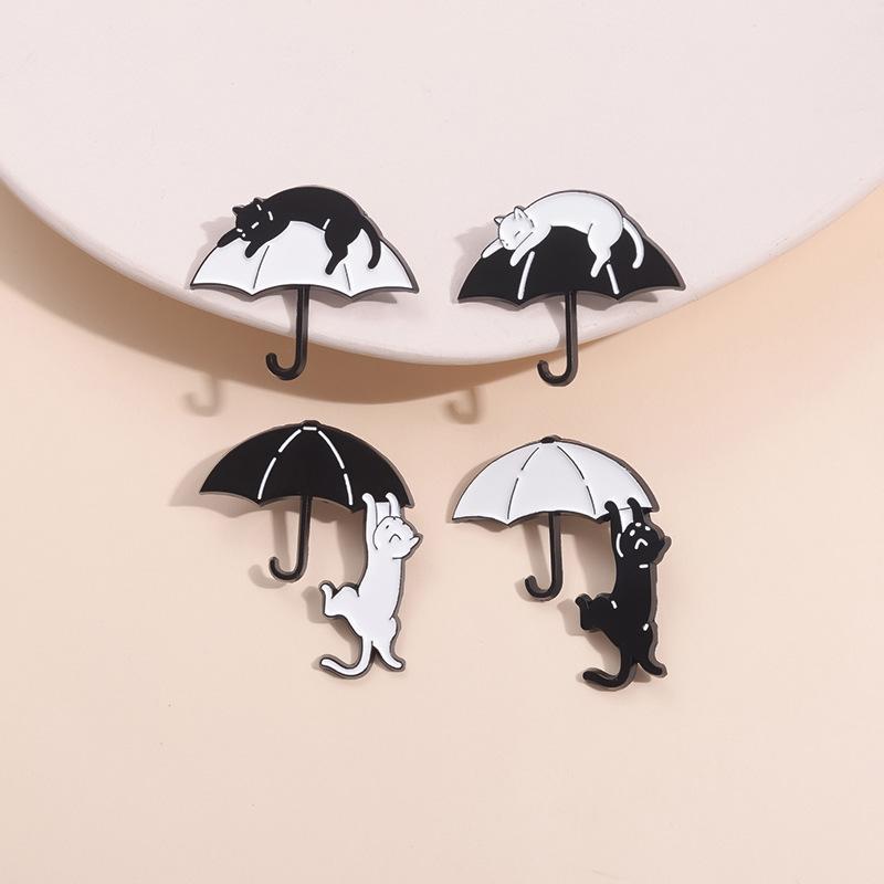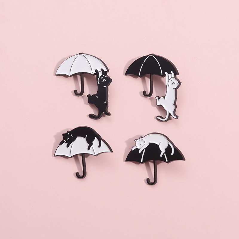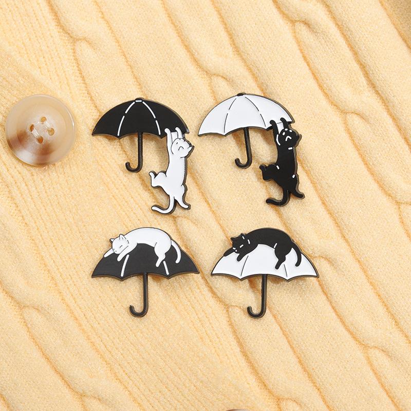 Paraguas de arte lindo blanco y negro gatito animal creativo exquisito regalo broche insignia de metal accesorios de ropa