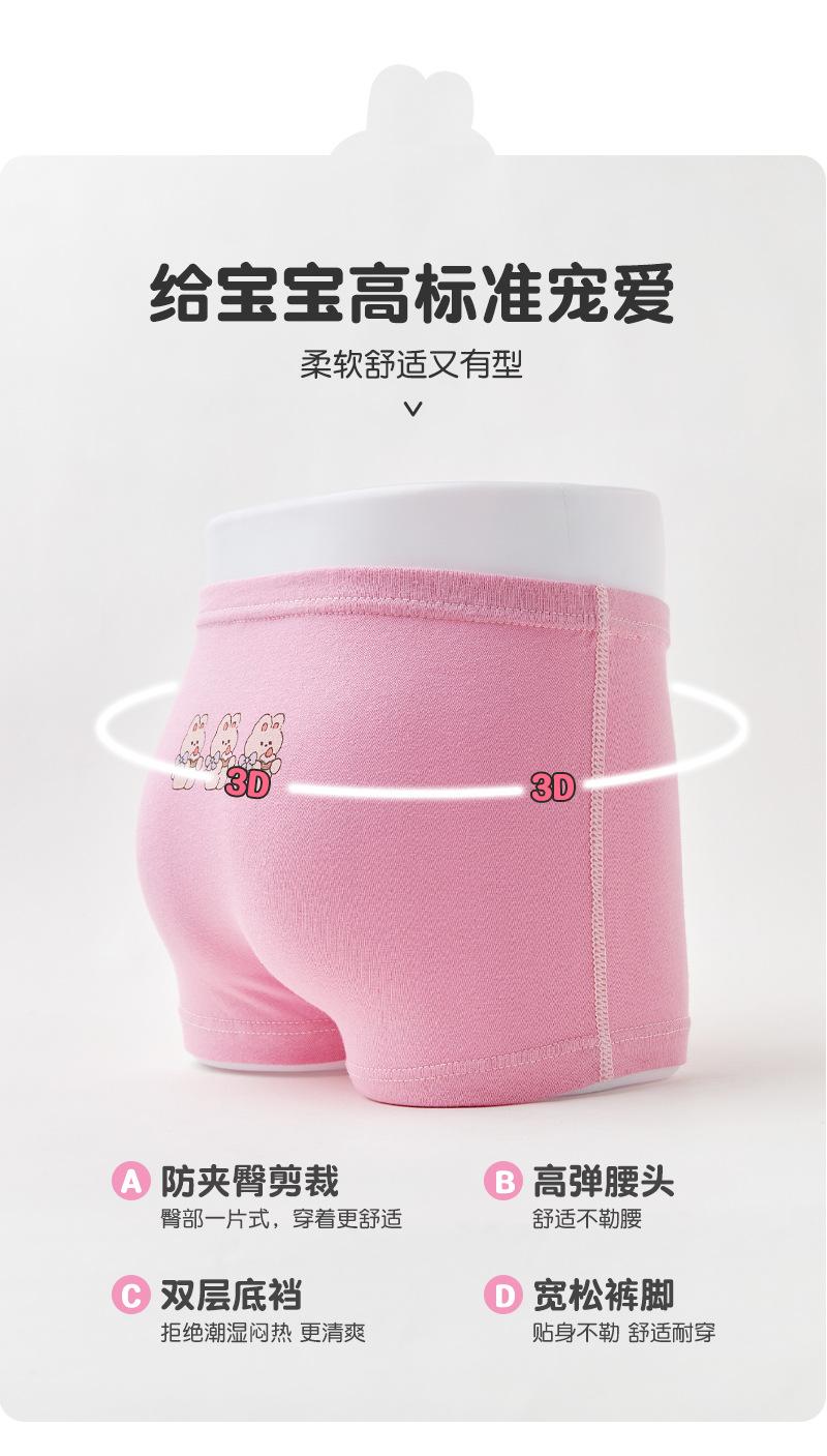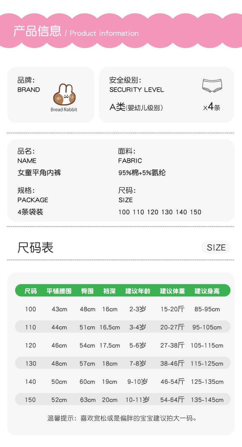 Ropa Interior para Niños de Algodón Antibacterial 5A Bread Rabbit 2025 Nuevo Calzón Bóxer de Conejito de Dibujos Animados para Niñas Dropshipping